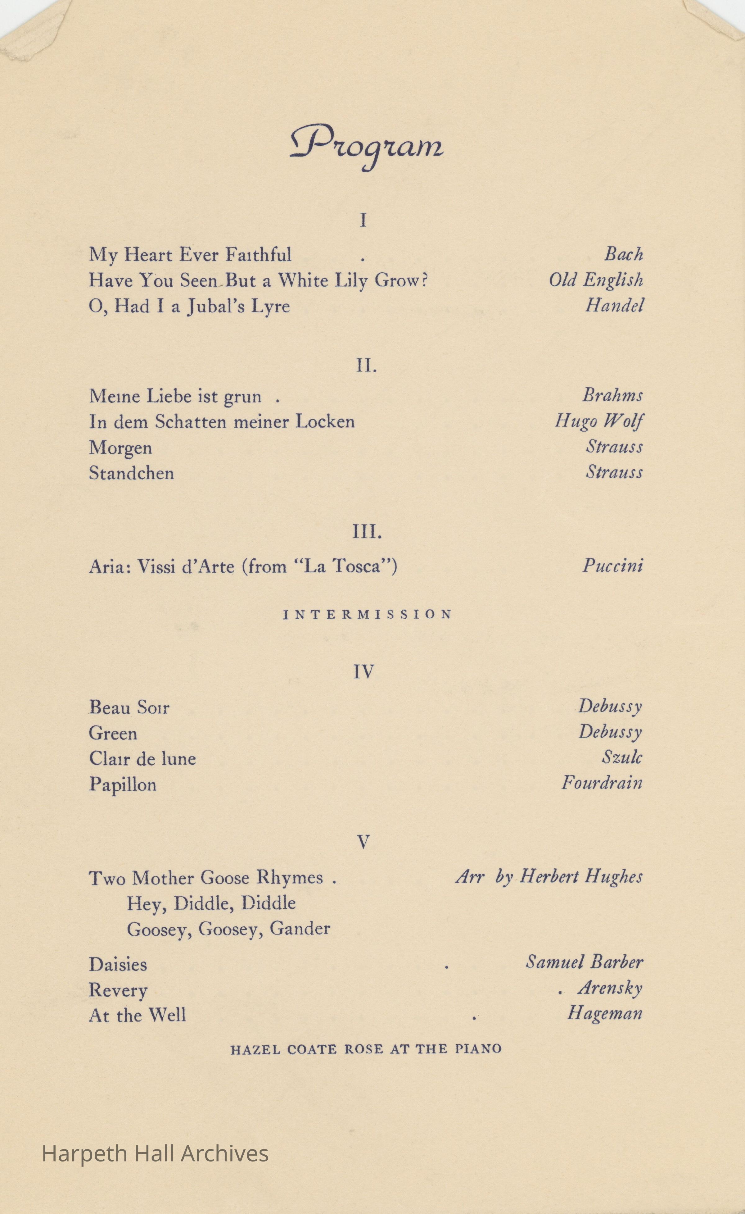 1936, Ward-Belmont, Recital, Music, Program