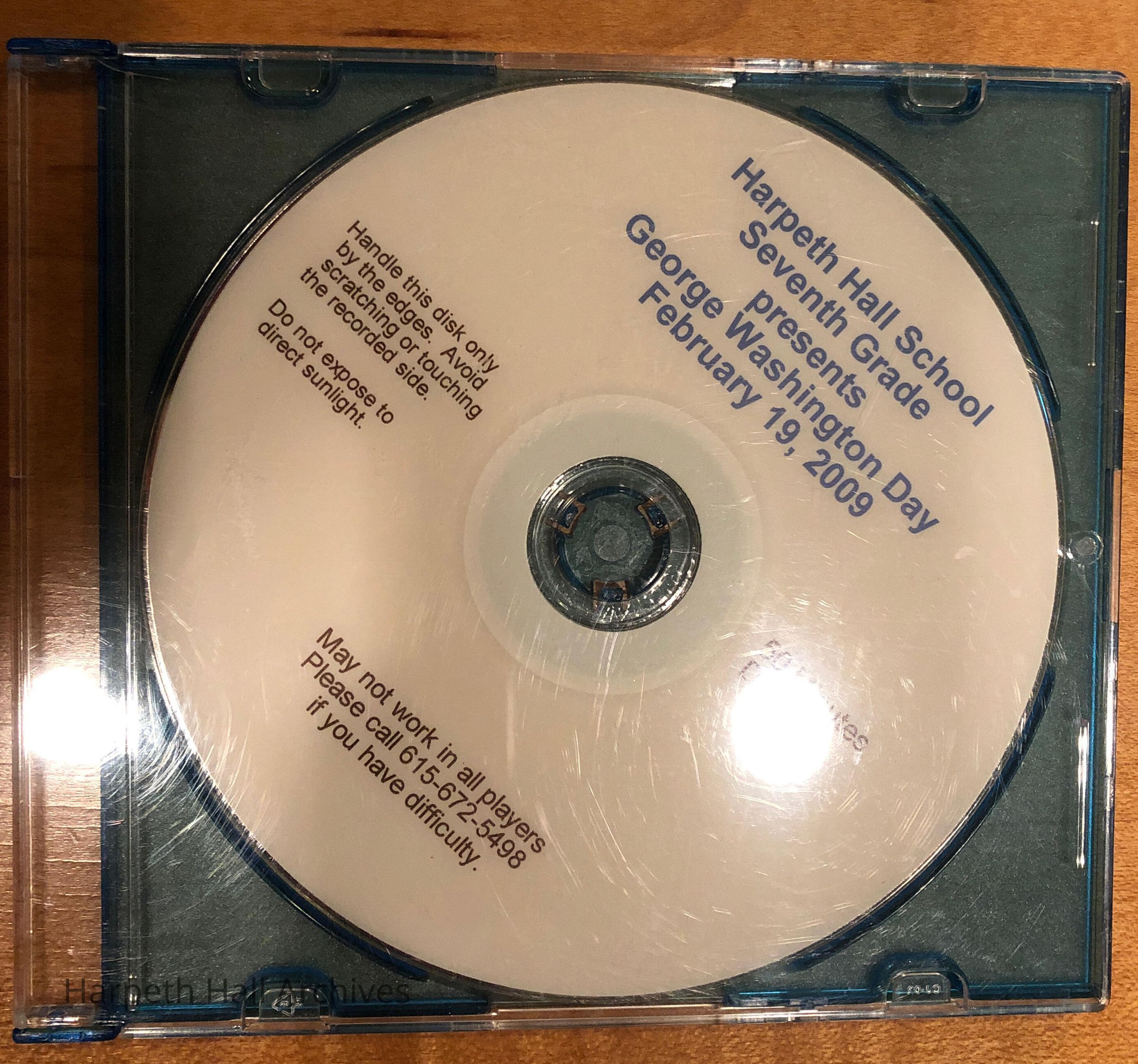A DVD of the February 19, 2009 George Washington Celebration at Harpeth Hall. It was put on by the Seventh Grade.Context