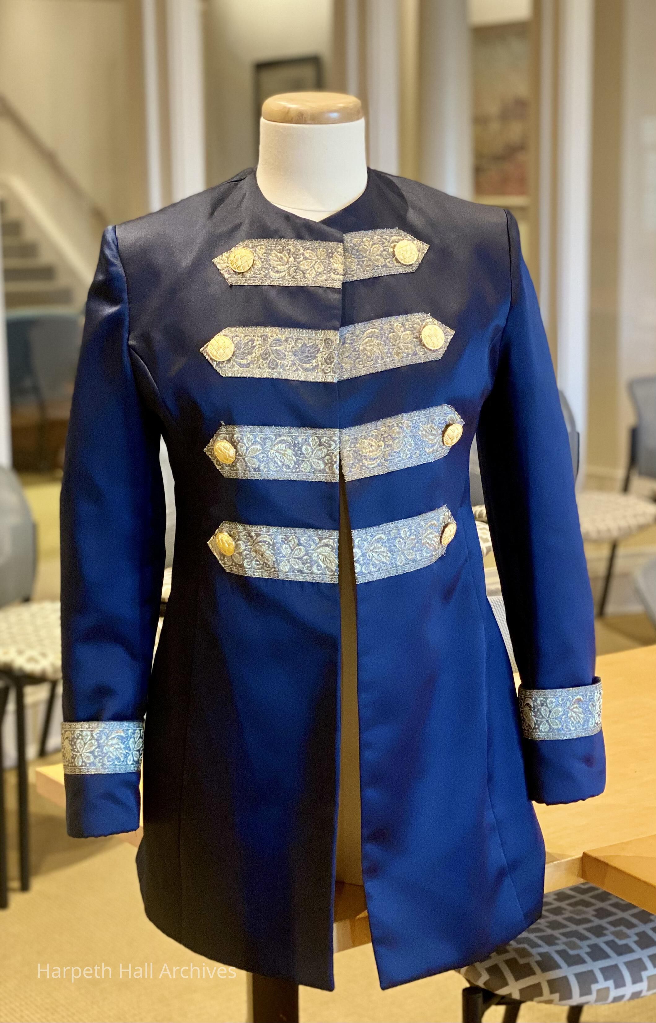 A military-style tunic, worn by students playing the role of George Washington in the George Washington Day Celebration. Younger students played either a solider, a sailor, or a lady or gentleman; two older students were chosen to play George and Martha Washington.Context
