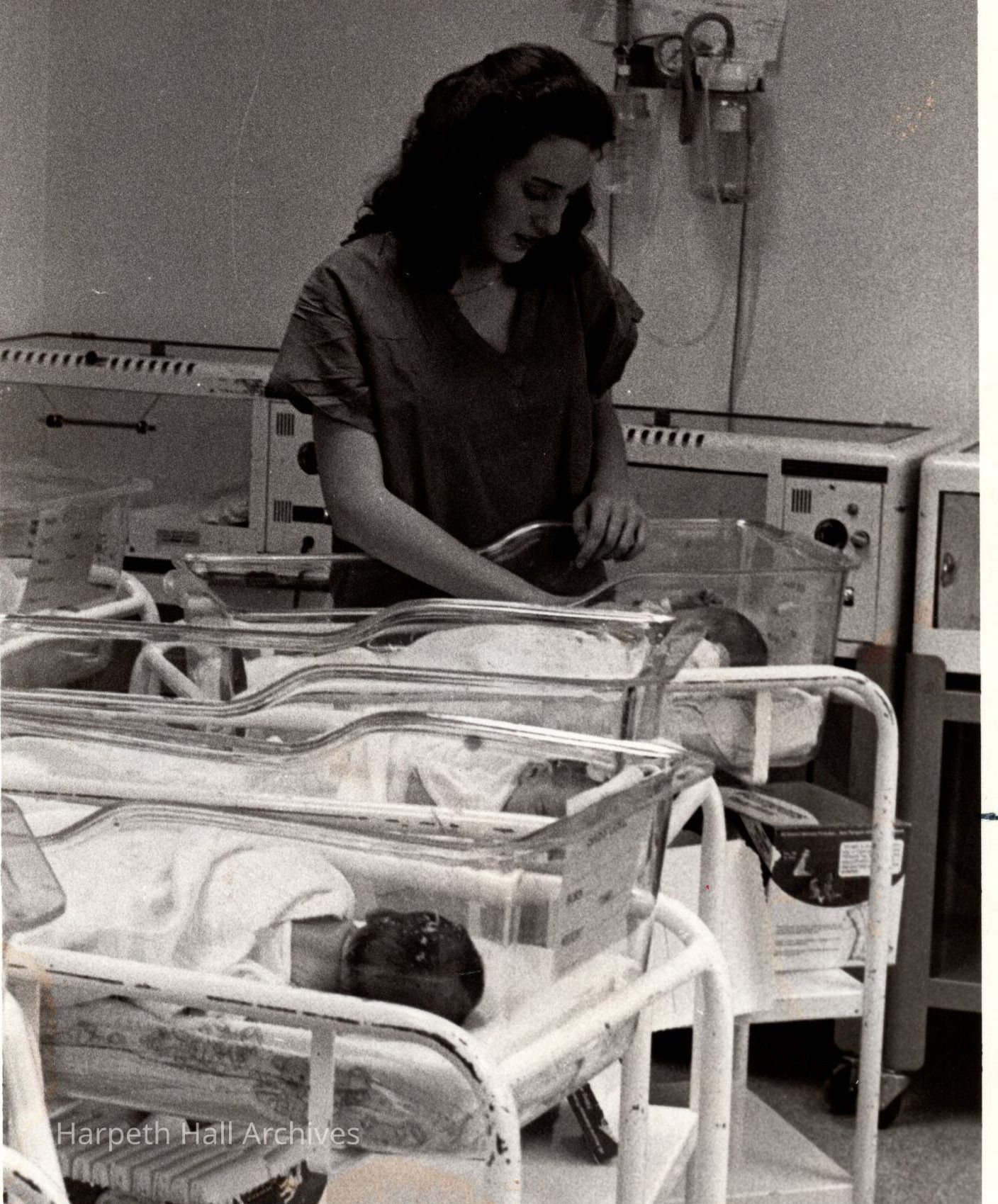 Becky Mathes during a Winterim internship junior year. On back of photograph, "works with newborns"Photograph Details