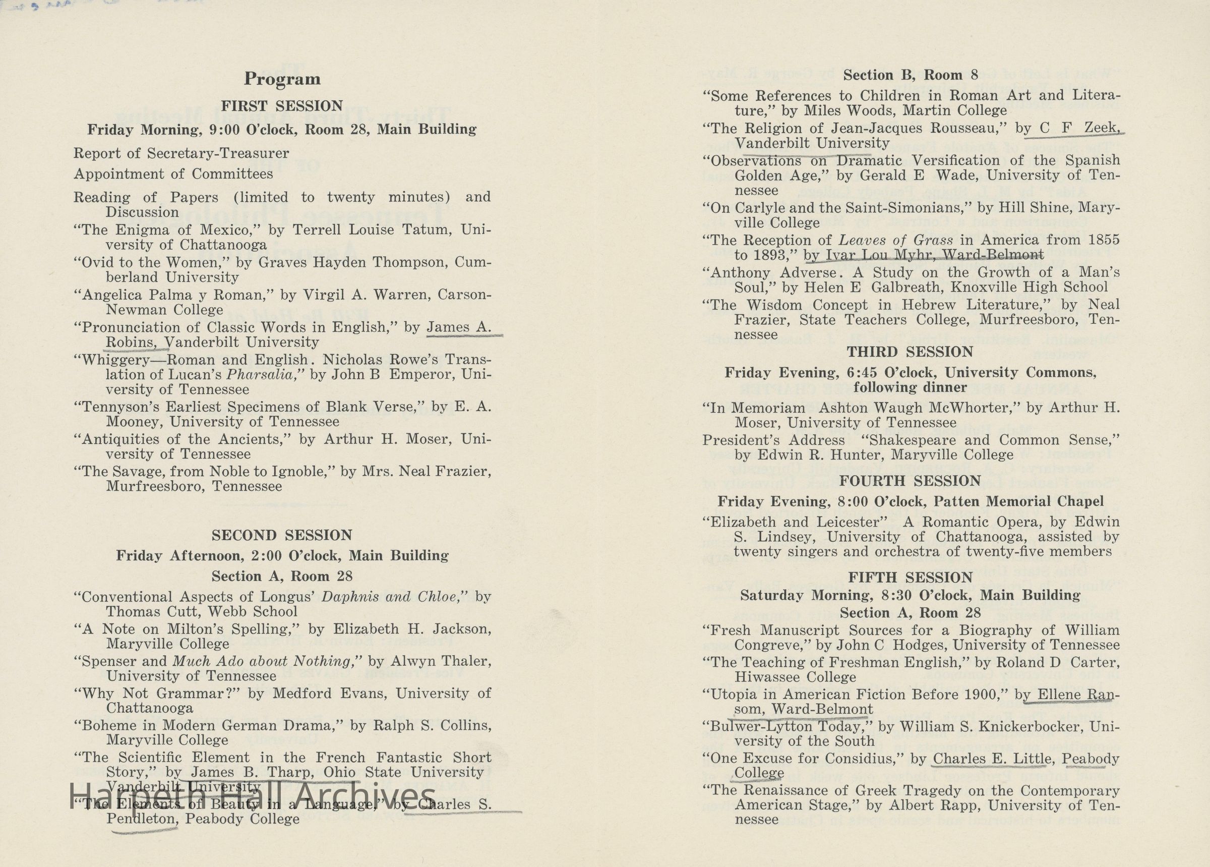 Ward-Belmont, 1939, Philological
