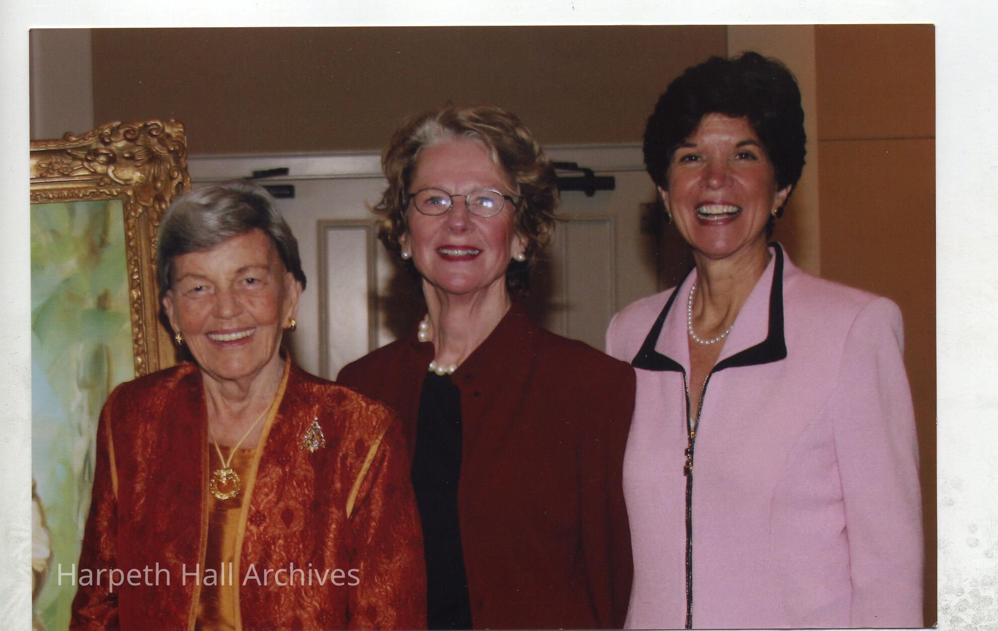 Left to right: Idanelle McMurry (1943, Head of School 1963-1979), Leah Rhys (Head of School 1991-1998), and Ann Teaff (Head of School 1998-2014) at Miss McMurry's Birthday Celebration during the 2000 Alumnae Reunion