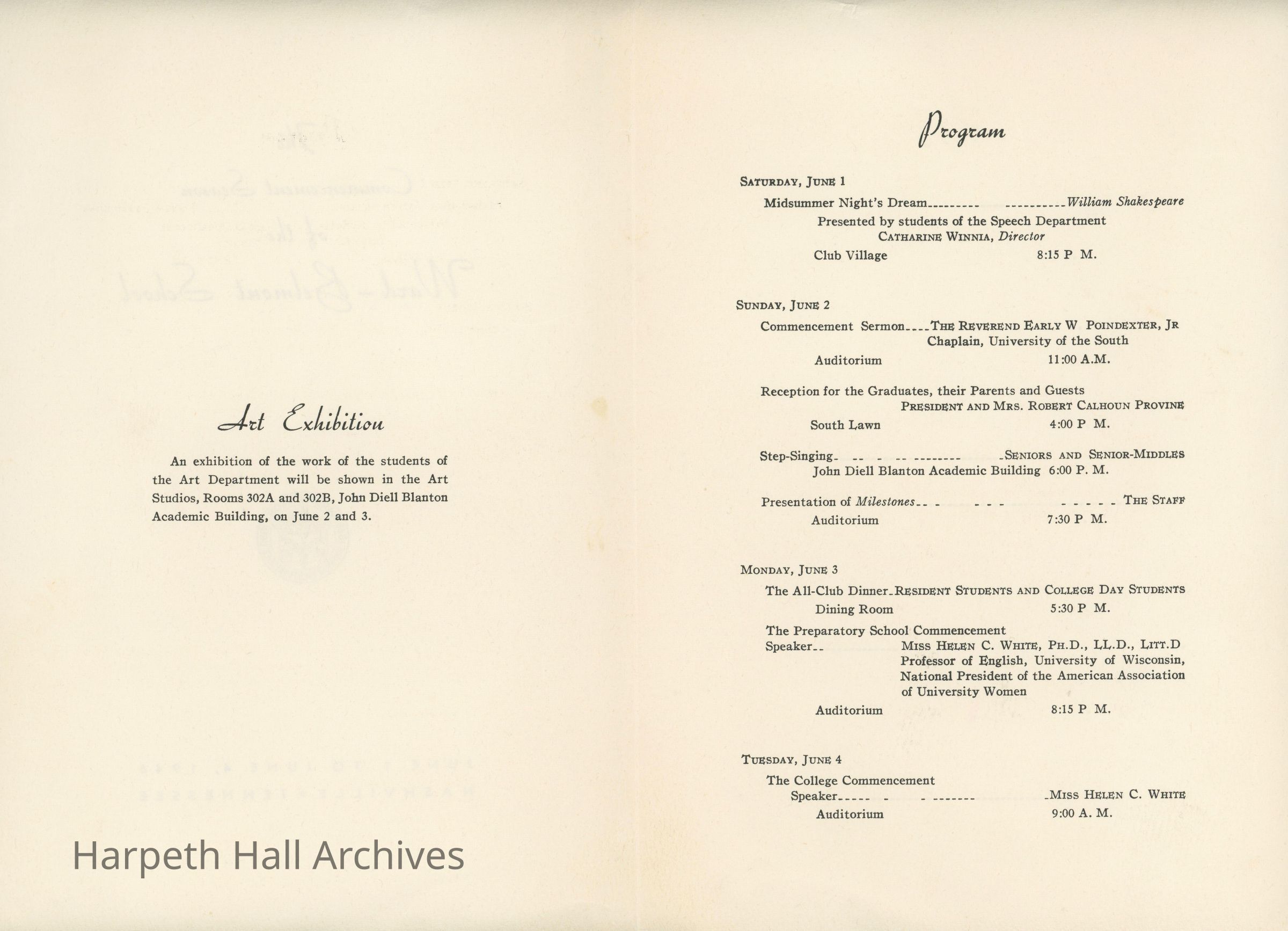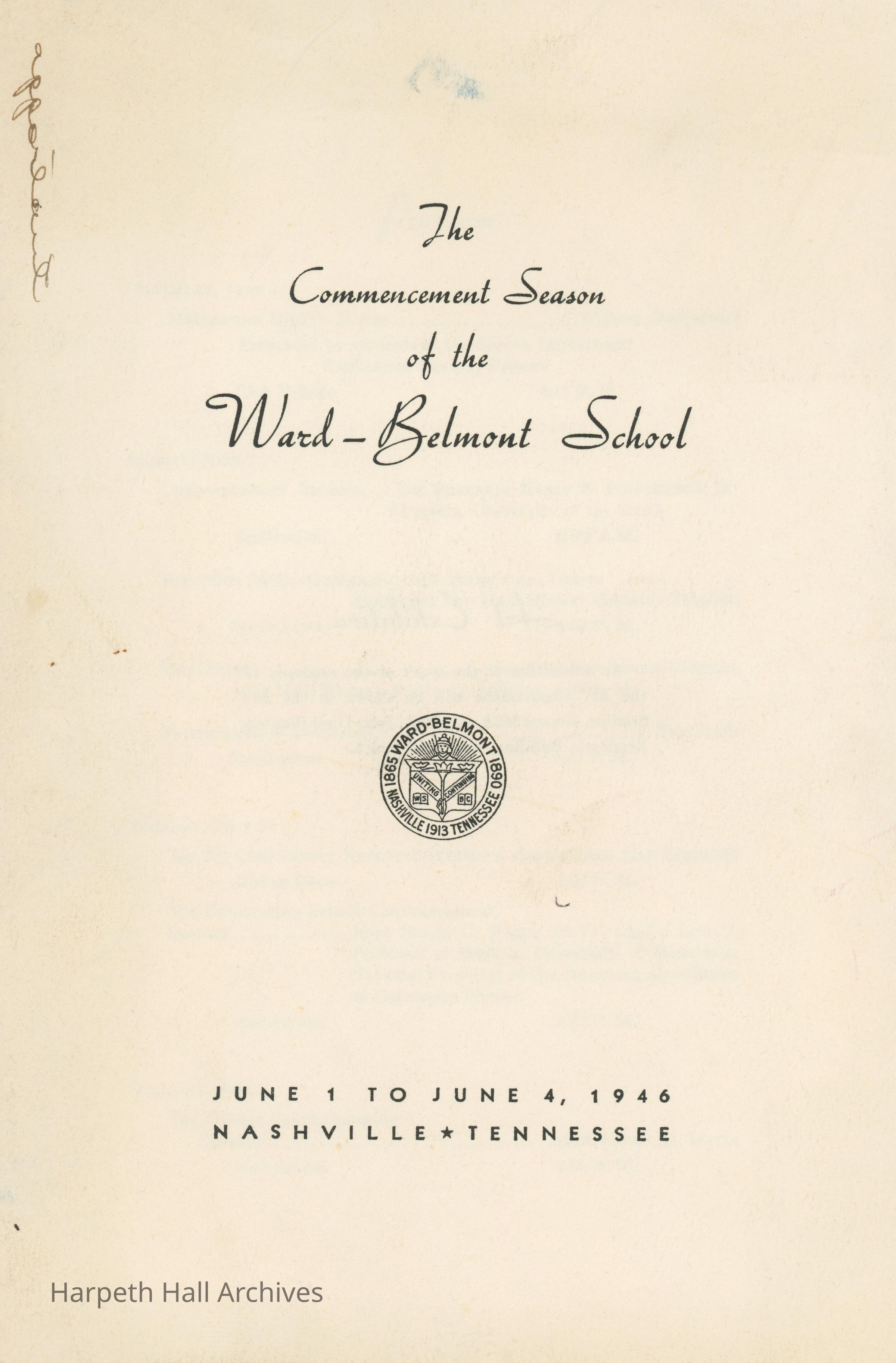 The program for Ward-Belmont's Commencement Season that took place from June 1st to June 4th of 1946.Collection