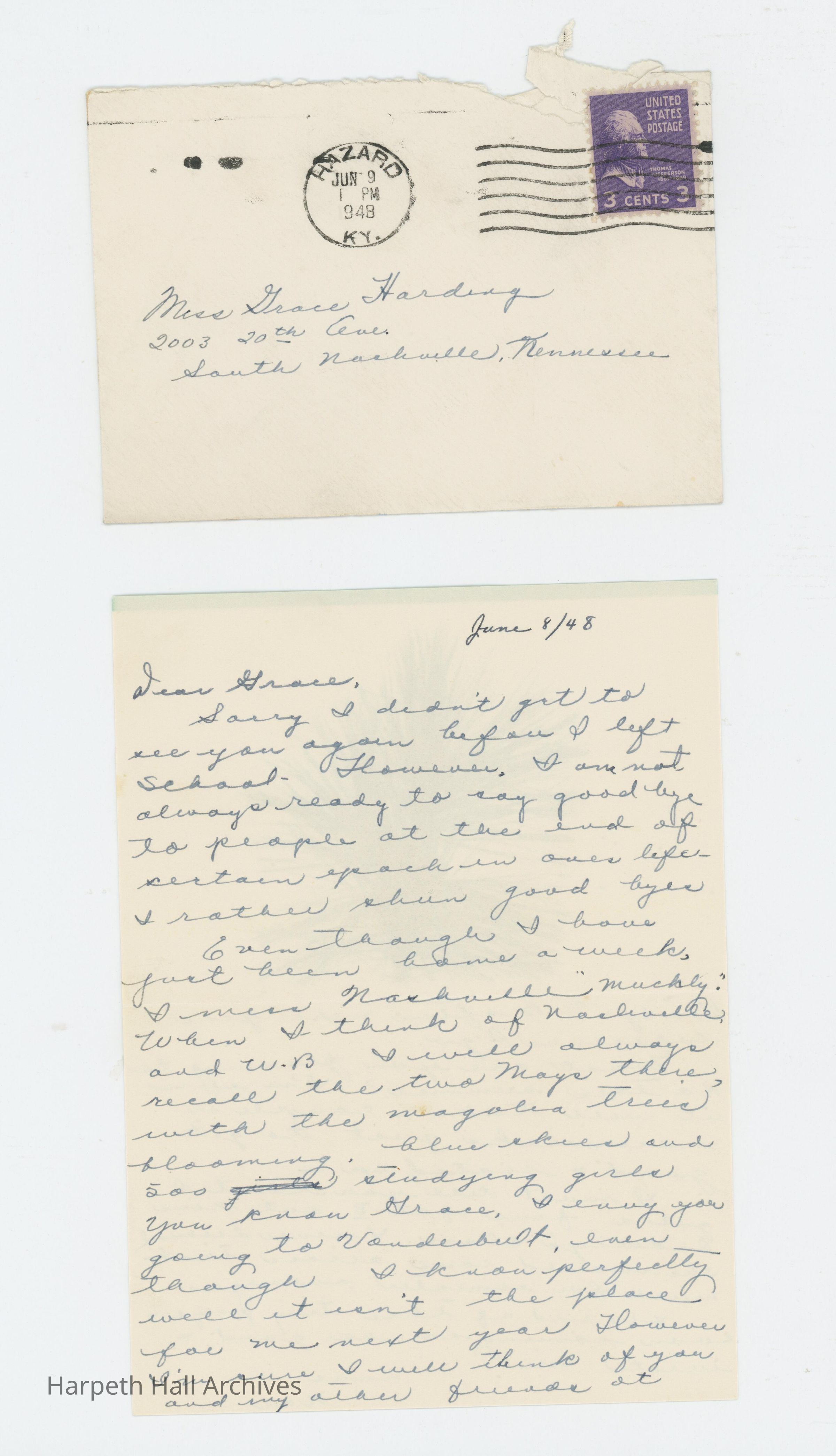 A letter addressed to Grace Harding in June of 1948.