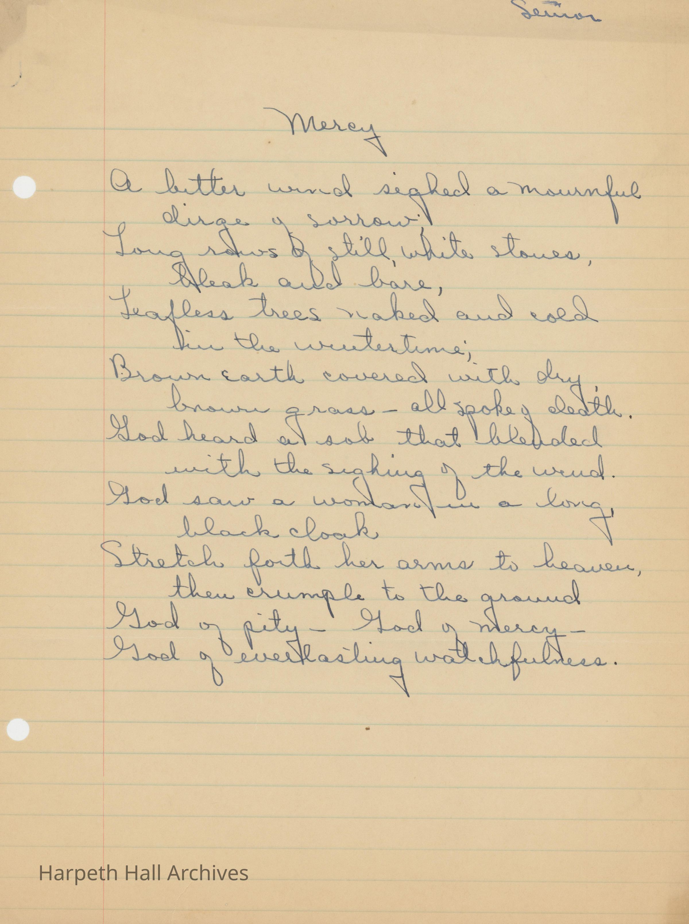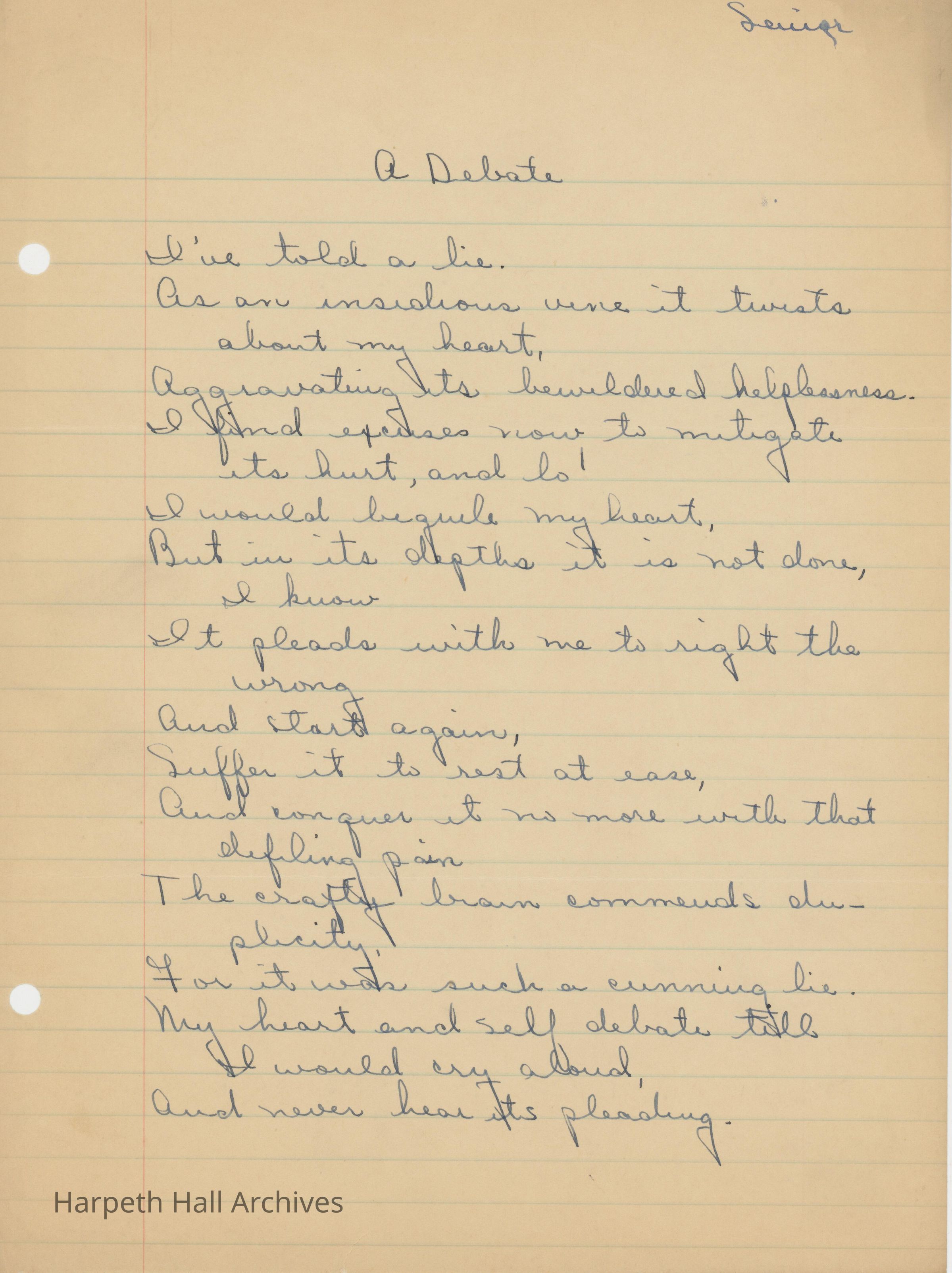 Two poems written by a Ward-Belmont senior titled, "A Debate" and "Mercy."