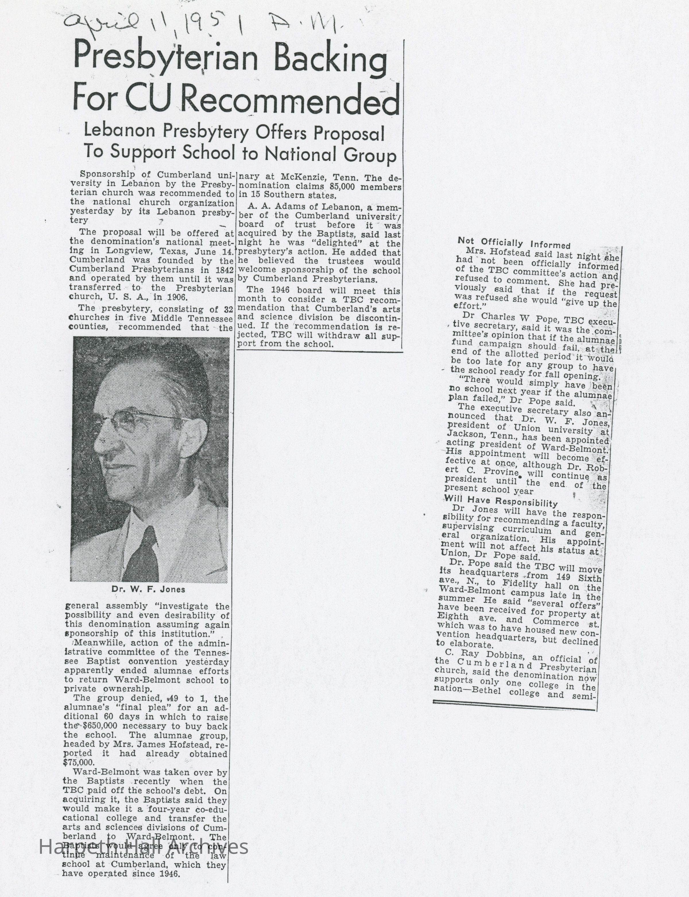 Presbyterian Backing for CU Recommended