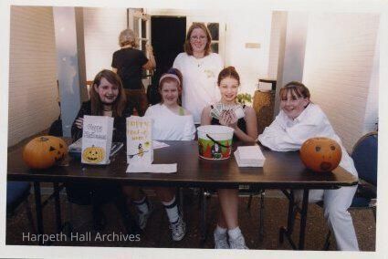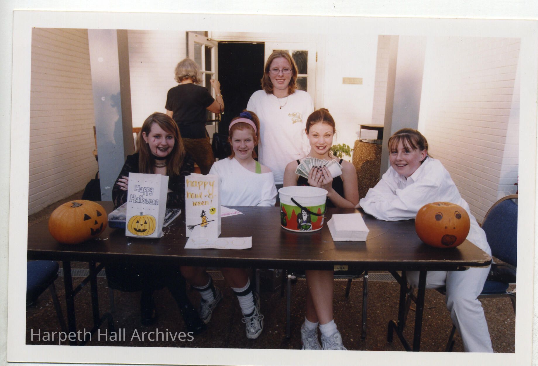 5 young women who appear to be the welcome table at the 1998 Halloween Alumnae Event