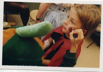 a child getting her face painted at the 1998 Halloween Alumnae Event