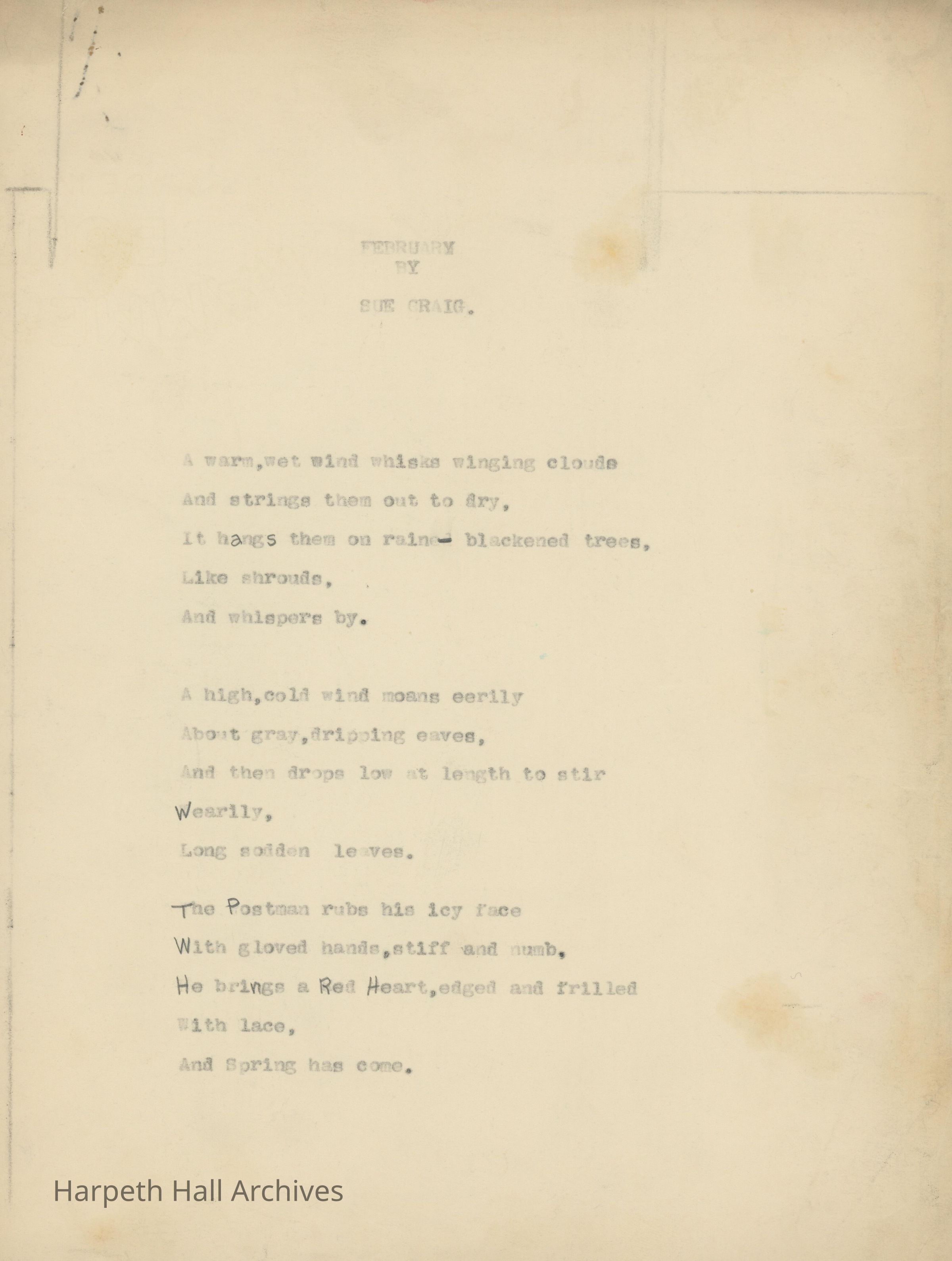 A poem entitled, "February" written by Ward-Belmont student, Sue Craig.