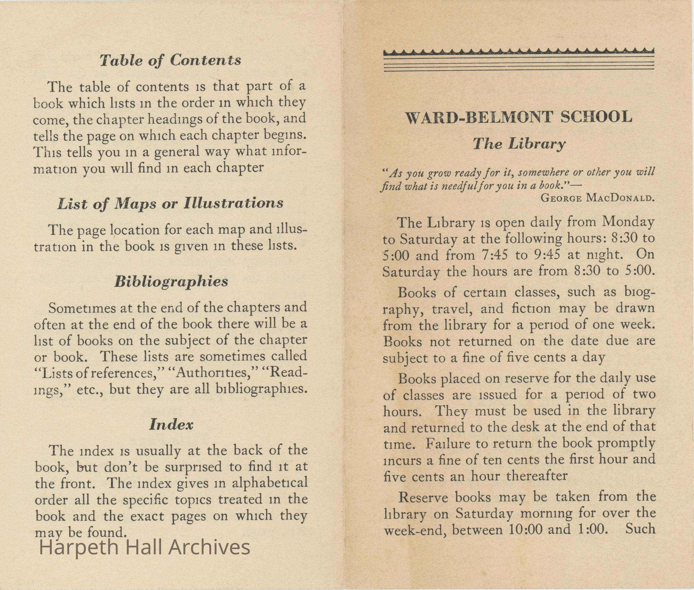 Ward-Belmont School: The Library (Instructional Booklet)Entry/Object ID