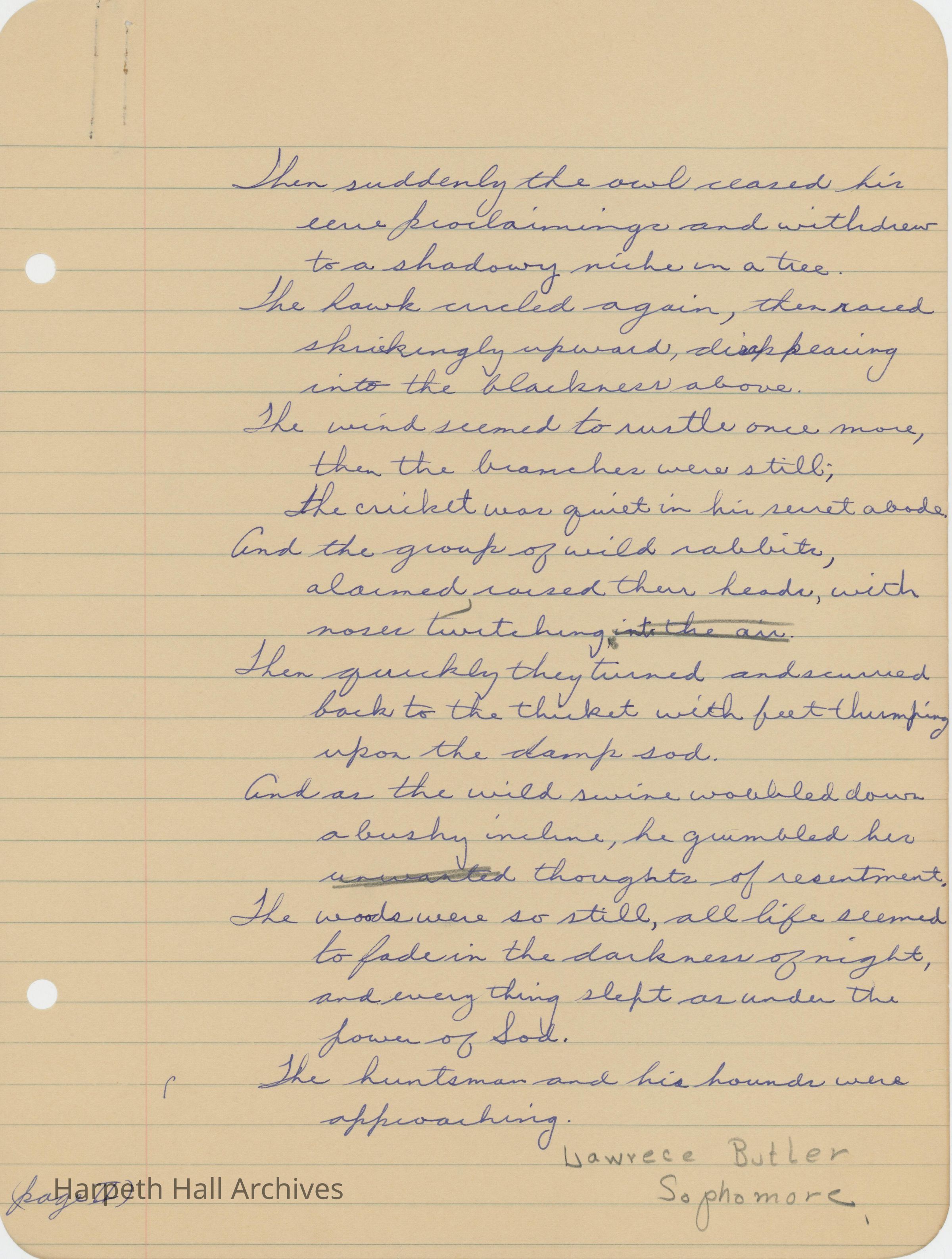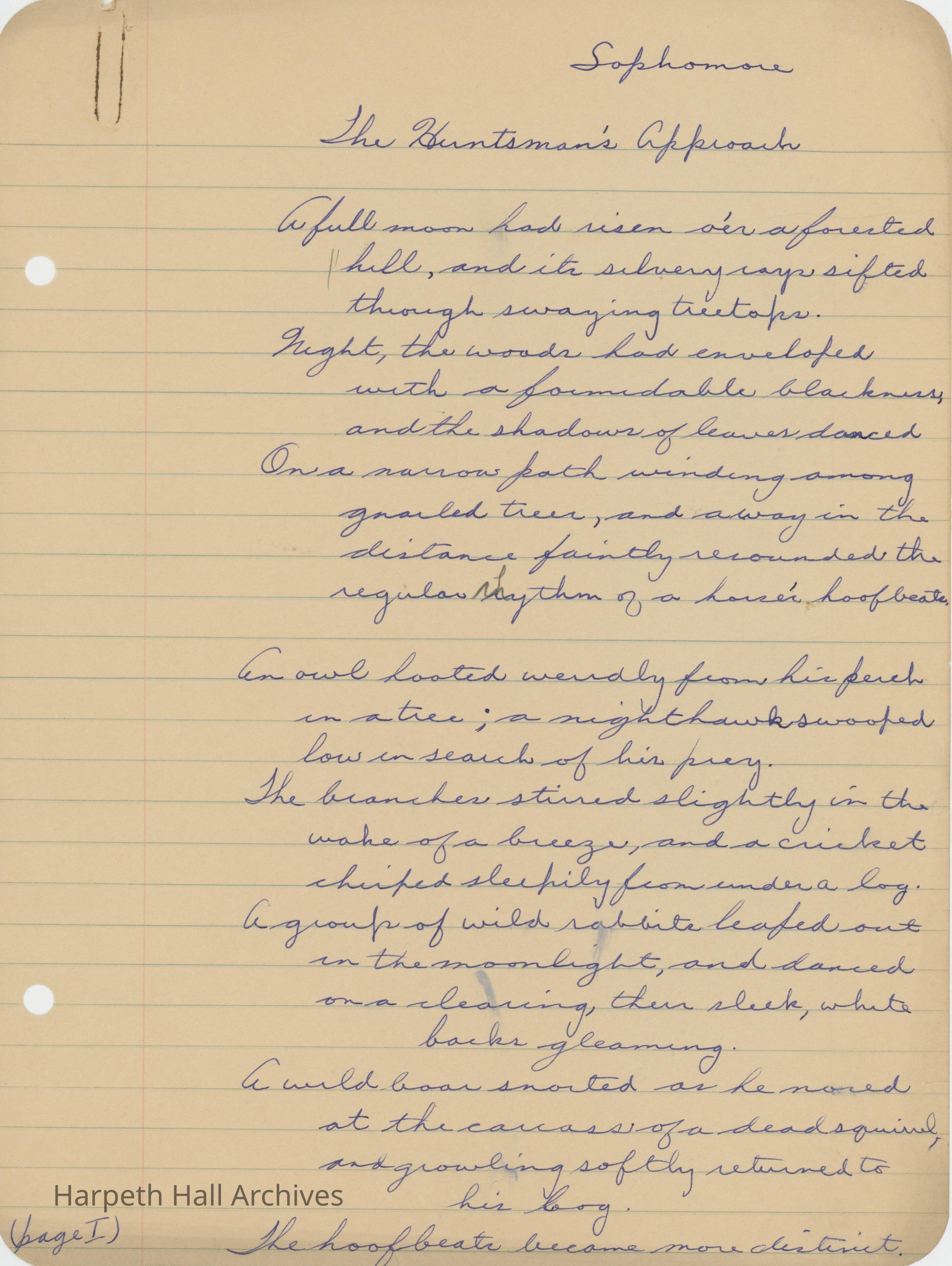 An essay entitled, "The Huntsman's Approach" written by Ward-Belmont sophomore Lawrence Butler.Collection
