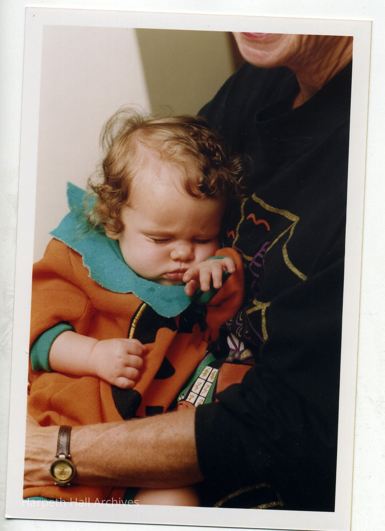 a sleeping baby at the 1998 Halloween Alumnae Event