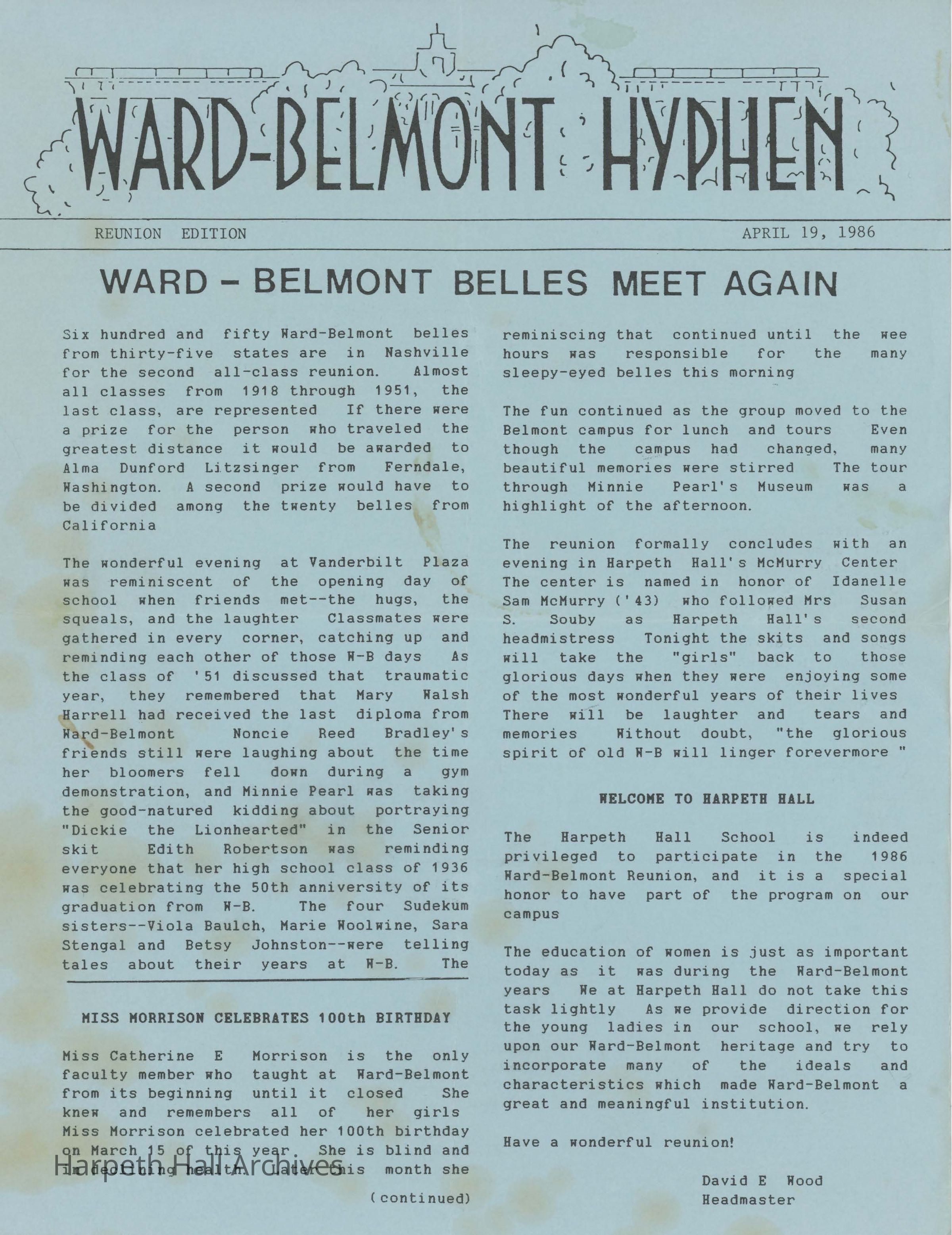 Ward Belmont Hyphen-Ward Belmont Belles Meet Again; April 19, 1986; Reunion Edition