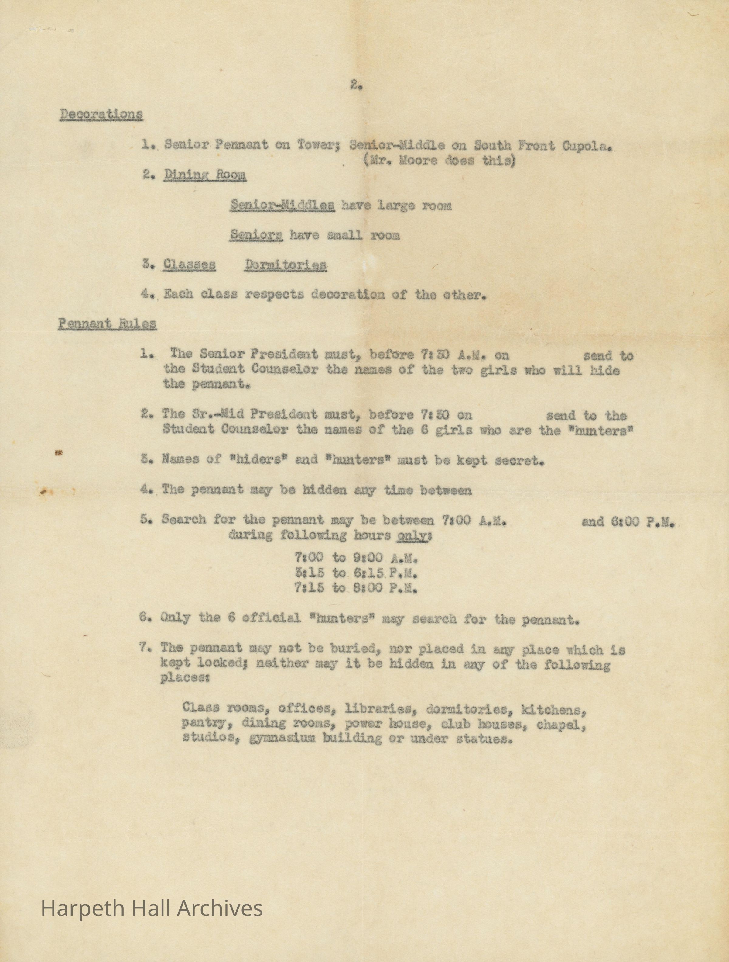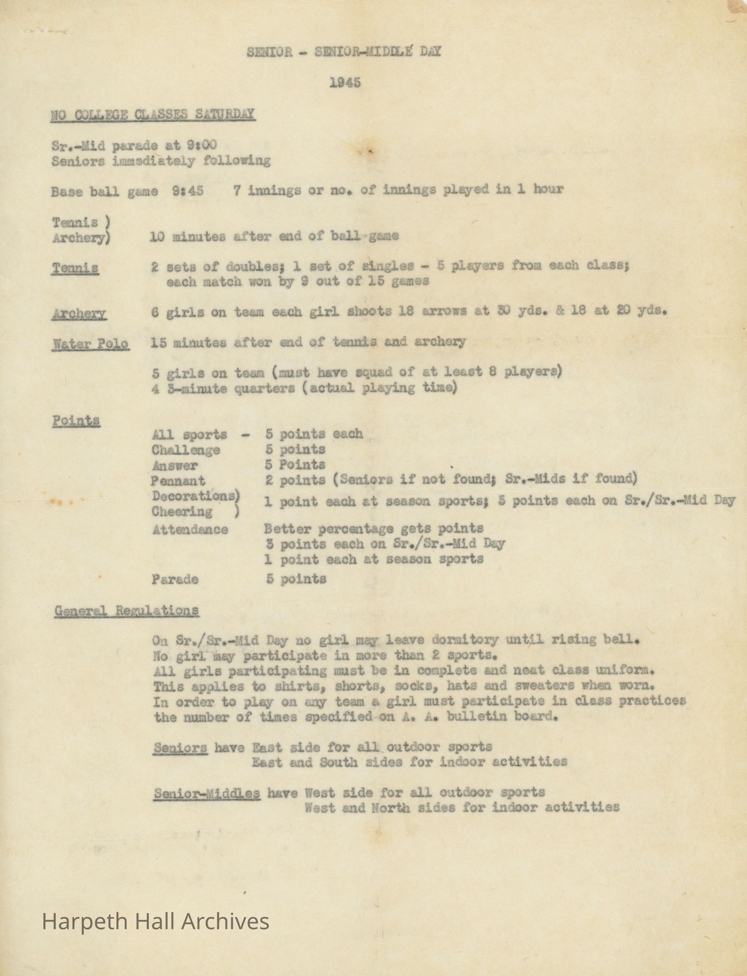 The schedule for the Ward-Belmont Senior-Middle Day in 1945. Details regulations, decorations, and rules.Collection