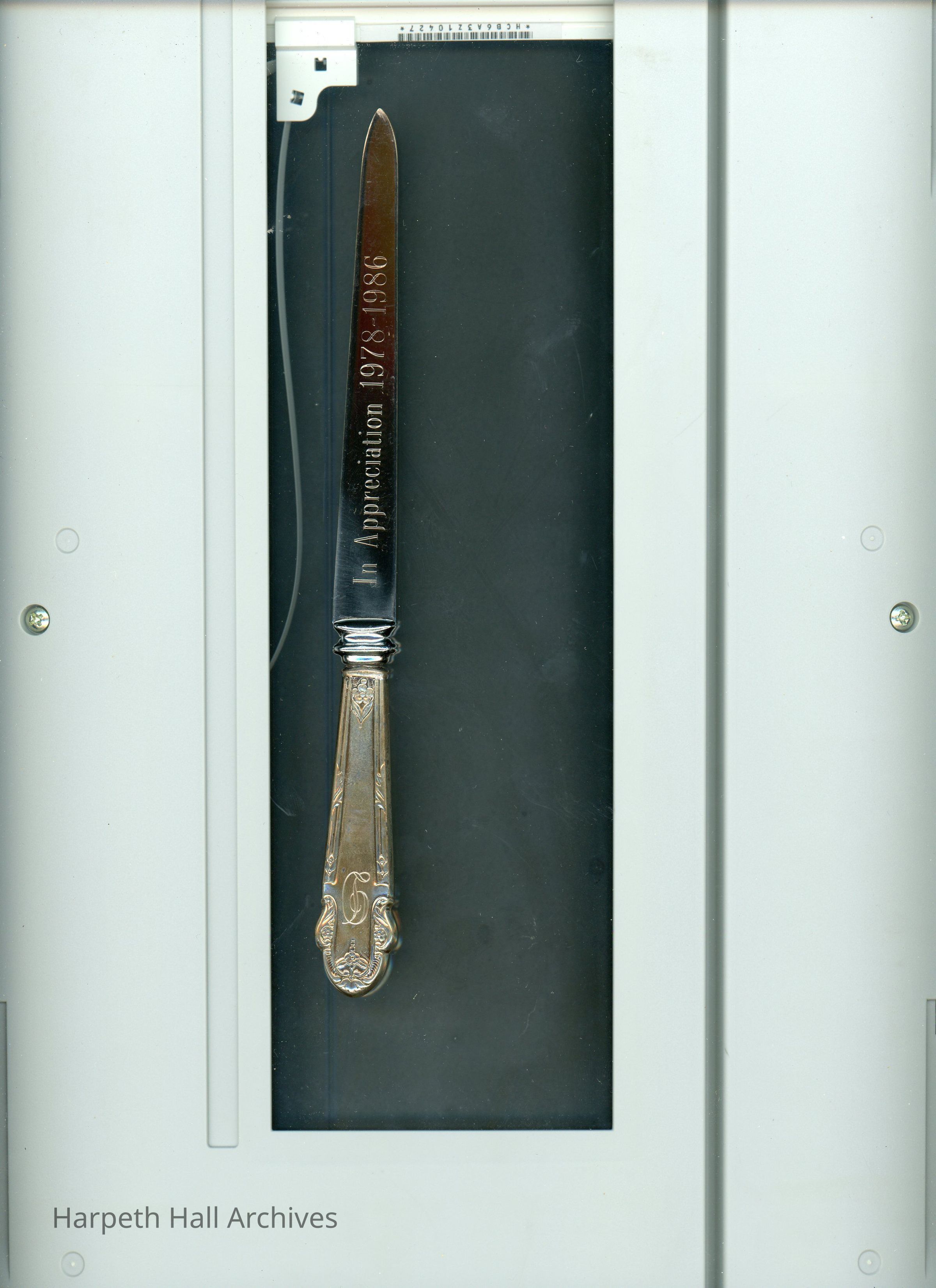 Stainless steel letter opener given to Sandra DavisEntry/Object ID
