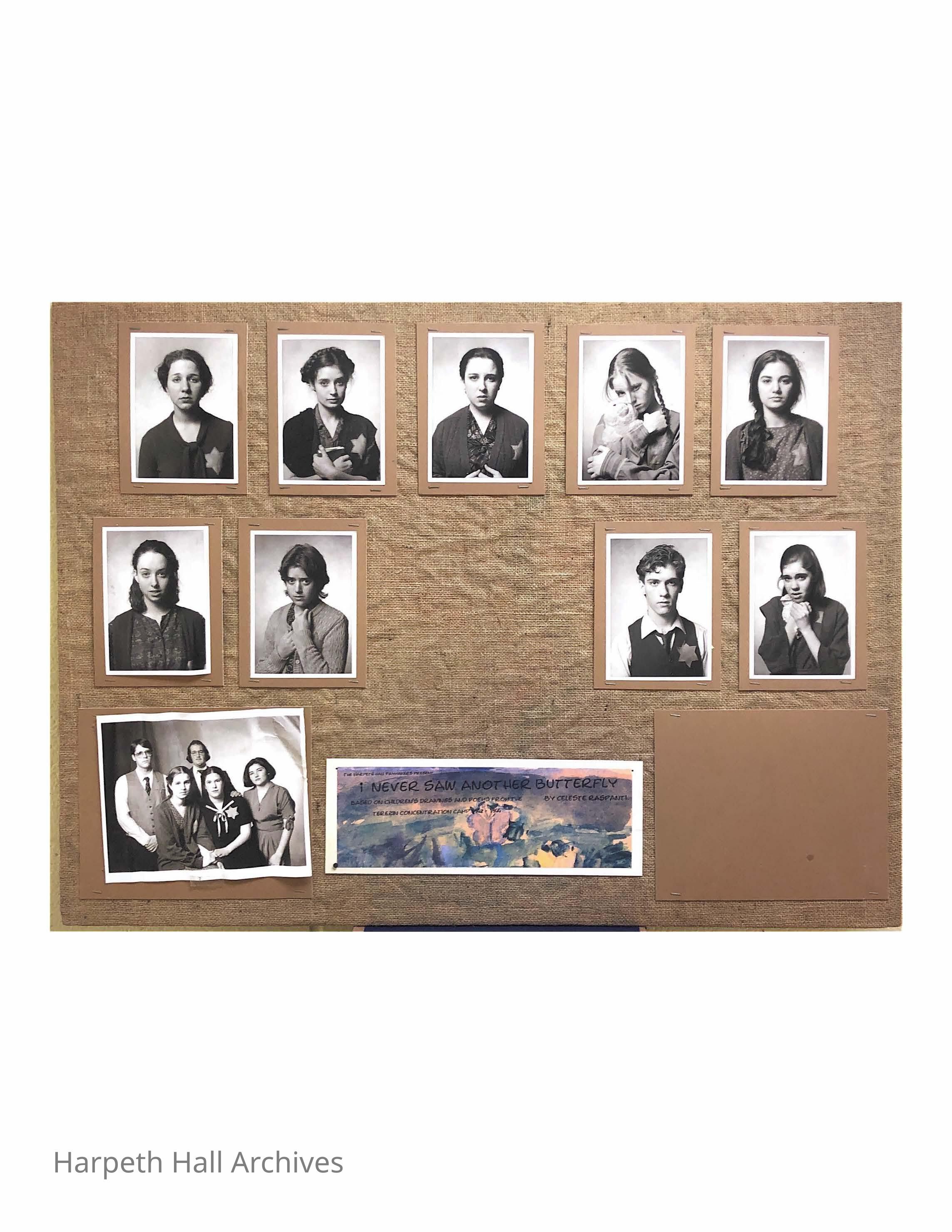 The cast board for the showing of I Never Saw Another Butterfly put on by the Harpeth Hall Playmakers. Cast Members: Melissa Batchelor (1997)