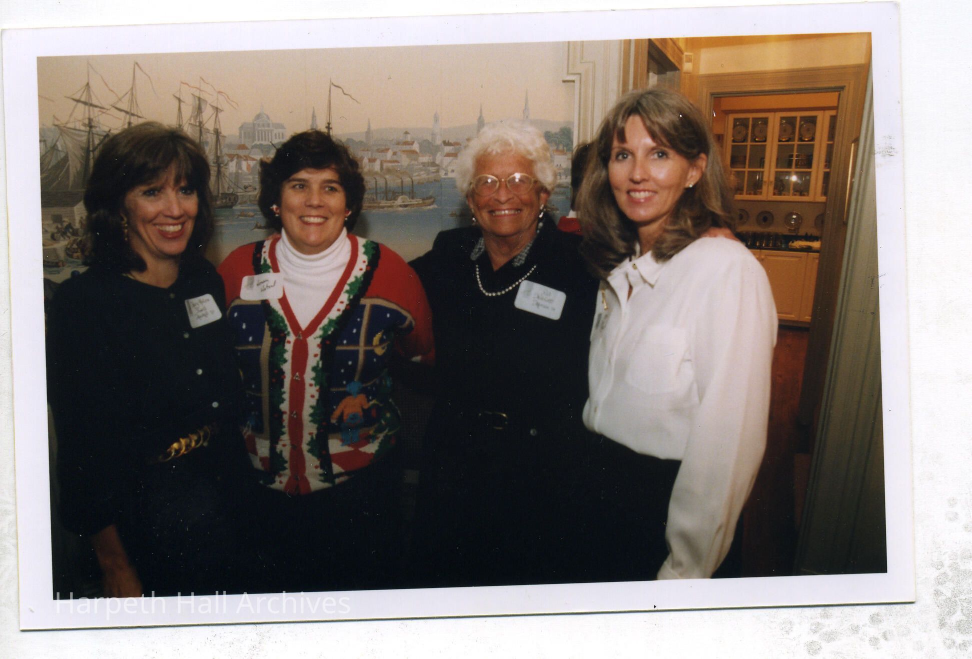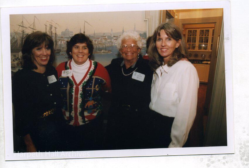 from left to right: Mary Helen Powell (1970), Honey Hetzel (1976), Pat Neblett Moran (1951), and Ellen Pitts Mayo (1970) at the 1998 Alumnae Holiday Party