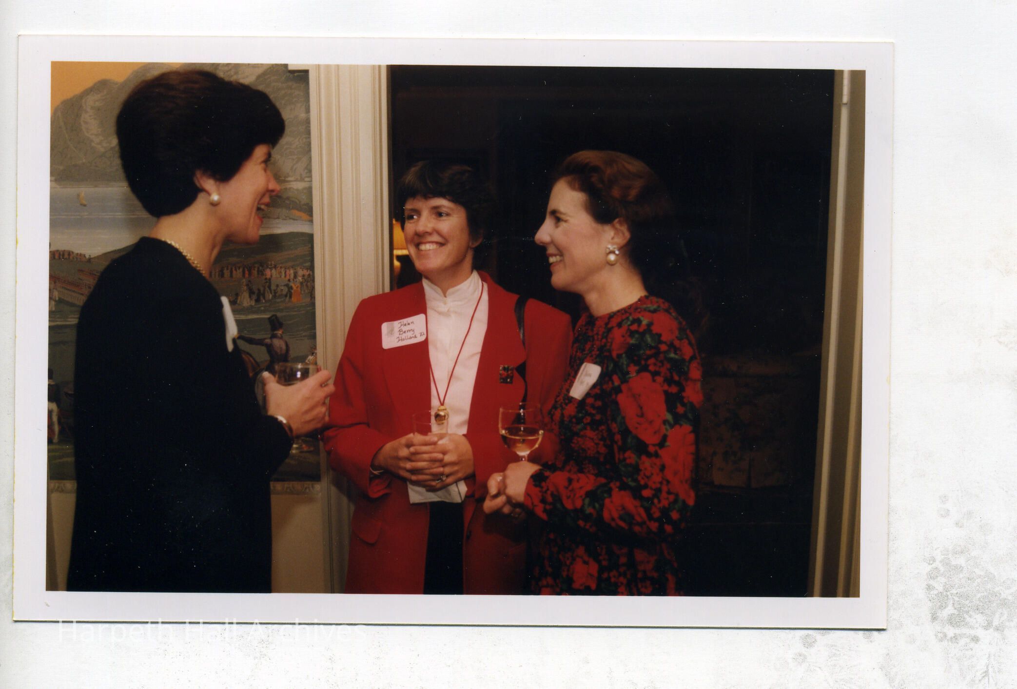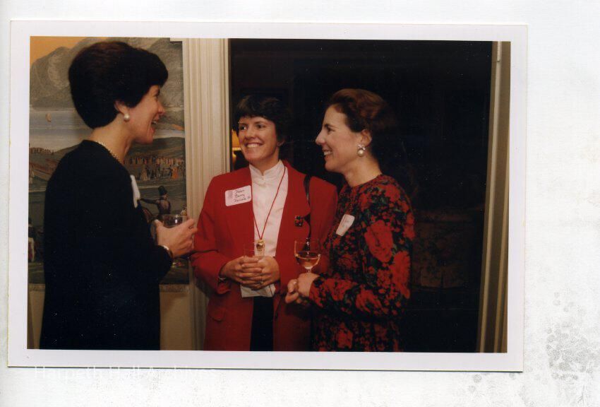 from left to right: Ann Teaff(Head of School 1998-2014), Helen Berry Holland (1982), and Melissa Wert (1982) at the 1998 Alumnae Holiday Party