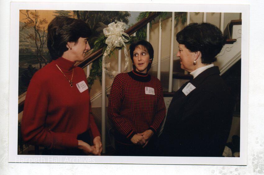 from left to right: Cornelia McDonald Granbery (1975), Linda Medwedeff Mello (1975), and Marie Dodson Maxwell (1964) all at the 1998 Alumnae Holiday Party
