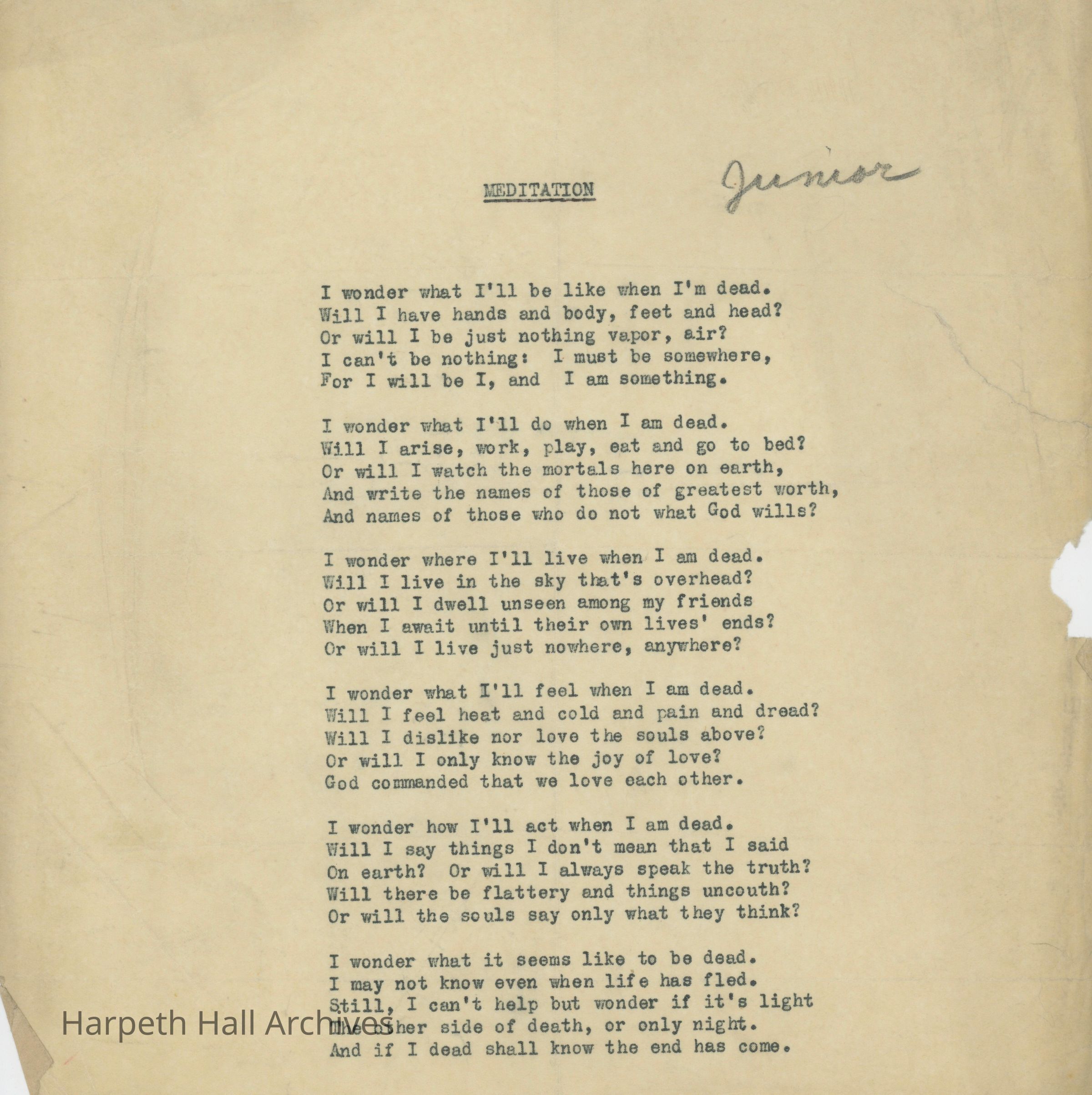 A poem entitled, "Meditation" written by a Ward-Belmont junior.