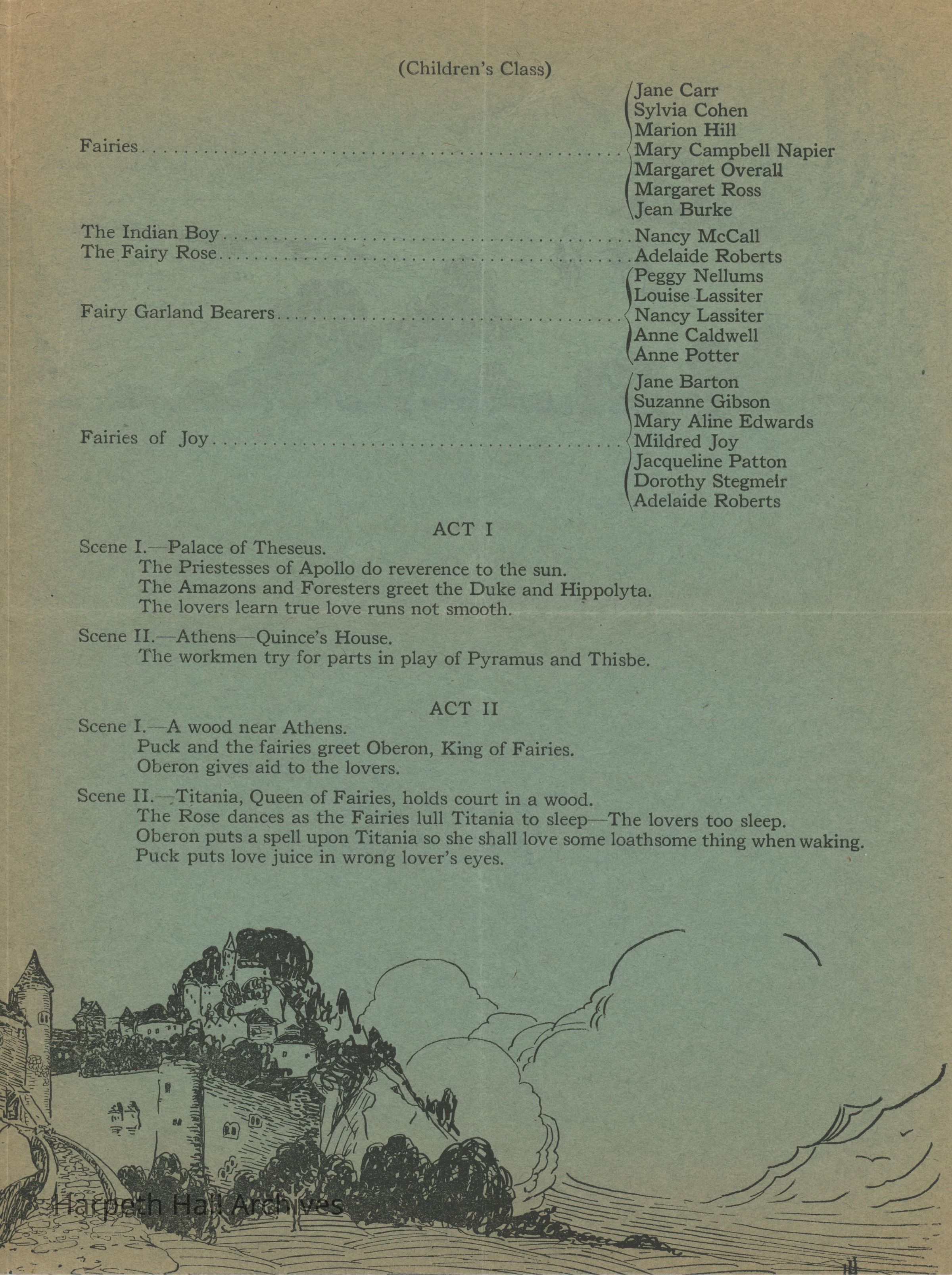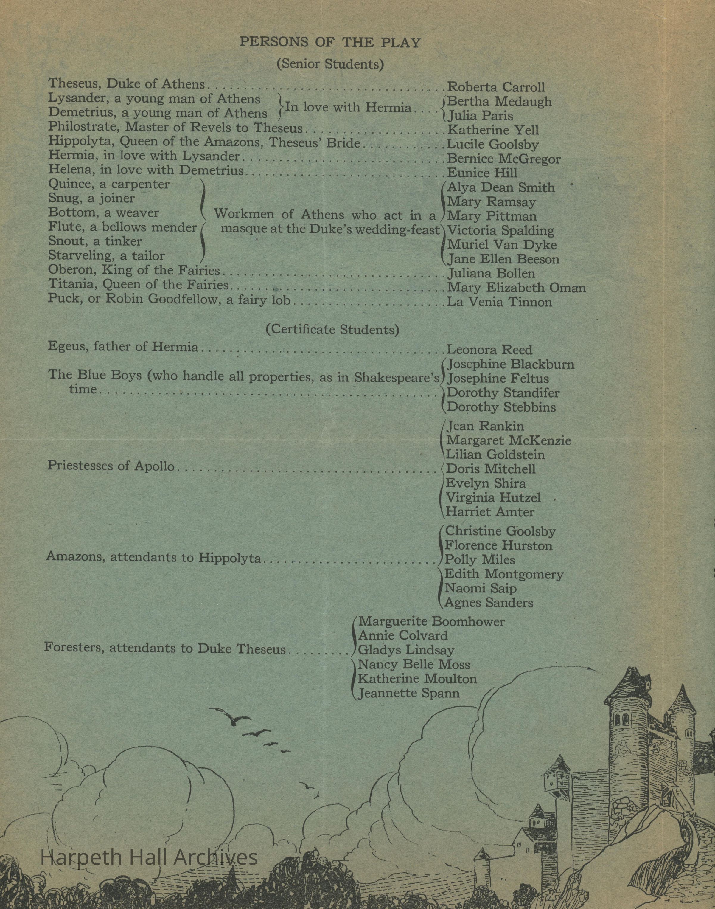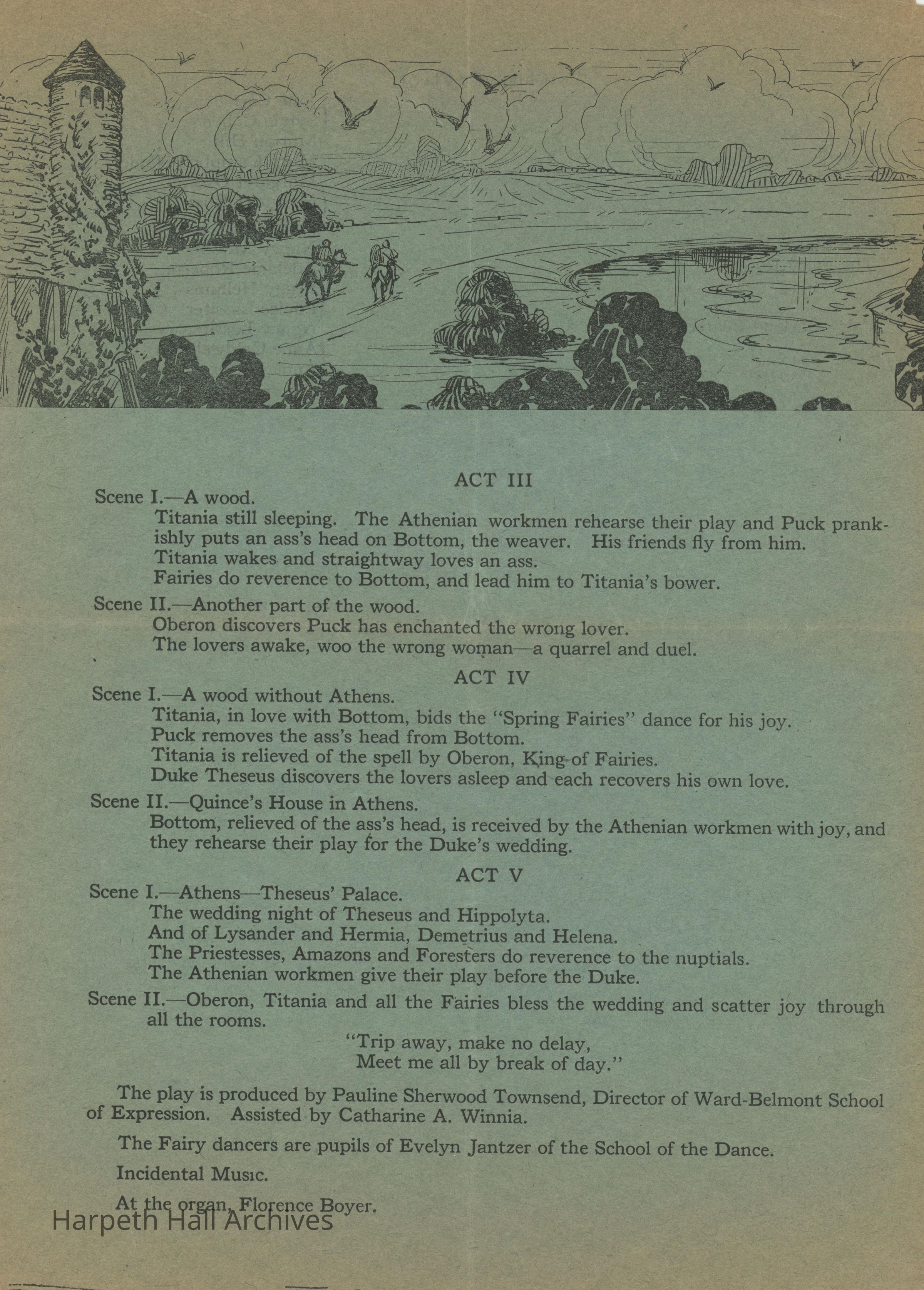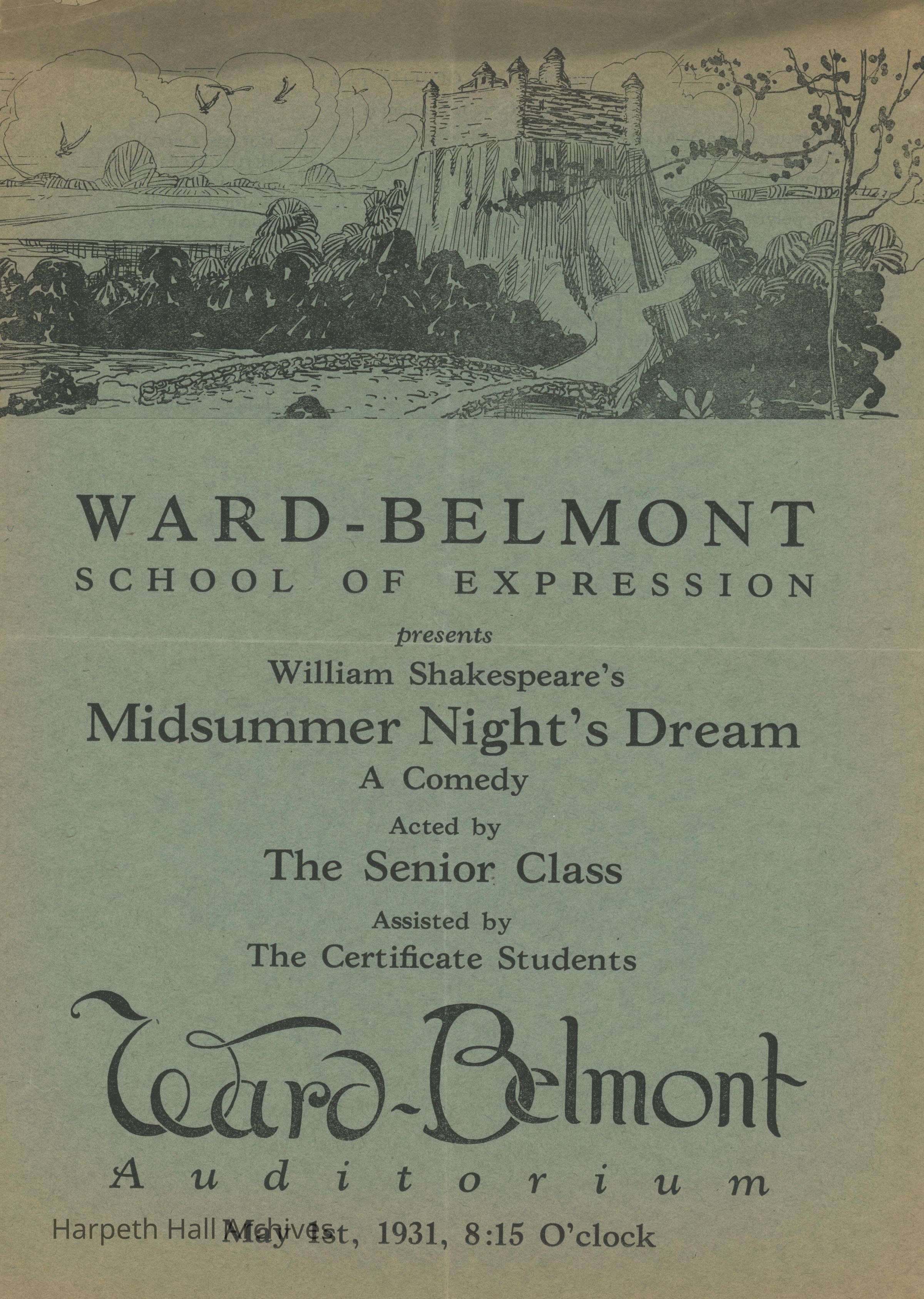 The playbill for the Ward-Belmont showing of "Midsummer Night's Dream." It opened on May 1st, 1931 at 8:15 pm.Collection