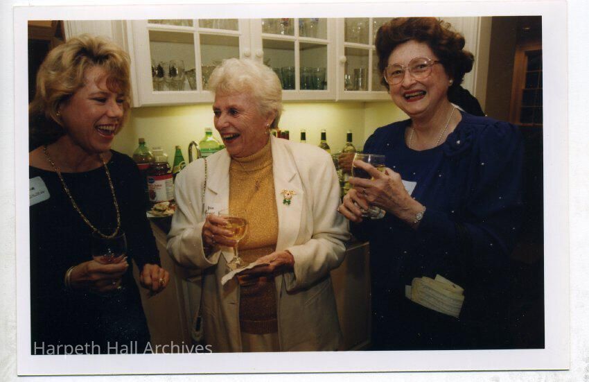 from left to right: Lynne Wallman (1966) and Joan Hooper Vollmer (1946) at the 1998 Alumnae Holiday Party