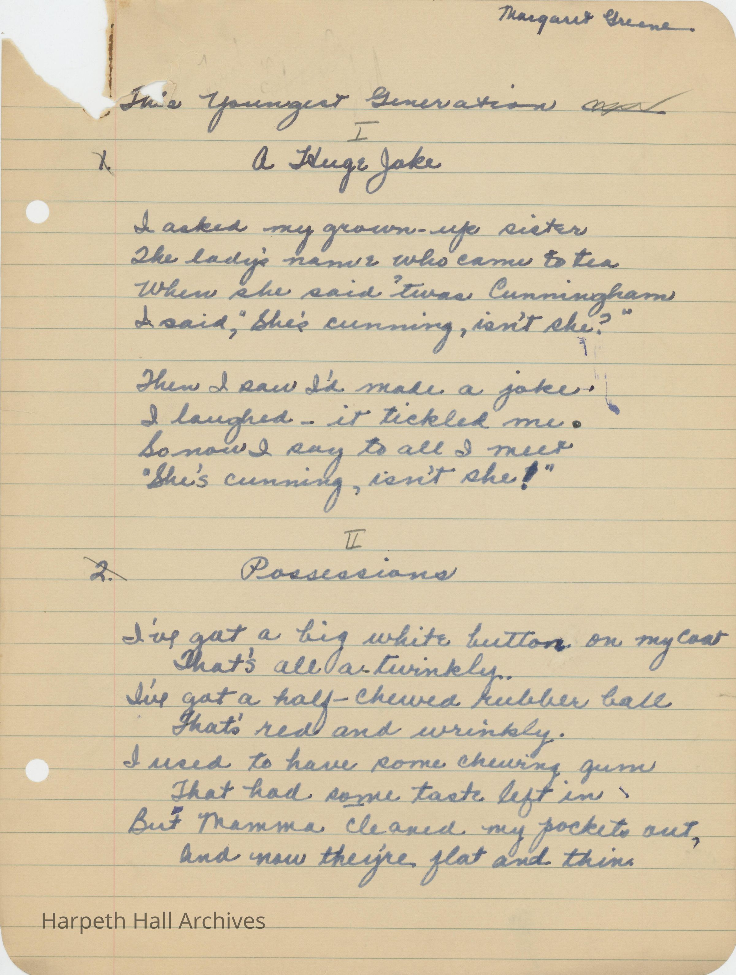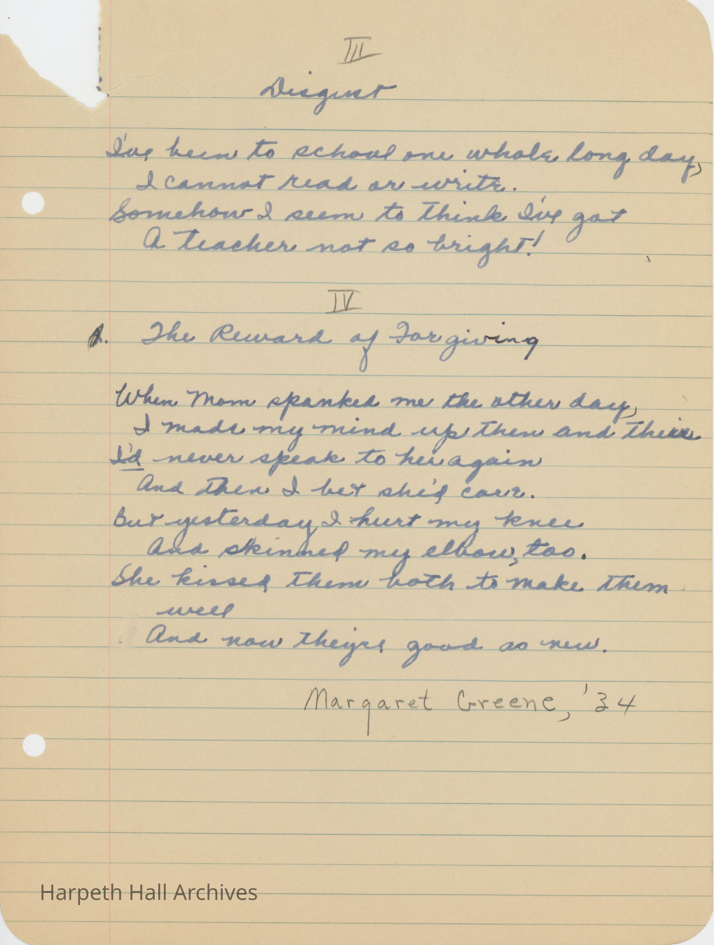 Poems written by Ward-Belmont student Margaret Greene (1934).