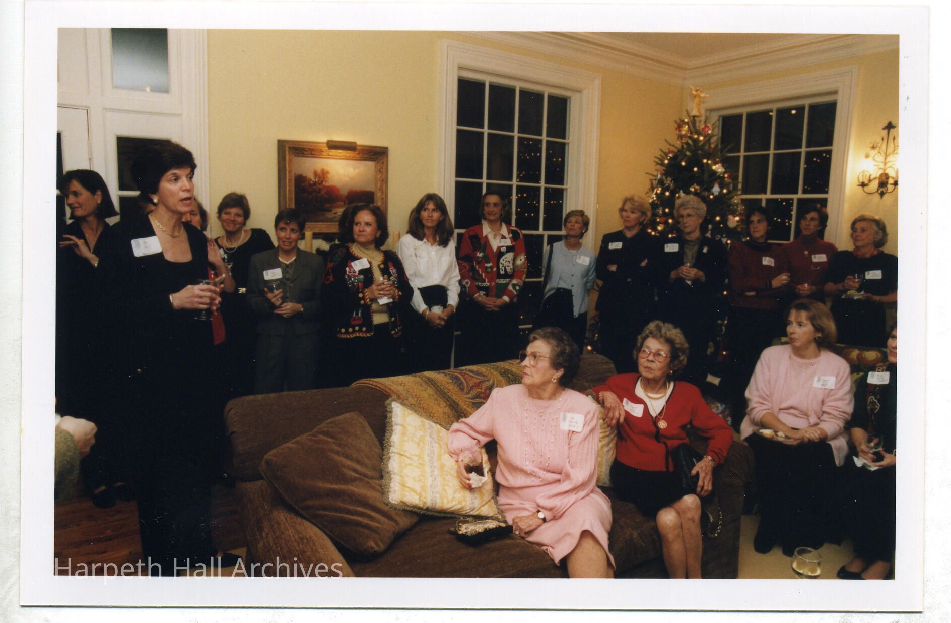 from left to right: Trudy Ward Carpenter (1976), Ann Teaff (Head of School 1998-2014), and Roberta Suddoth Witherspoon (1950) at the 1998 Alumnae Holiday Party