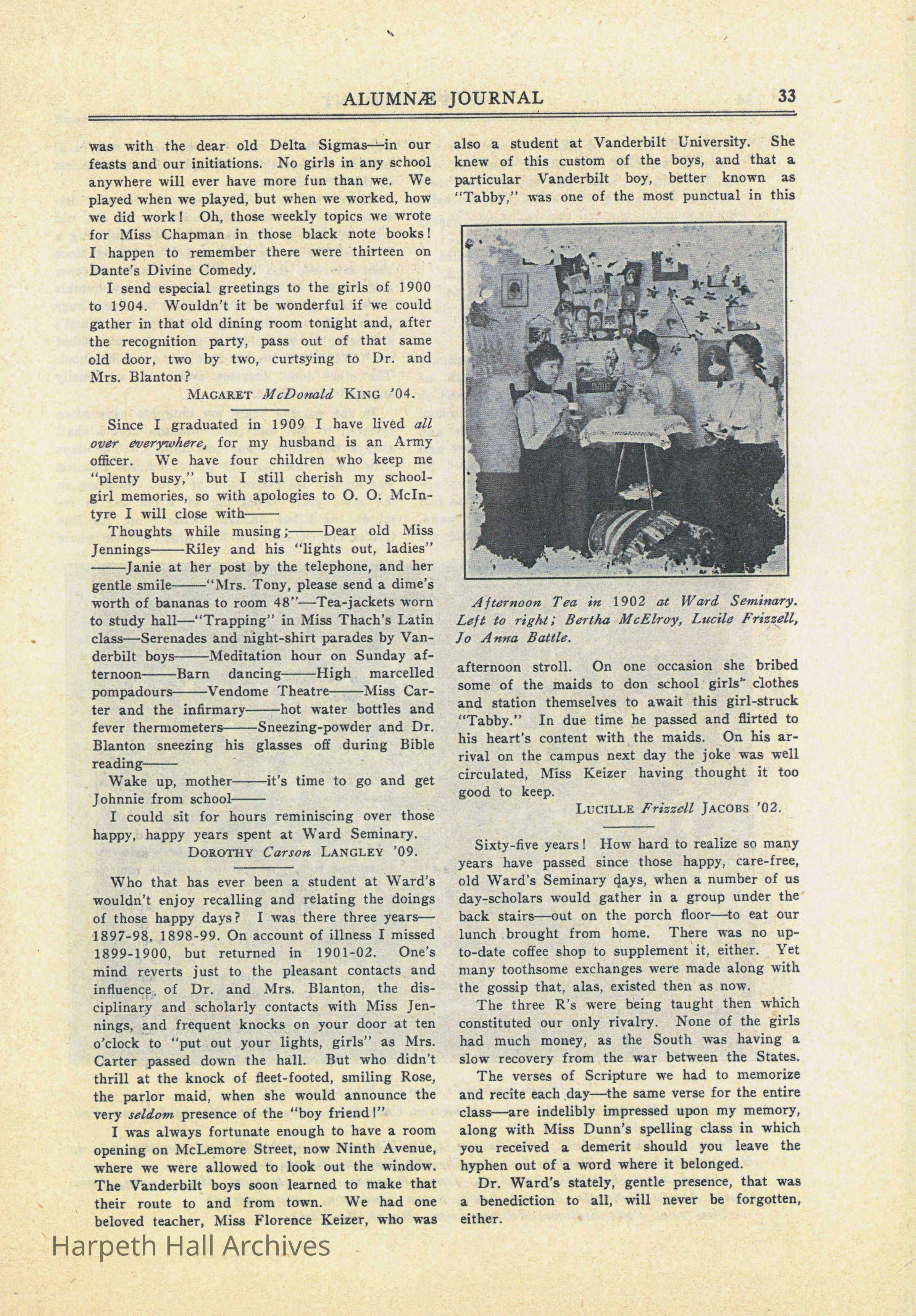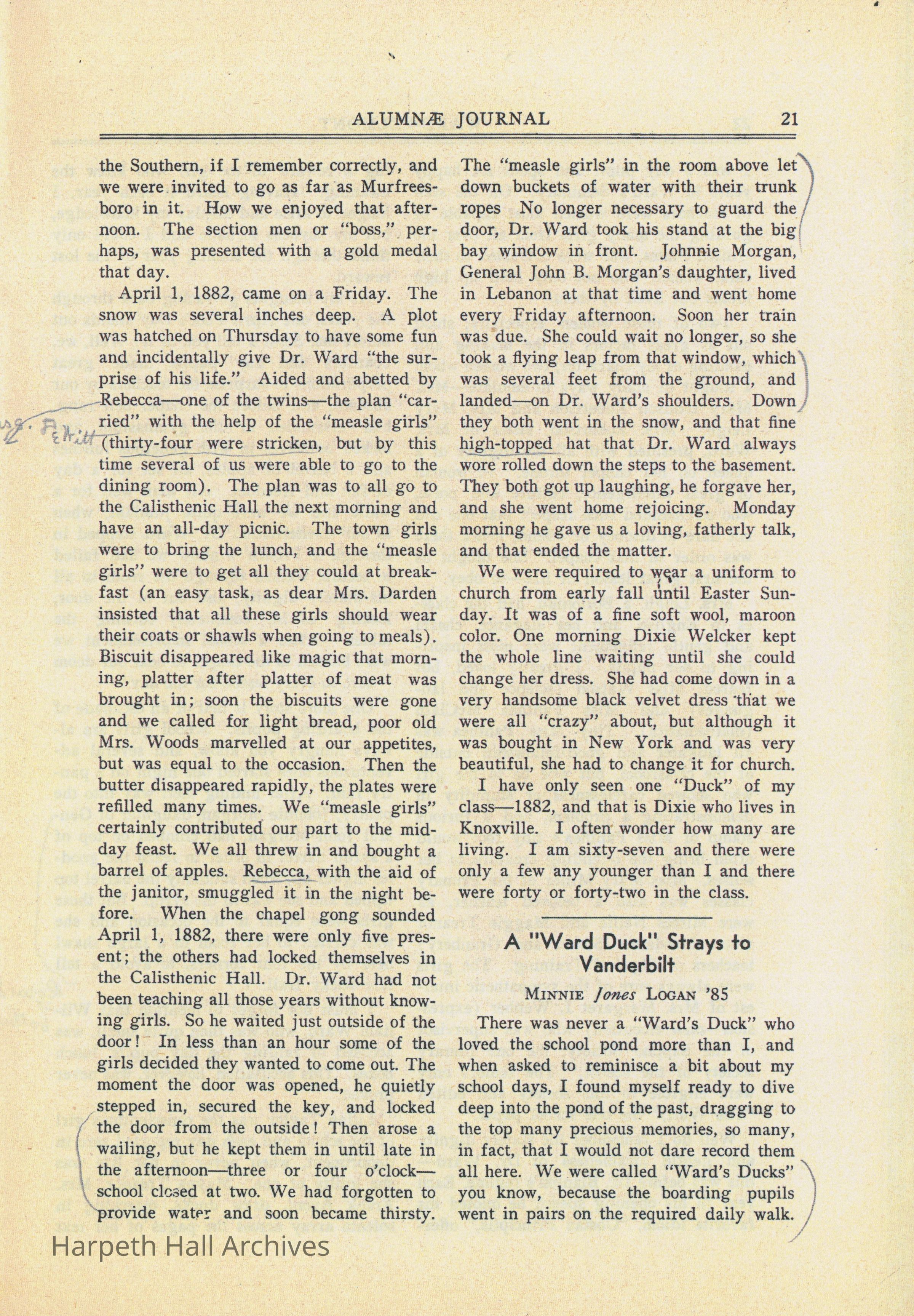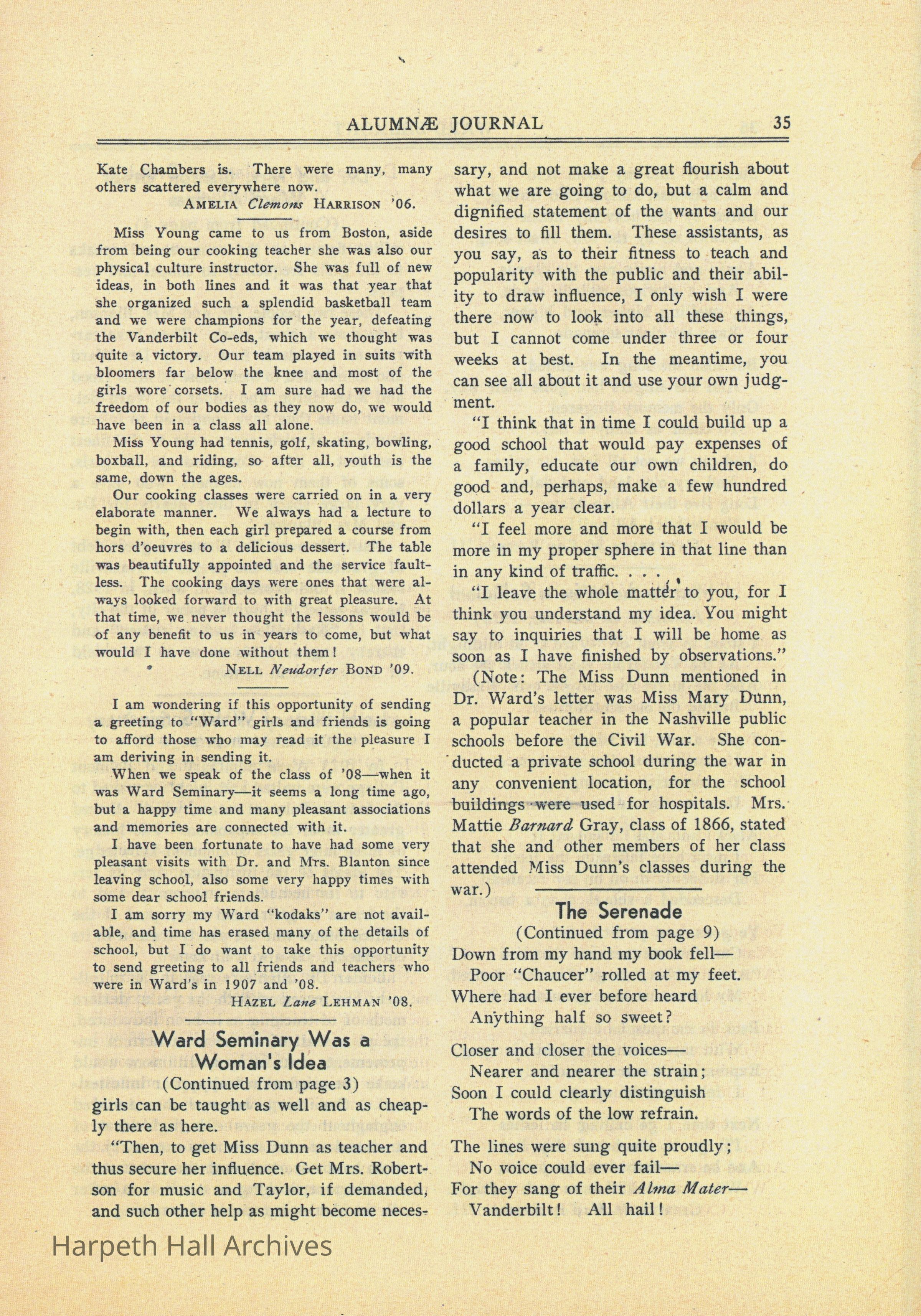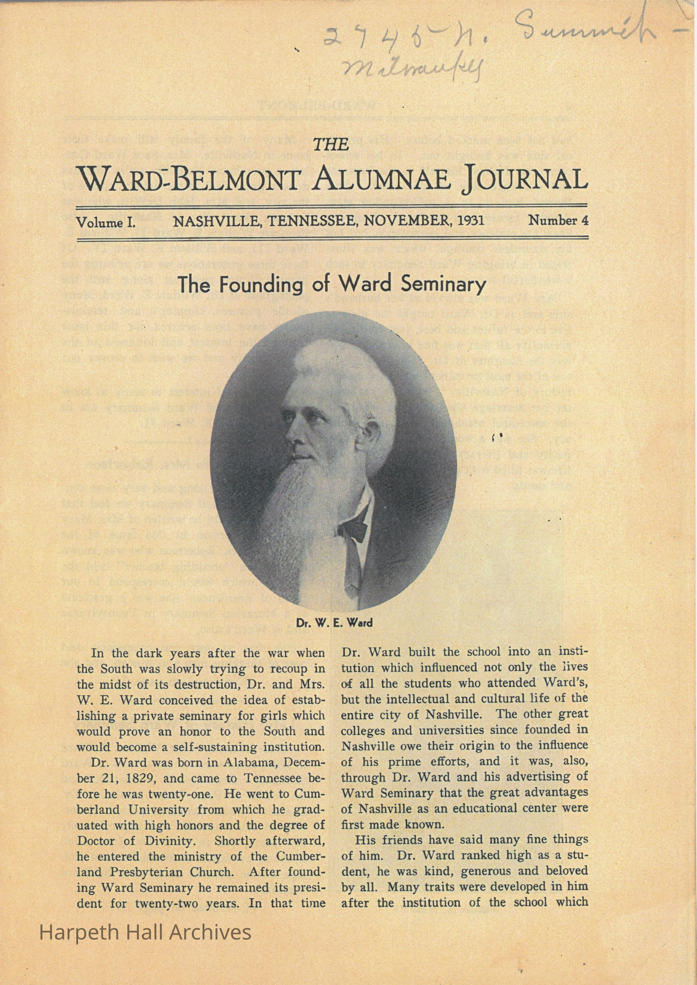 Photo copy of Ward-Belmont Alumnae Journal from 1931 detailing WB history, alumnae-written articles on stories from their WB days, and alumnae updates.Collection