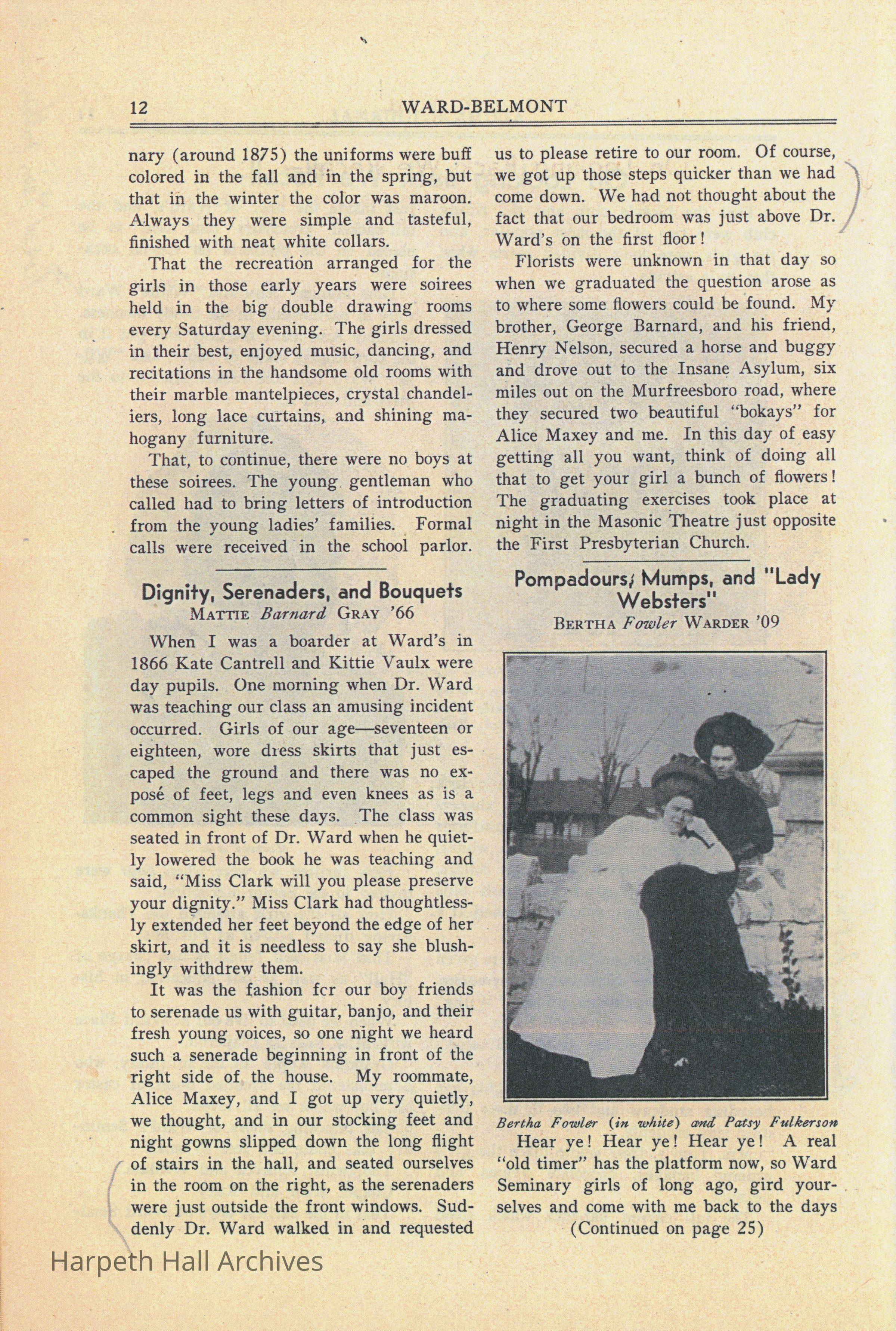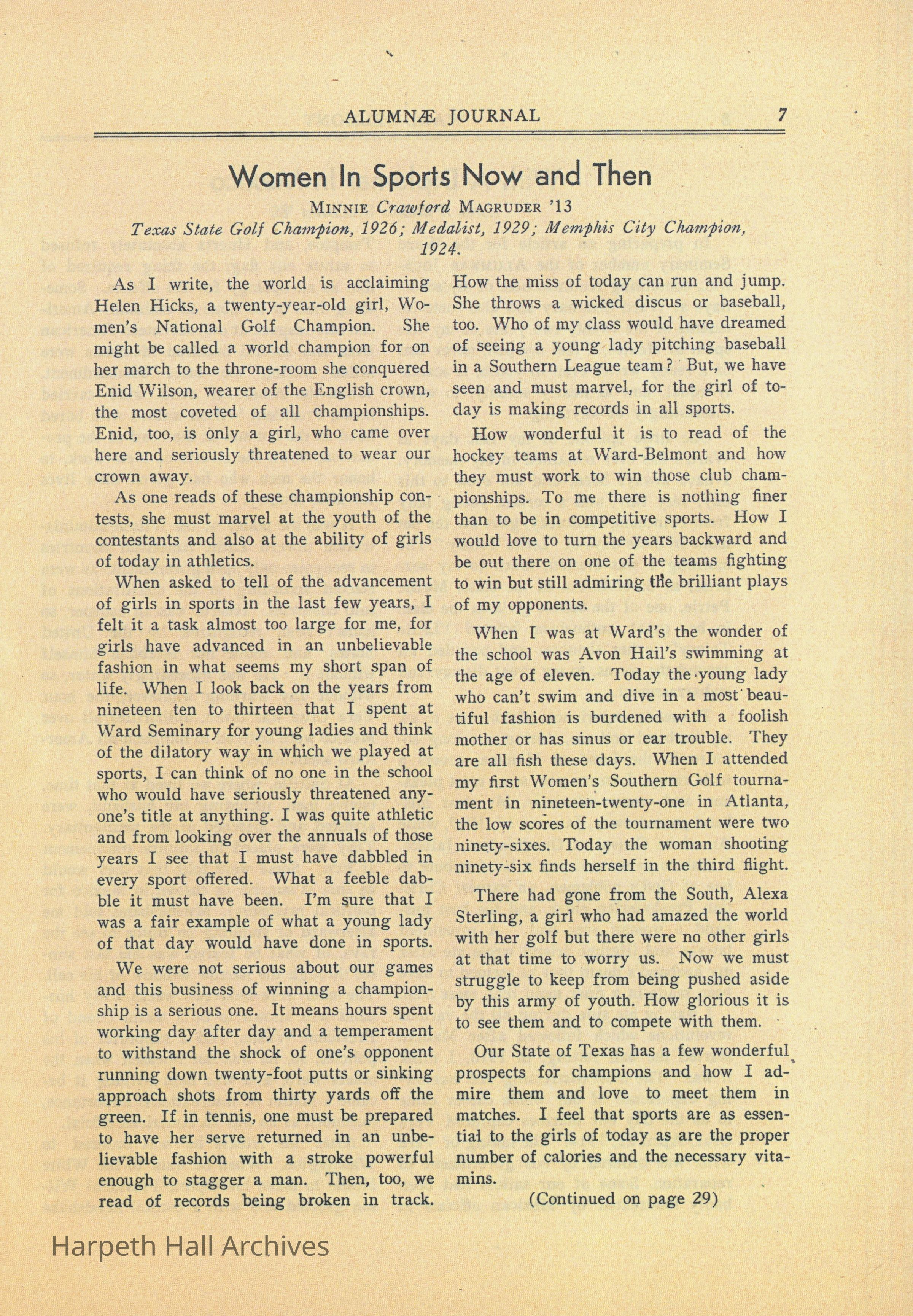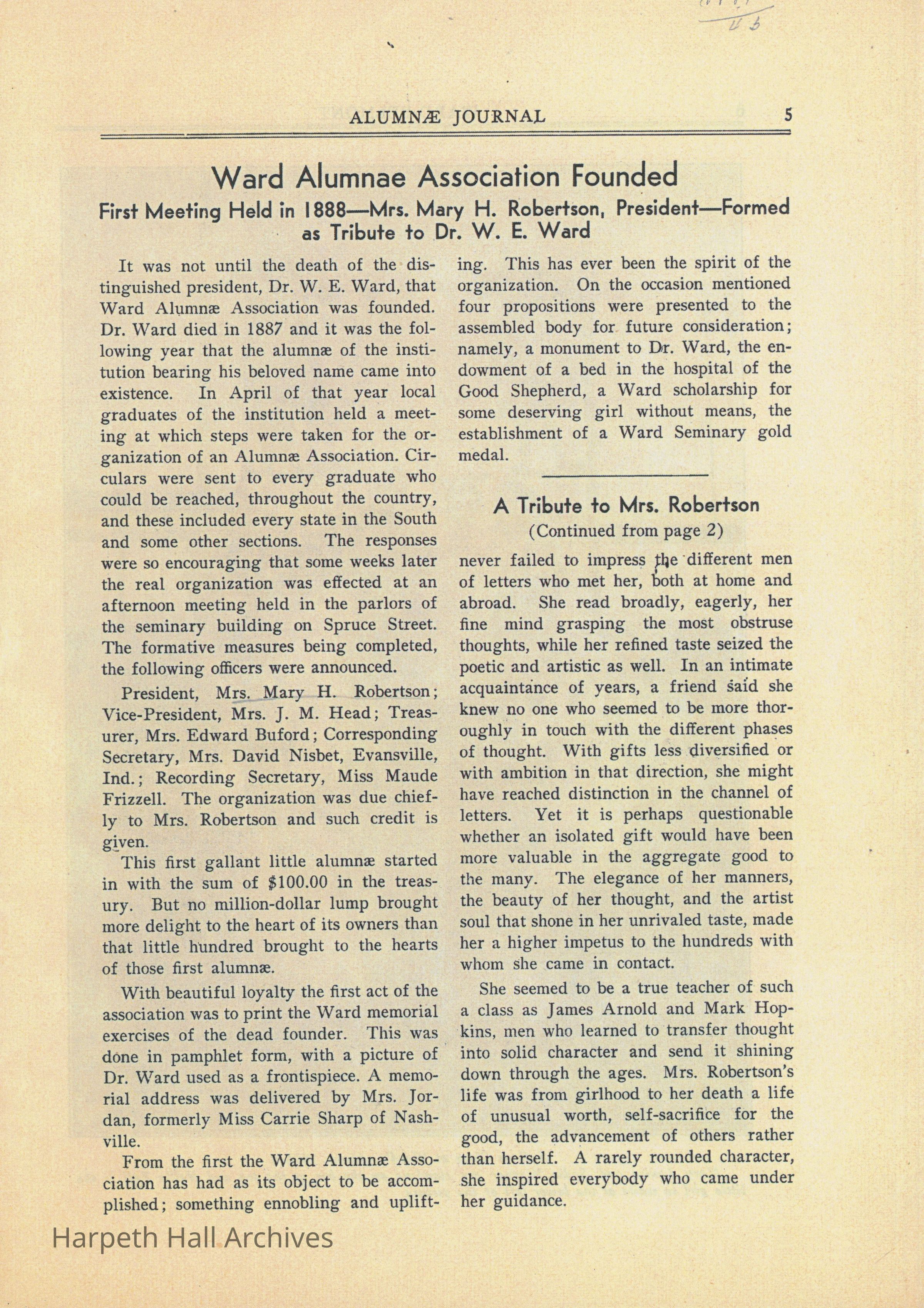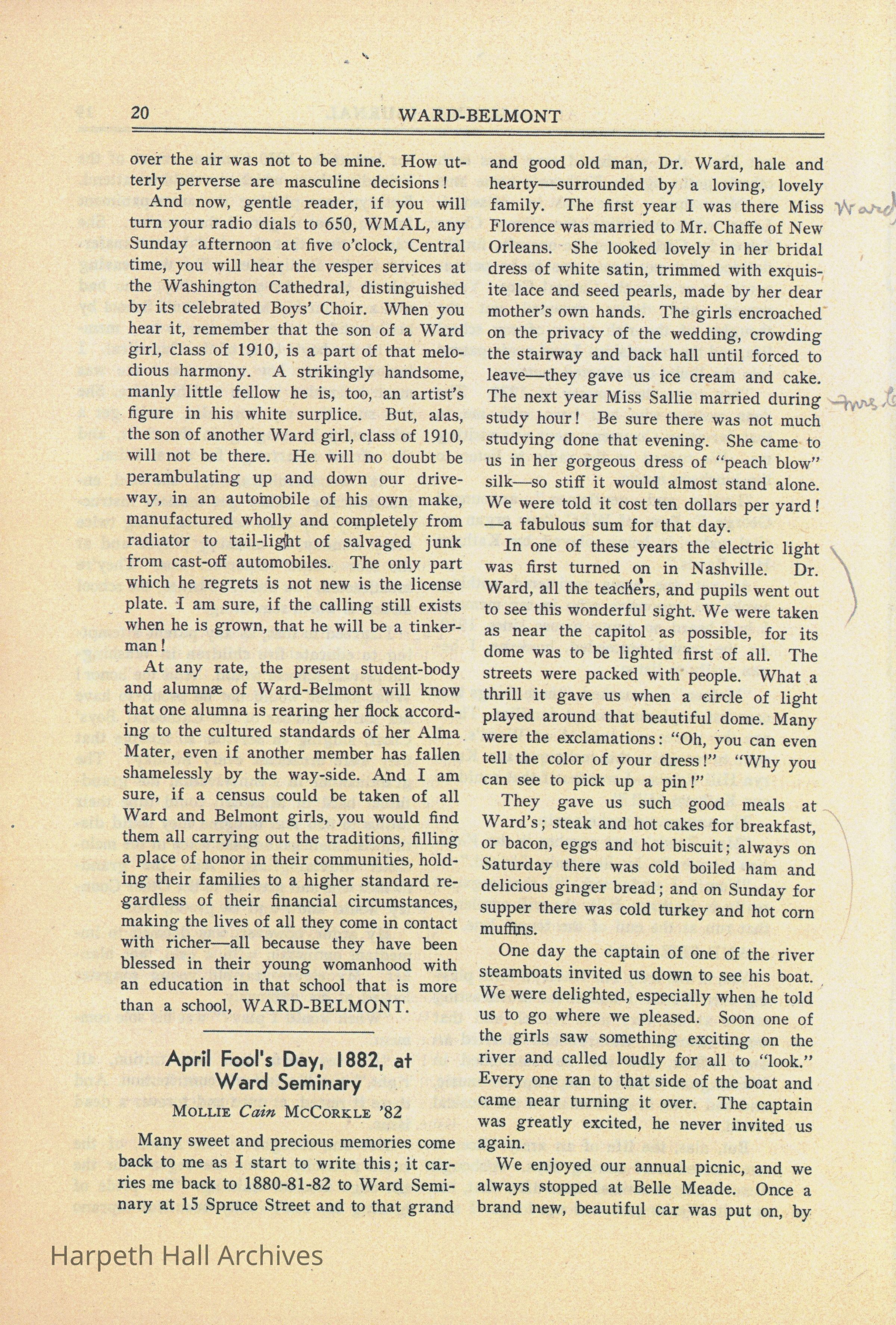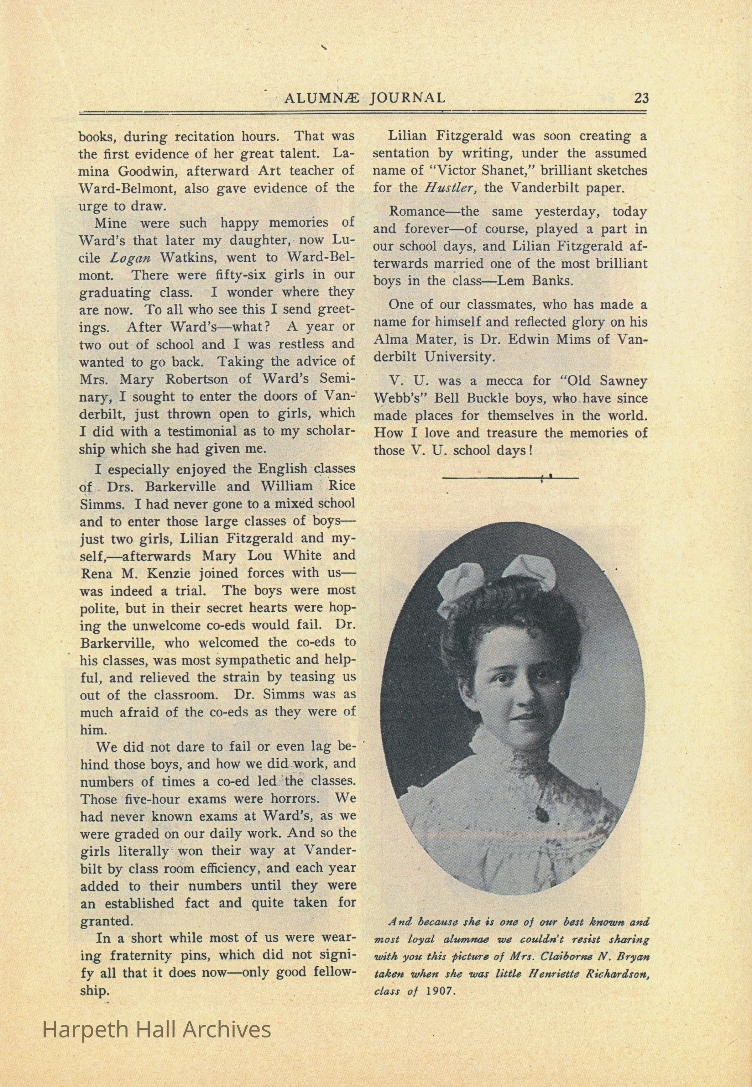 Photo copy of Ward-Belmont Alumnae Journal from 1931 detailing WB history, alumnae-written articles on stories from their WB days, and alumnae updates.Collection