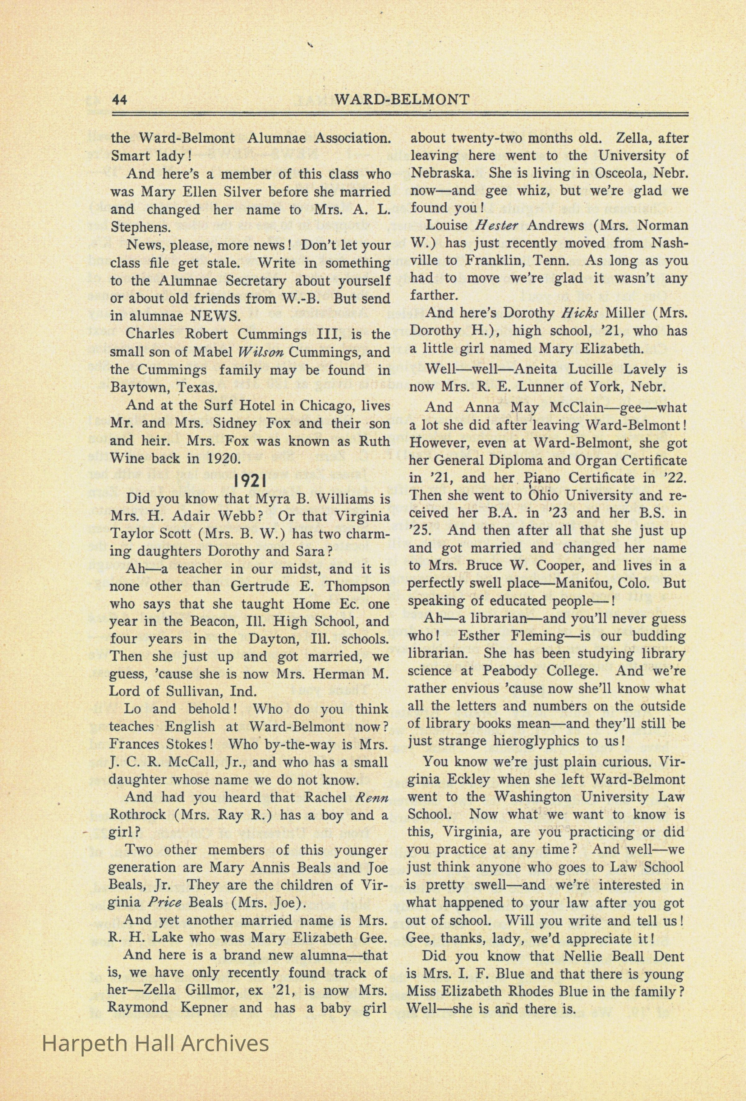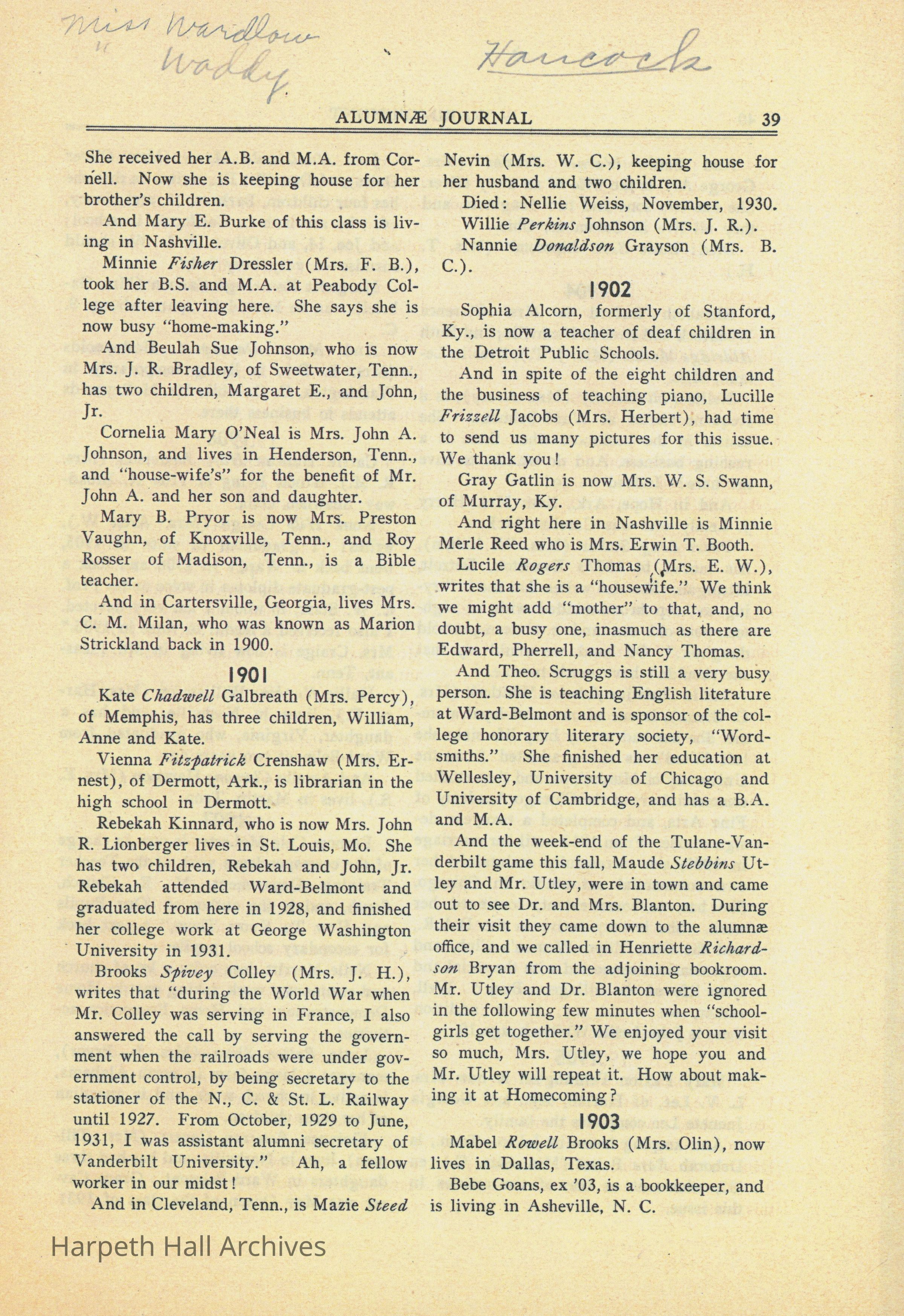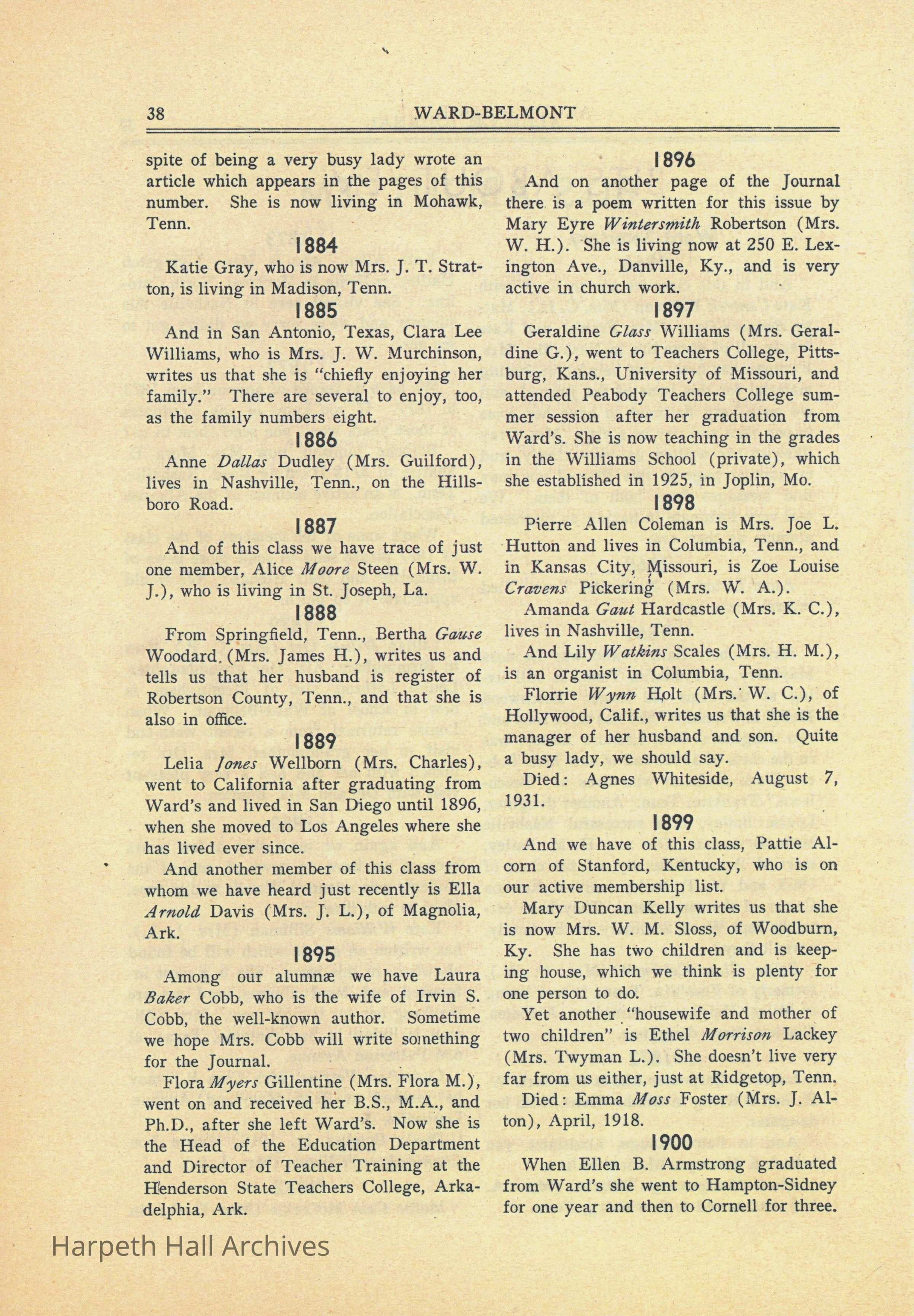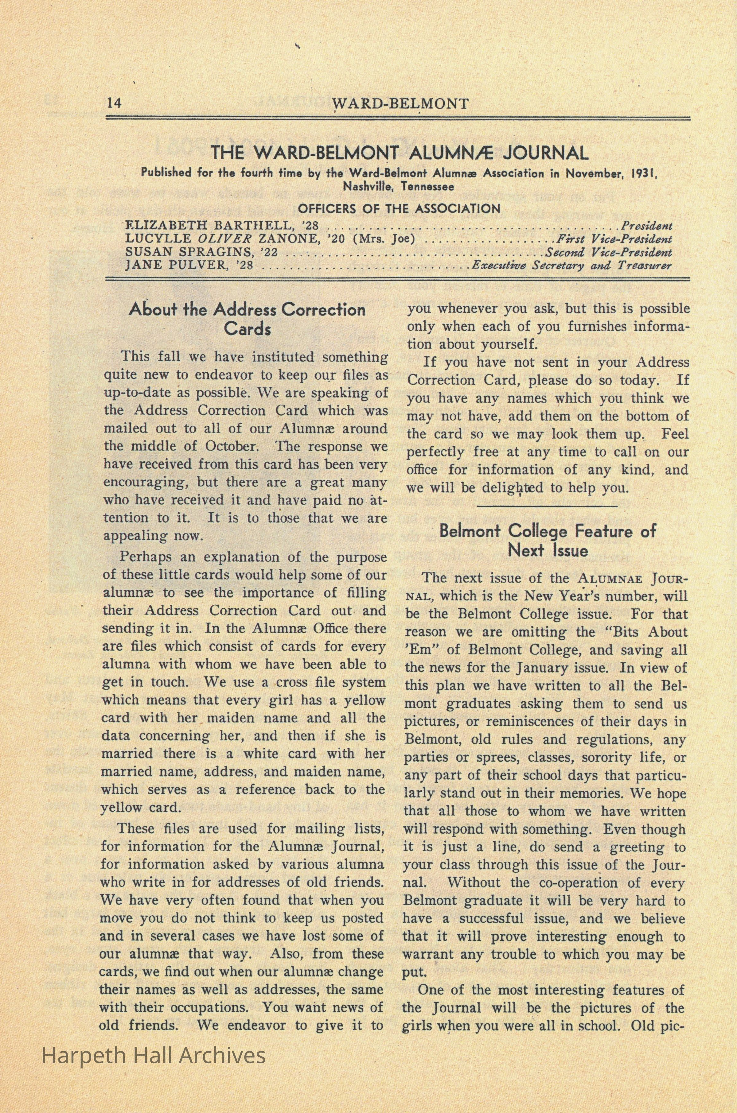 The Ward-Belmont Alumnae Journal 1931Entry/Object ID