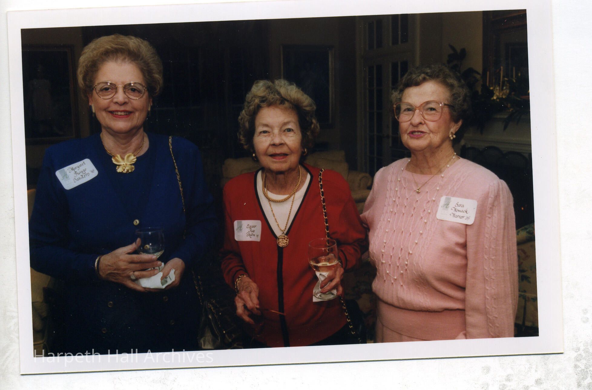 from left to right: Margaret Frogge Sanders (1945), Eleanor Page Moore (1945), Sara Womack Warner (1935) at the 1998 Alumnae Holiday Party