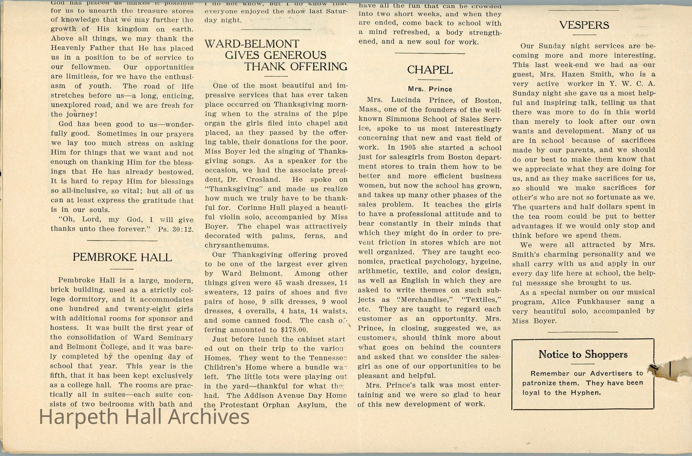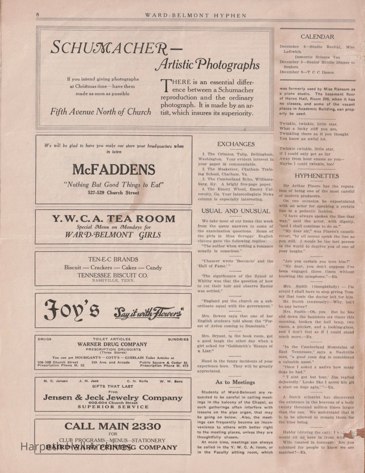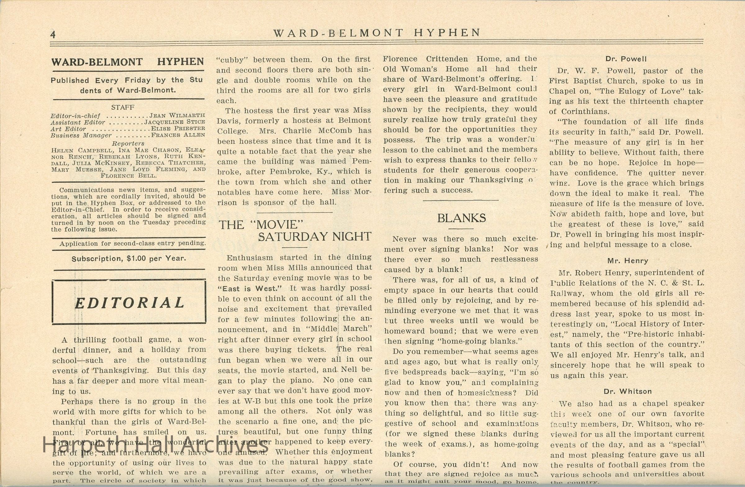 Ward-Belmont, Hyphen, Newspaper, 1922