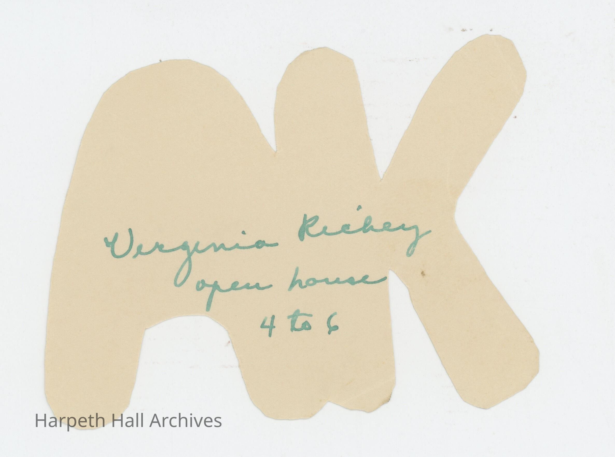 An invitation addressed to Virginia Richey inviting her to come to the AK Club open house from 4-6pm. AK was a club at Ward-Belmont.Collection