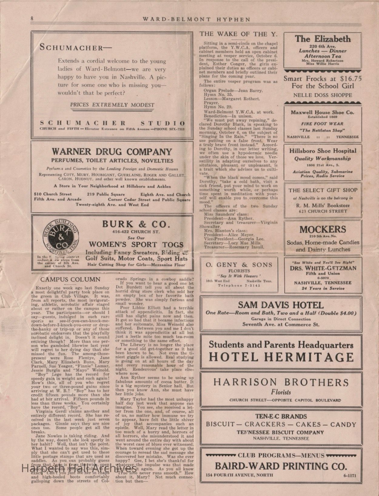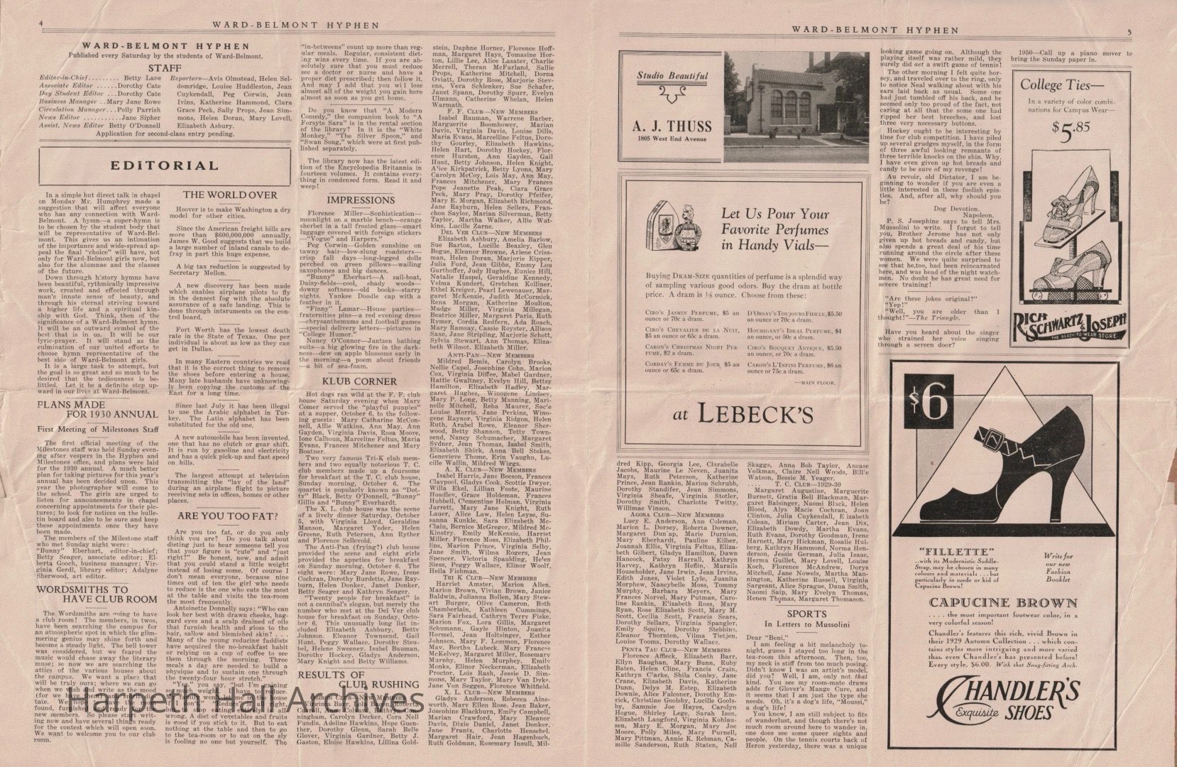 Ward-Belmont, Hyphen, Newspaper, 1929