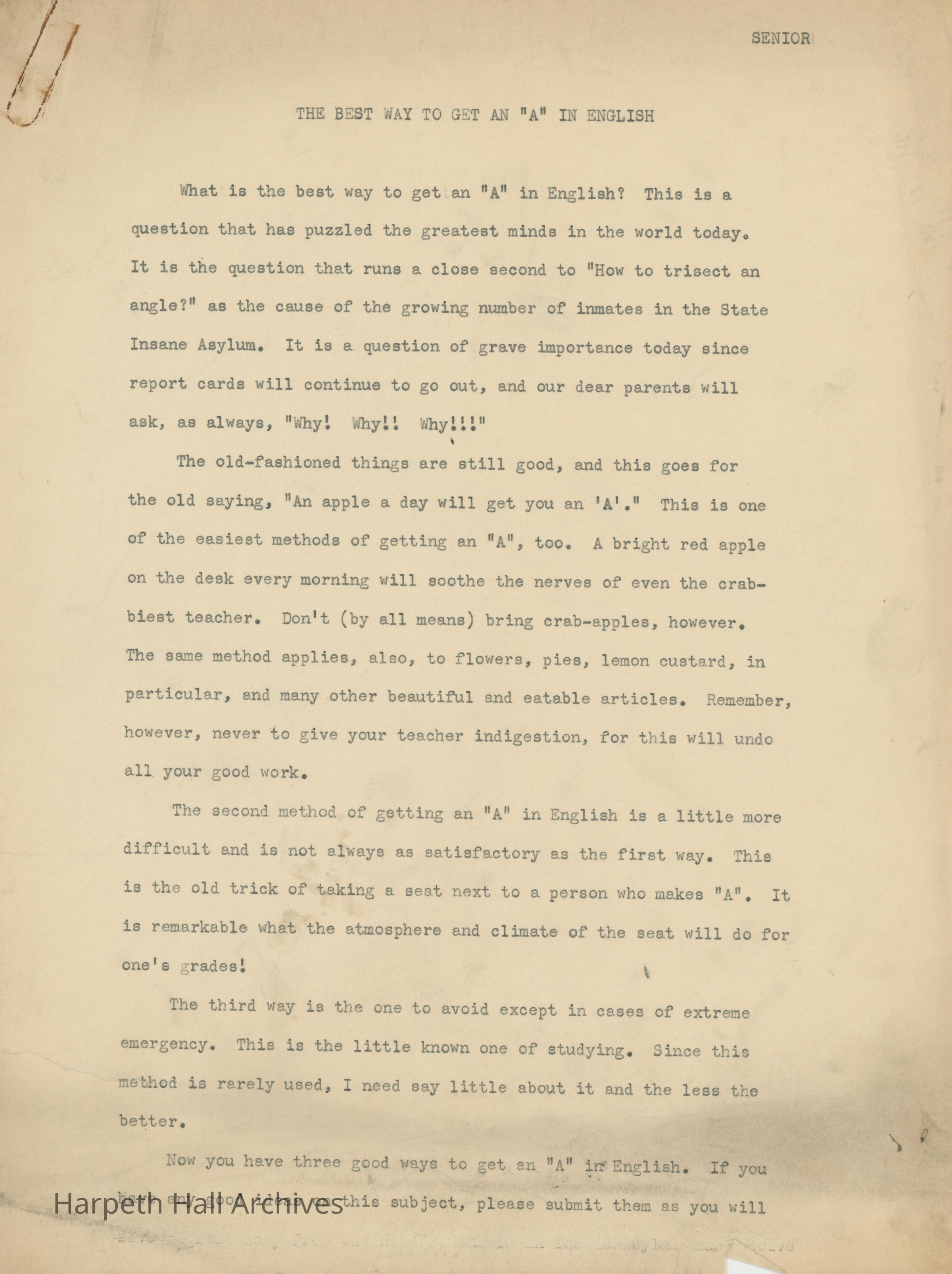 An essay entitled "The Best Way to Get an 'A' in English" written by a Ward-Belmont senior.