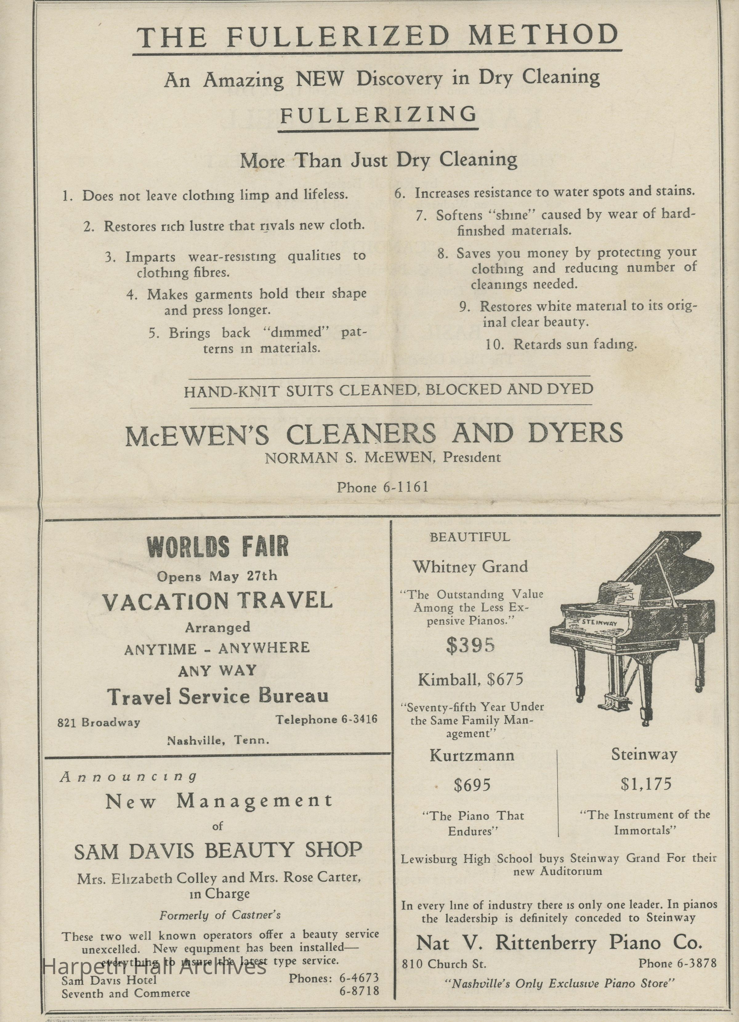 Ward-Belmont, Ryman Auditorium, 1934, Play, Program