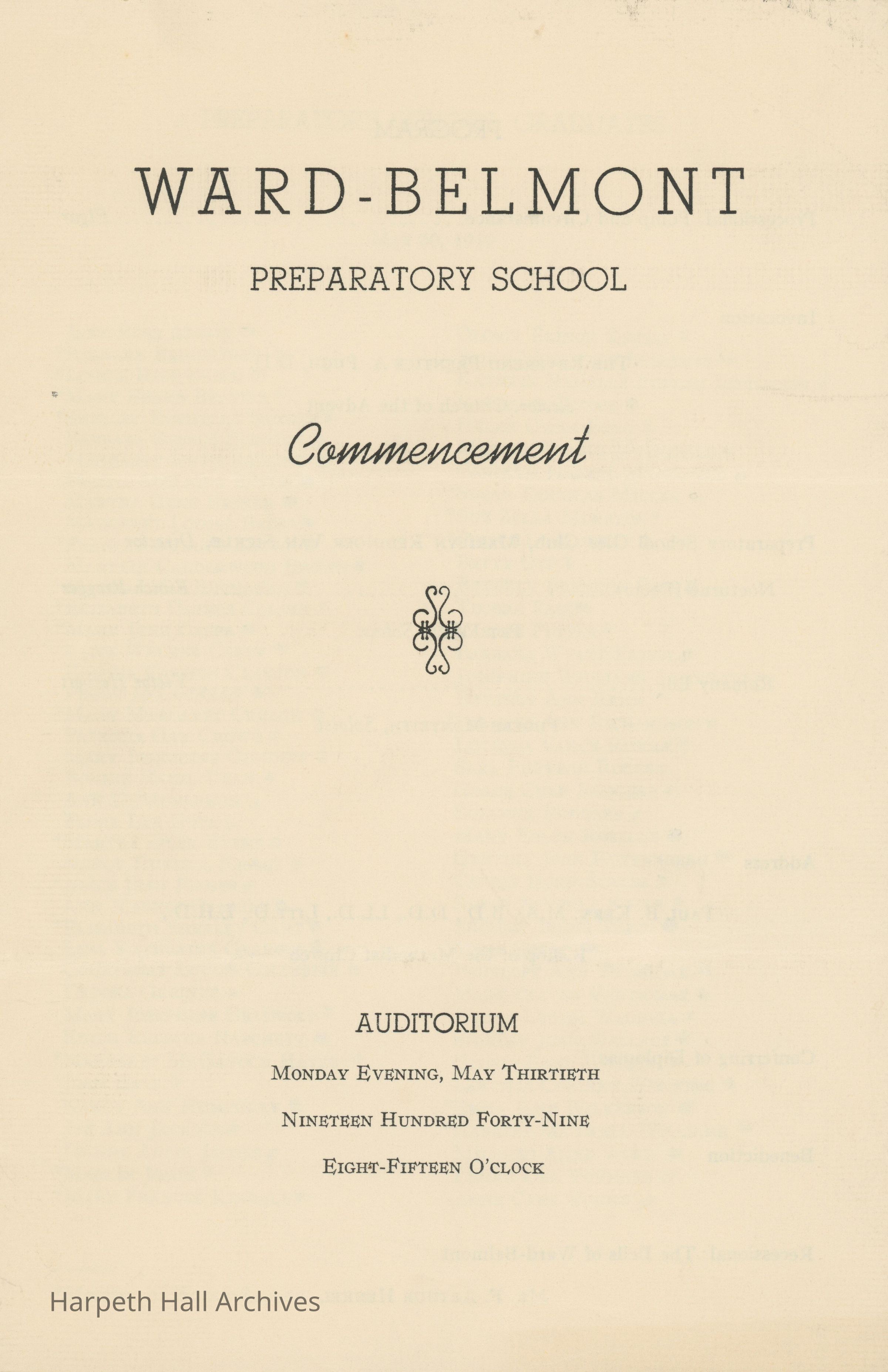 The program for Ward-Belmont's Preparatory School Commencement on May 13th, 1949.Collection