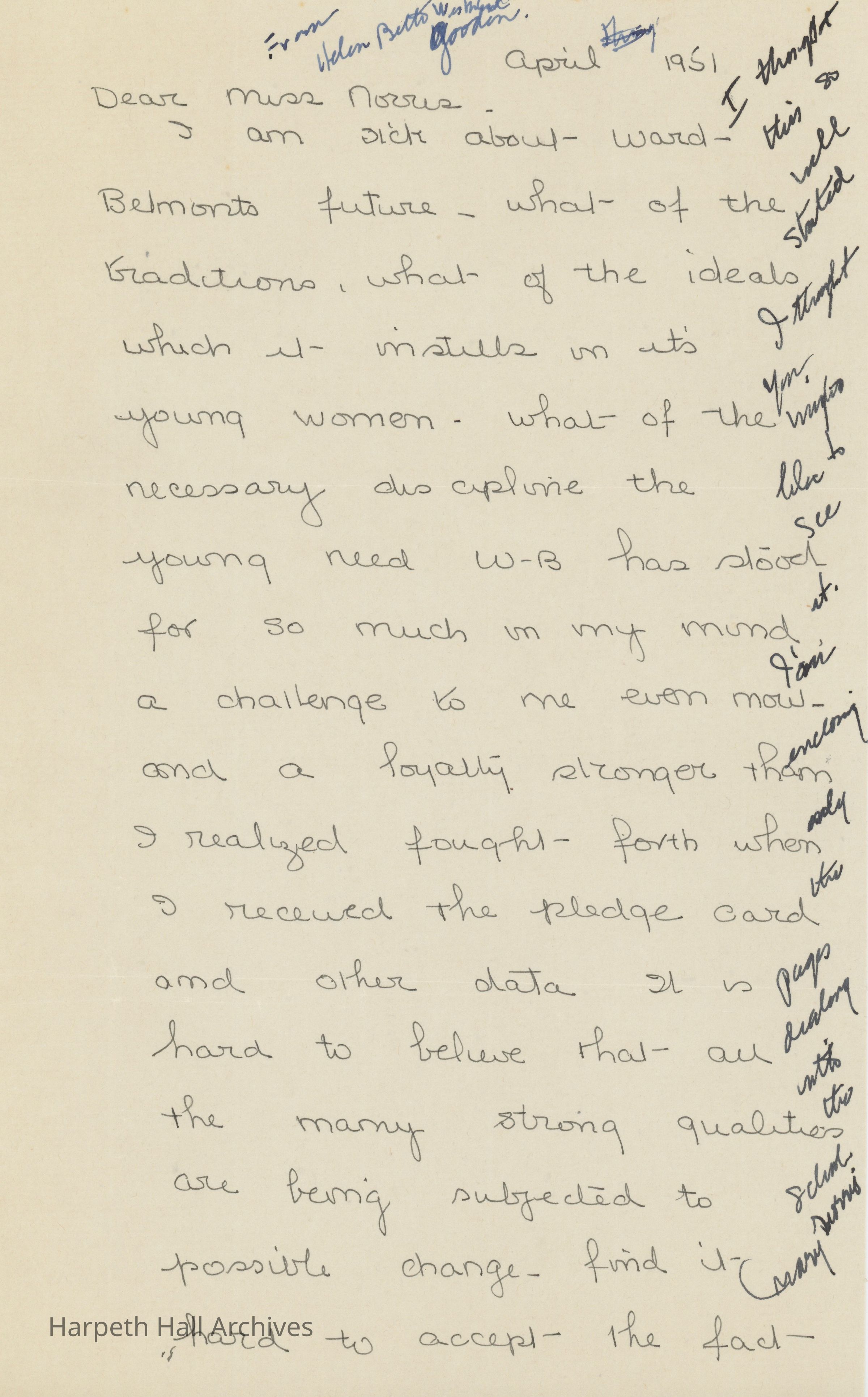 Letter from an Alumna About W-B's Transfer, 1951Entry/Object ID