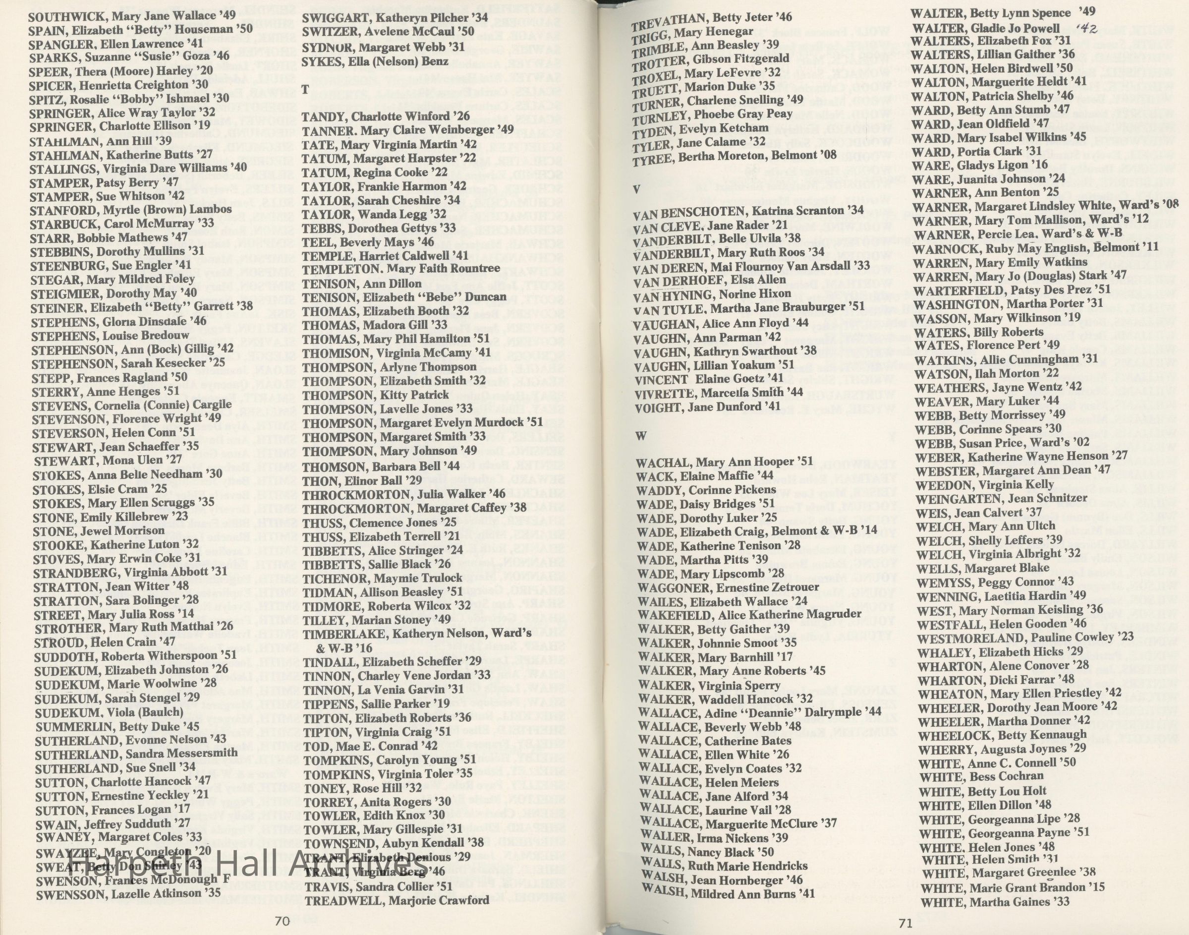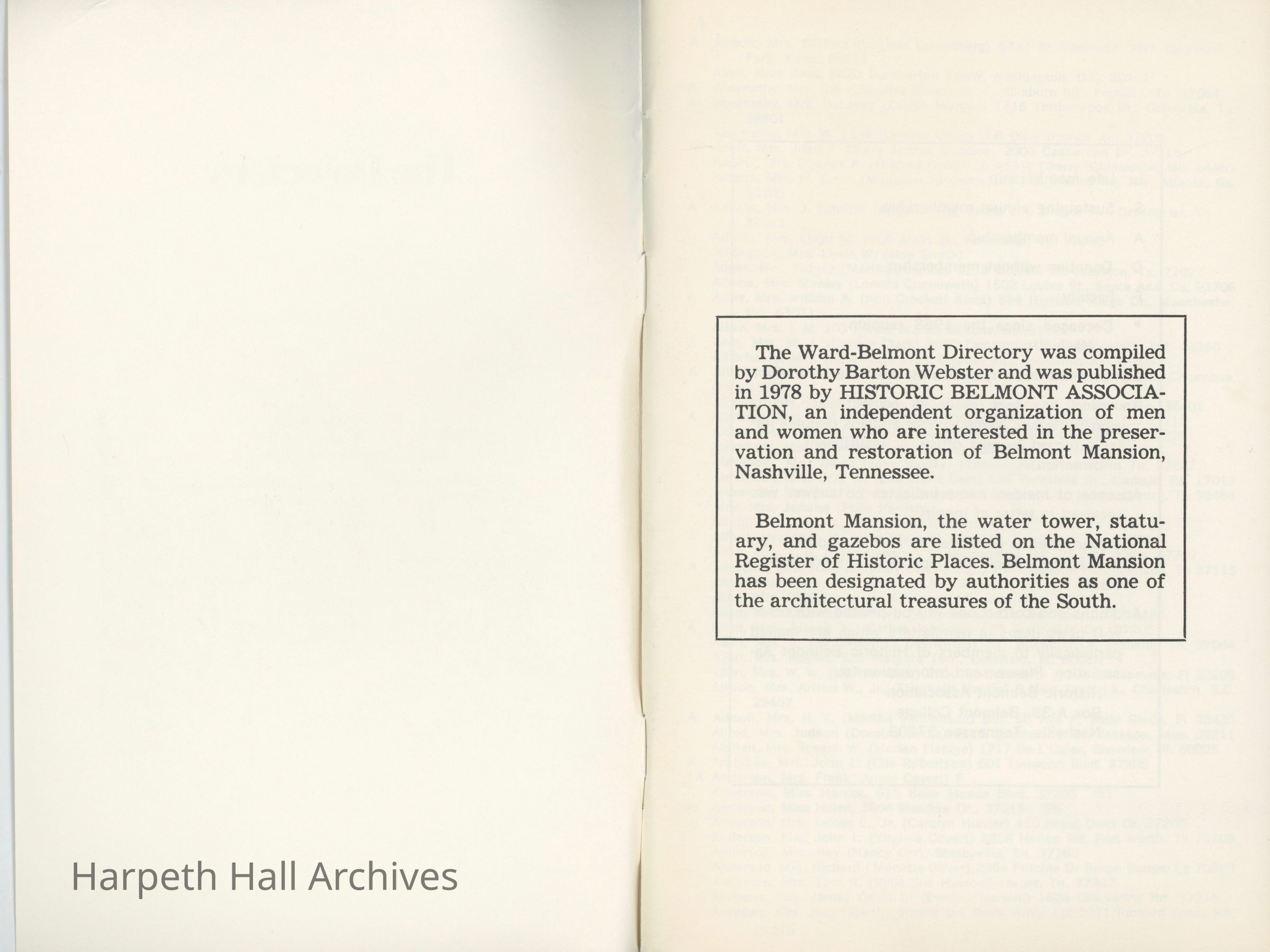 Ward-Belmont, 1978, directory