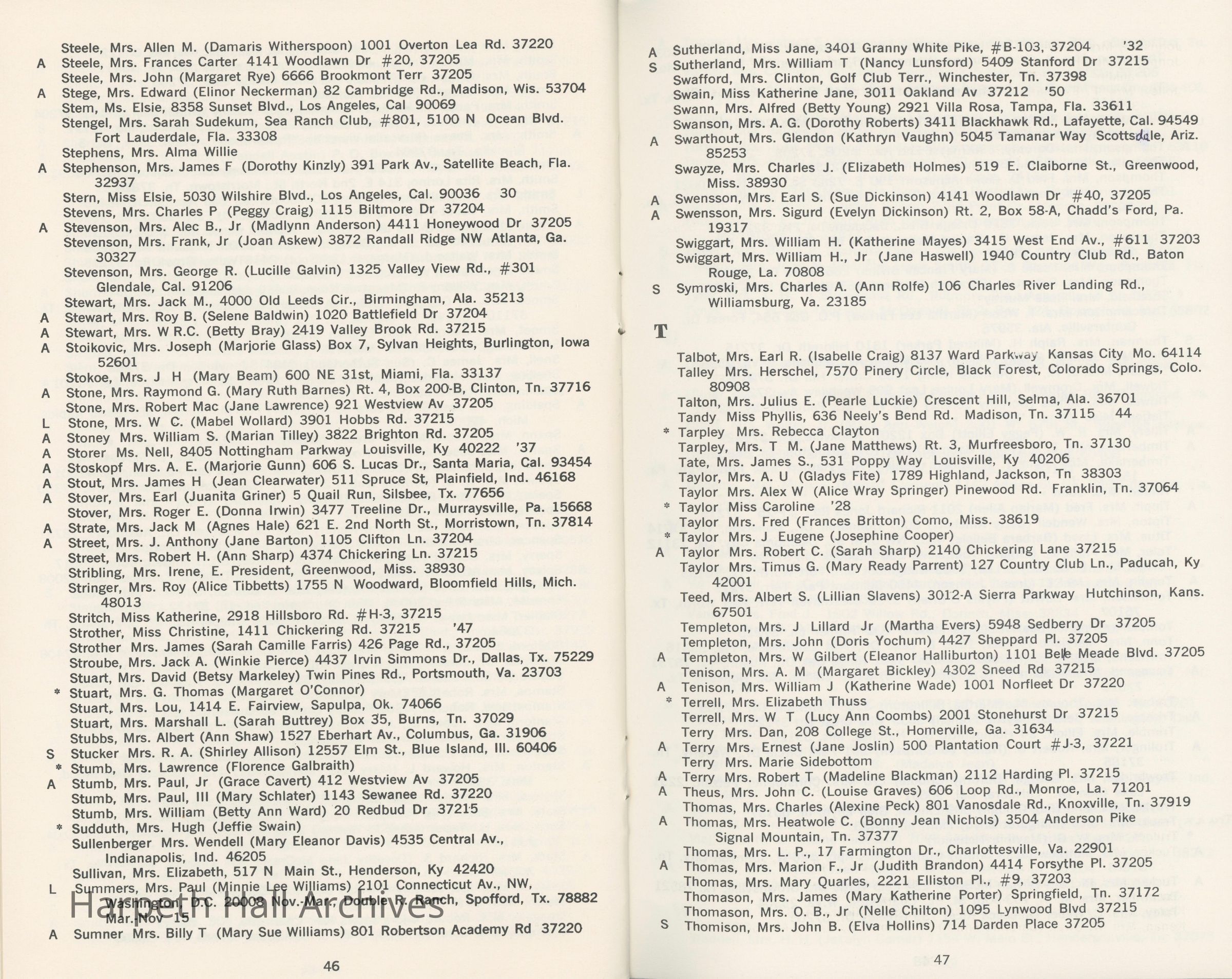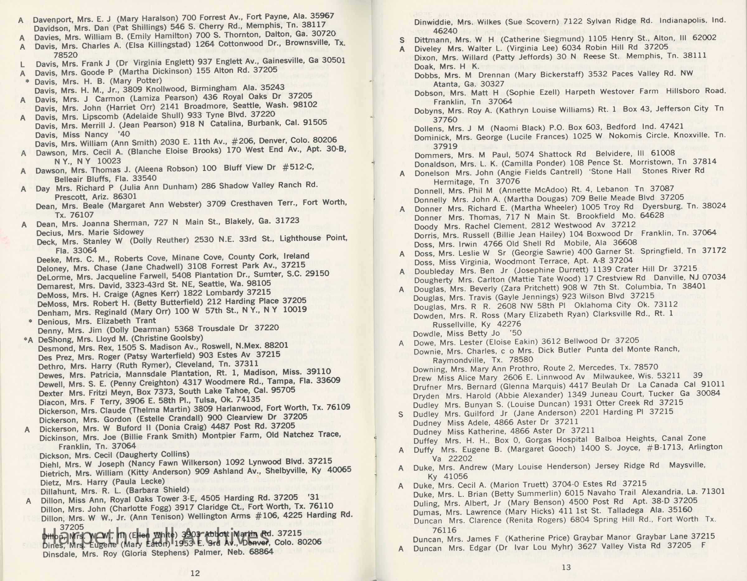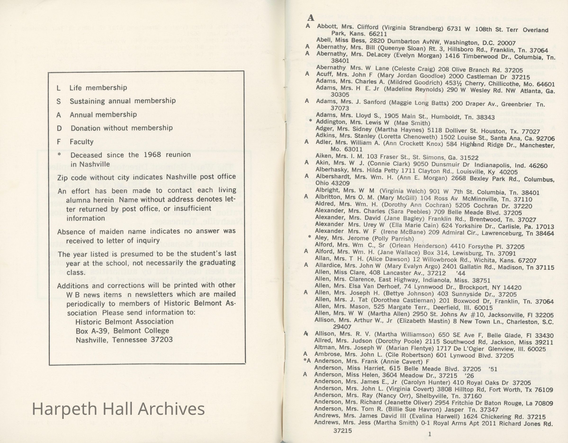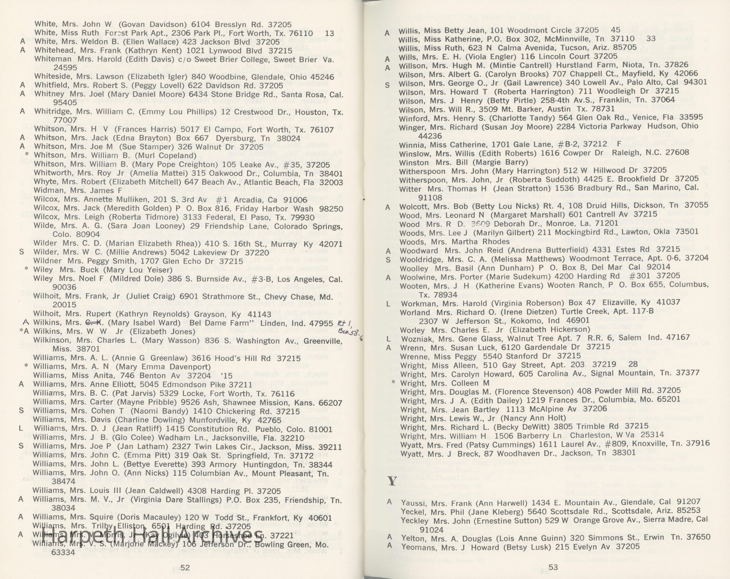 Directory of Ward-Belmont alumnae created in 1978 by Dorothy Barton Webster, including an undated sheet of updates and additions to the directoryCollection