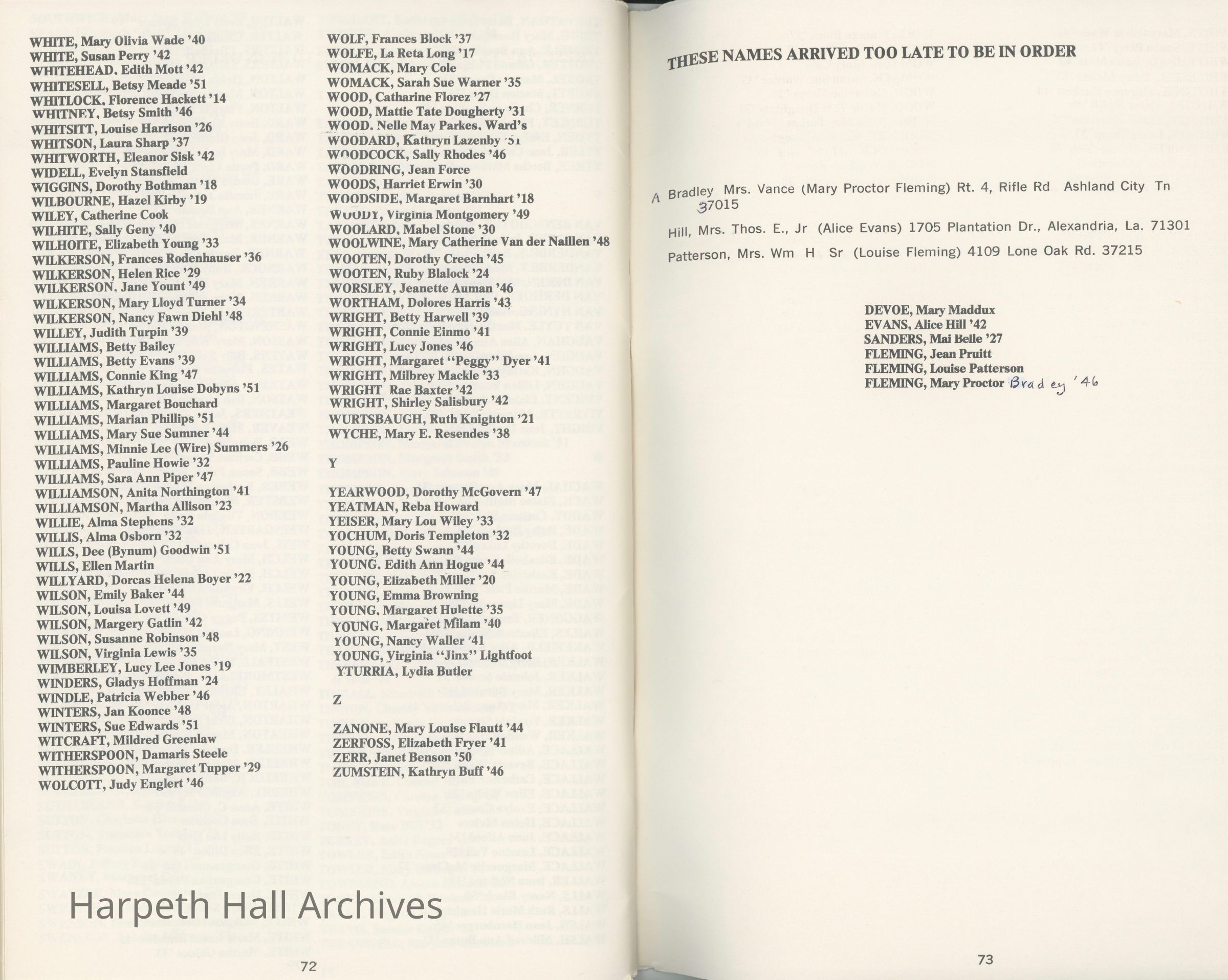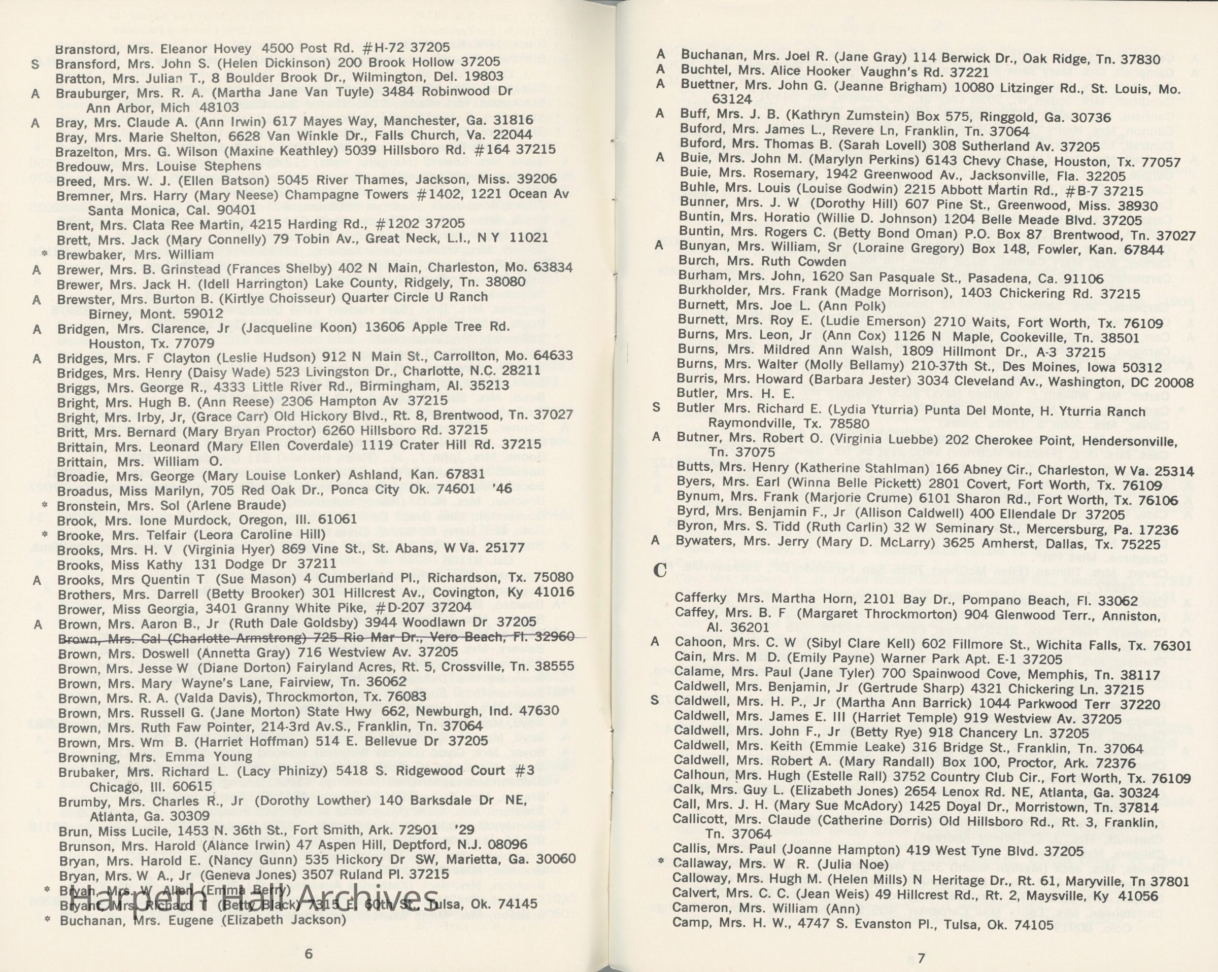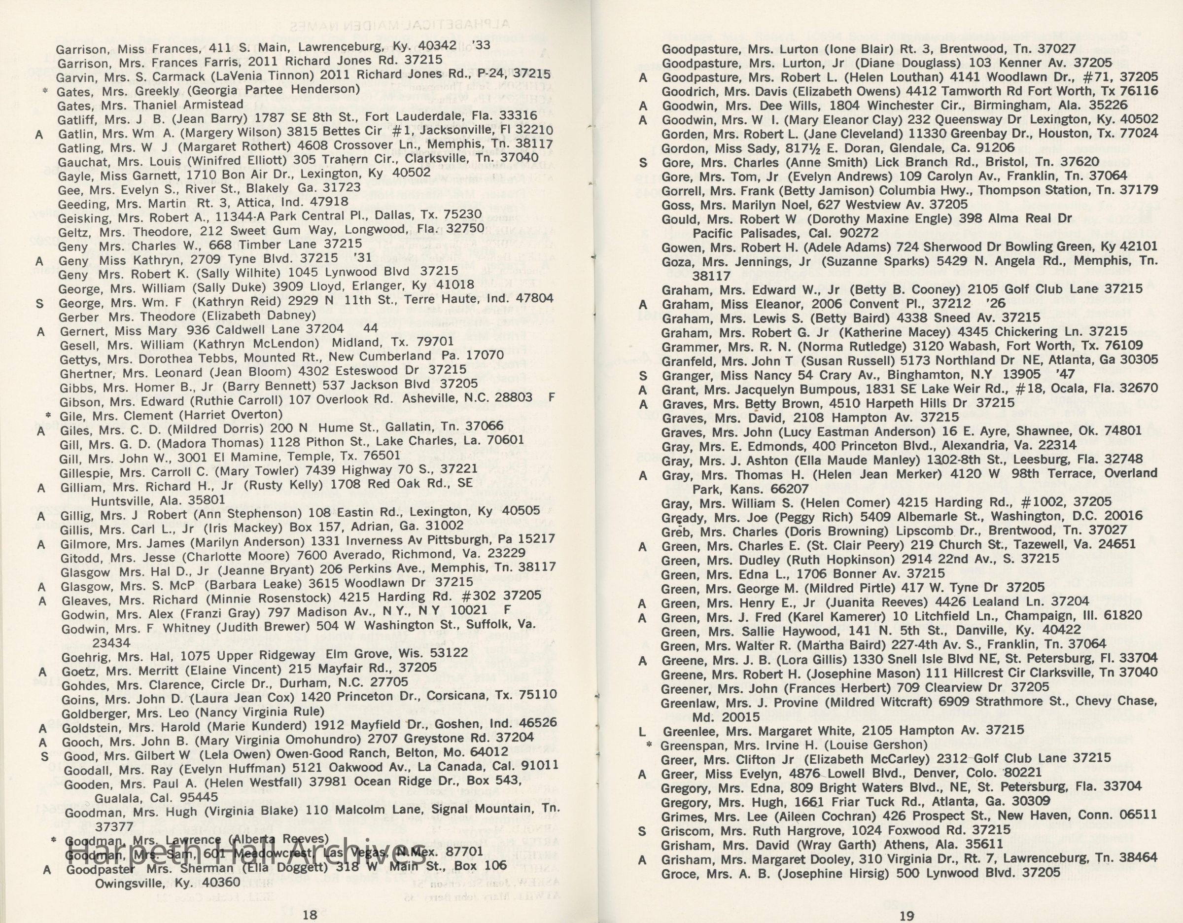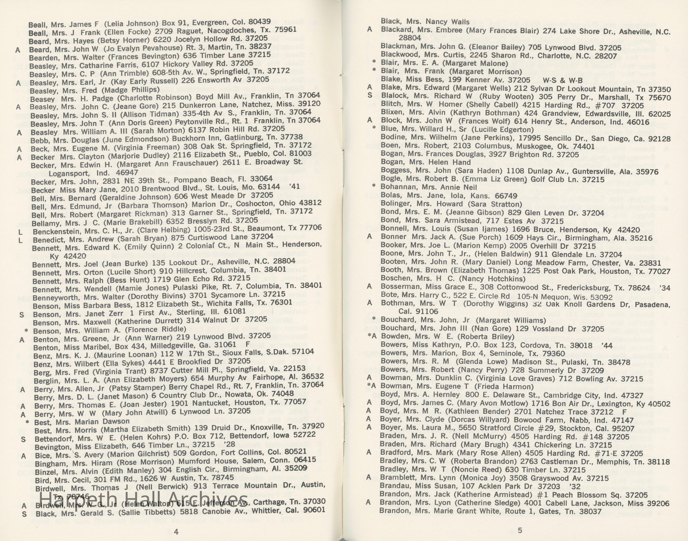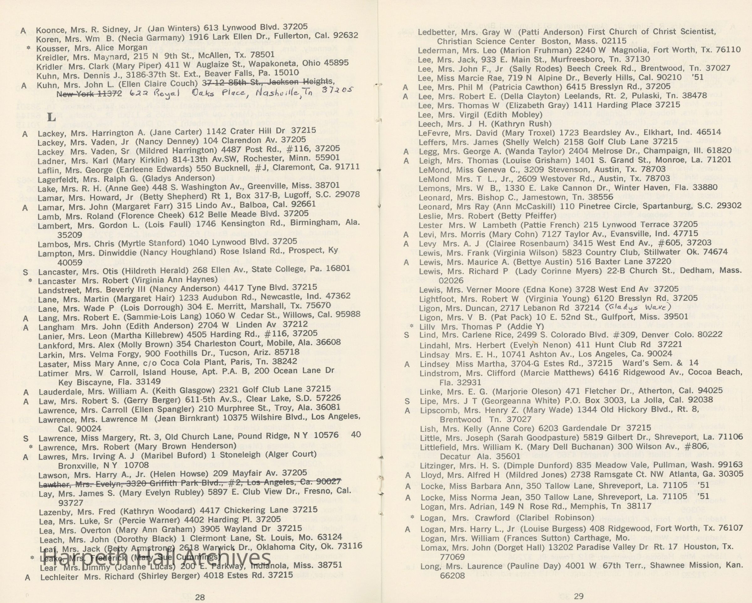 Directory of Ward-Belmont alumnae created in 1978 by Dorothy Barton Webster, including an undated sheet of updates and additions to the directoryCollection