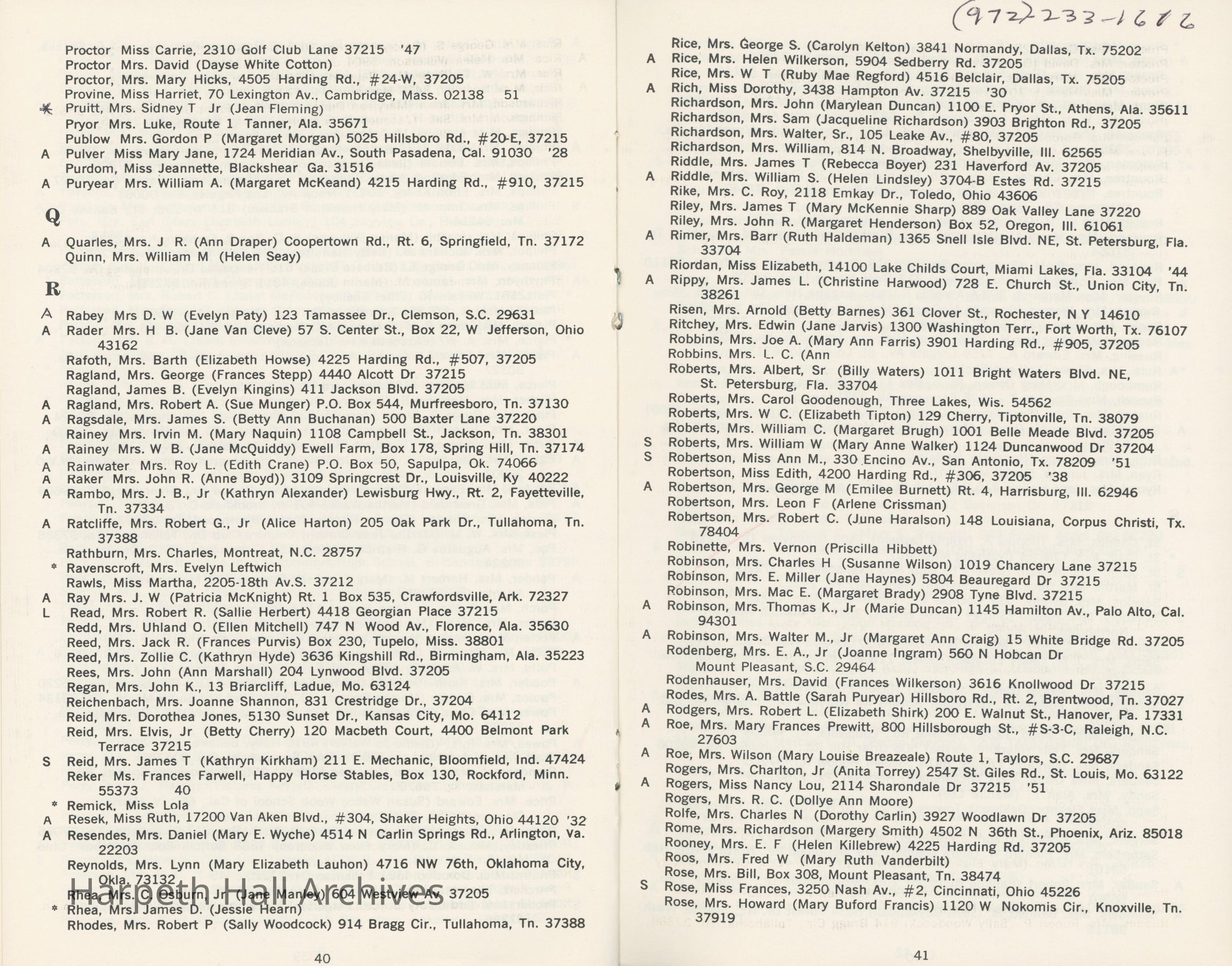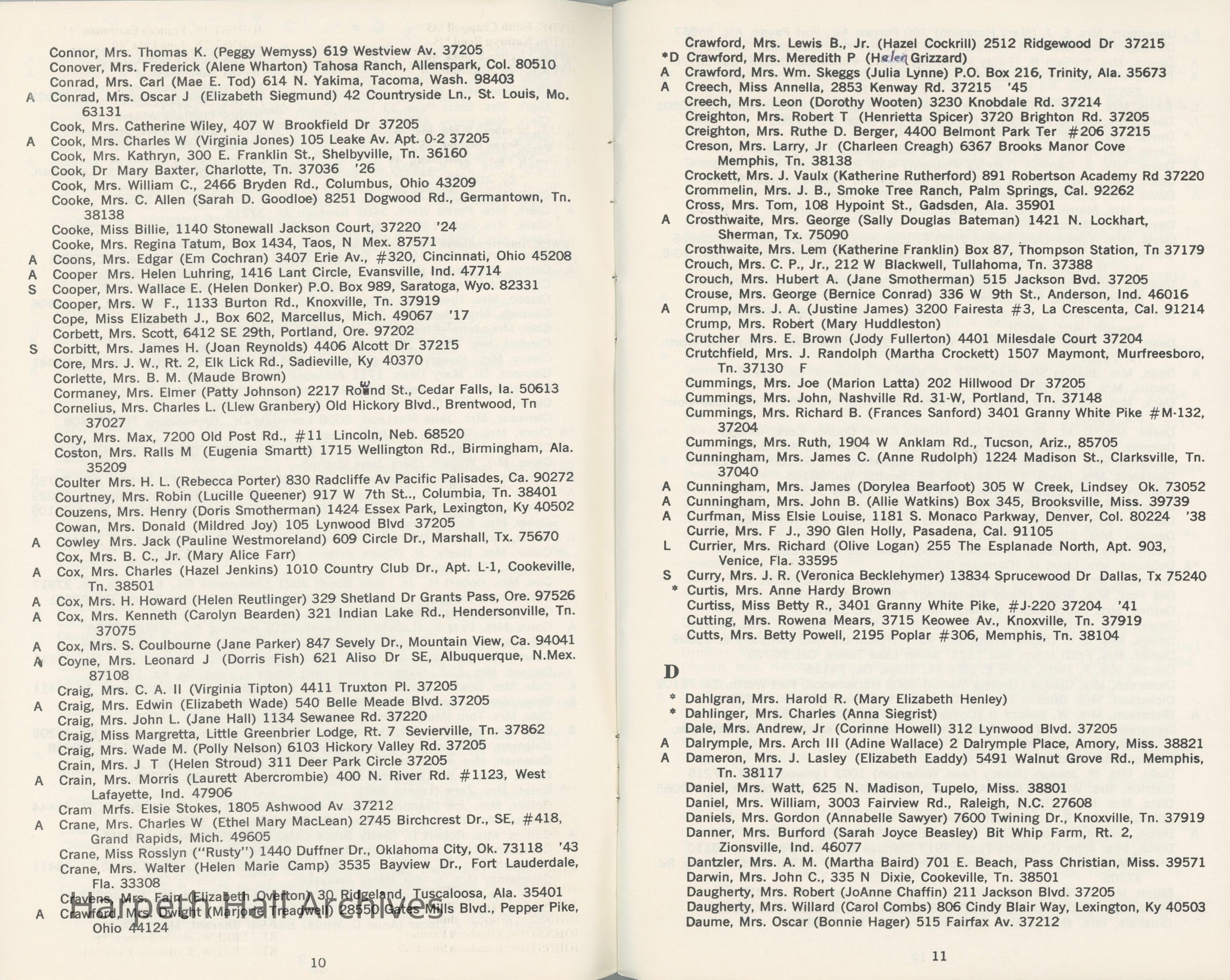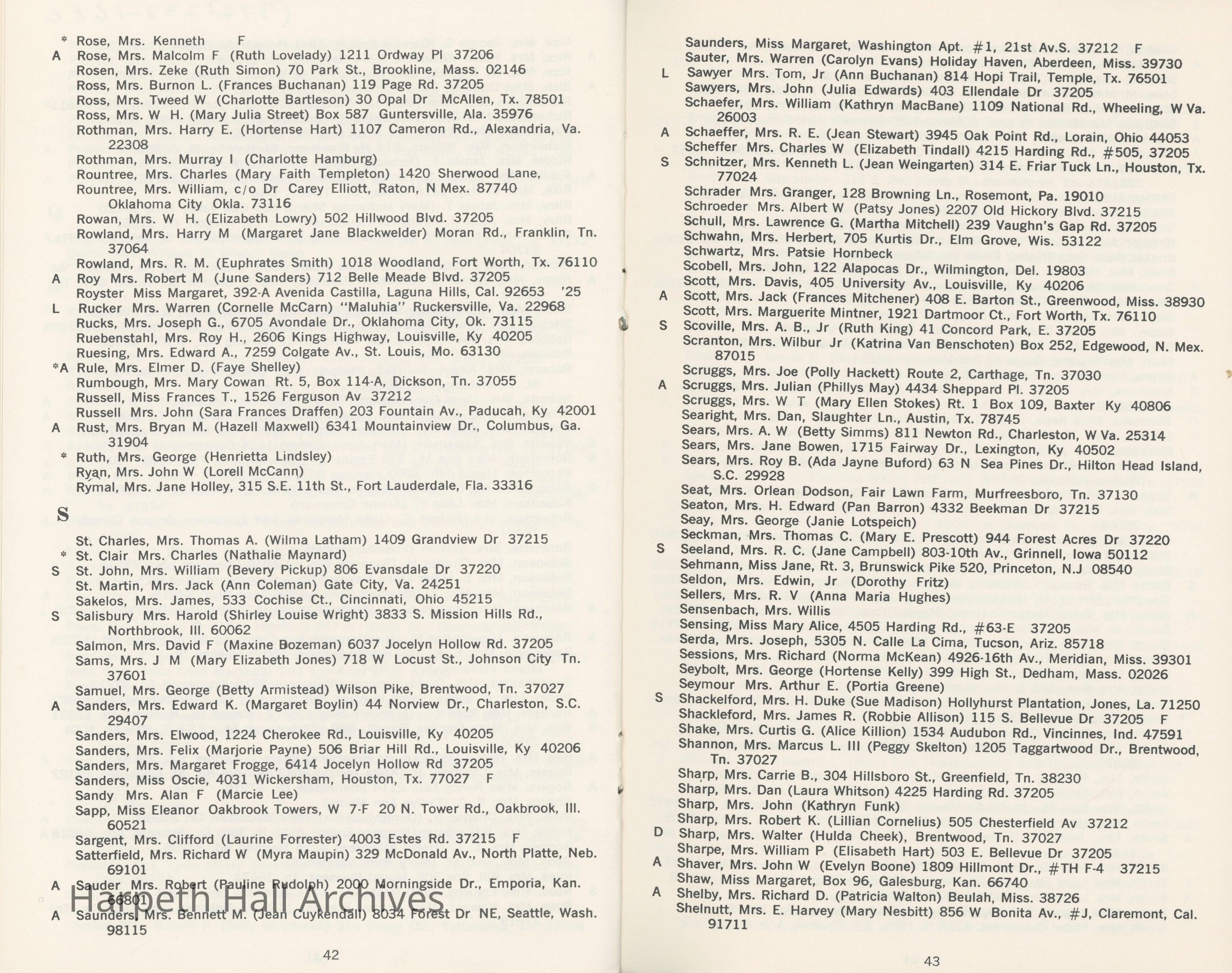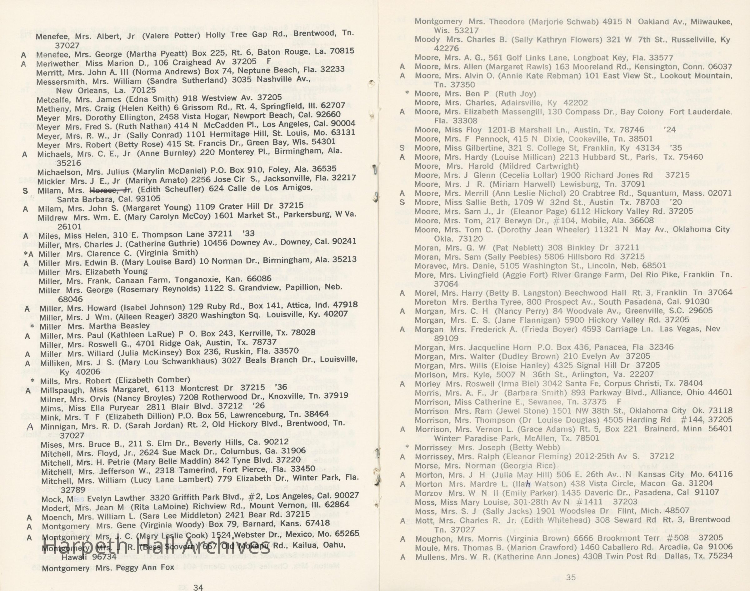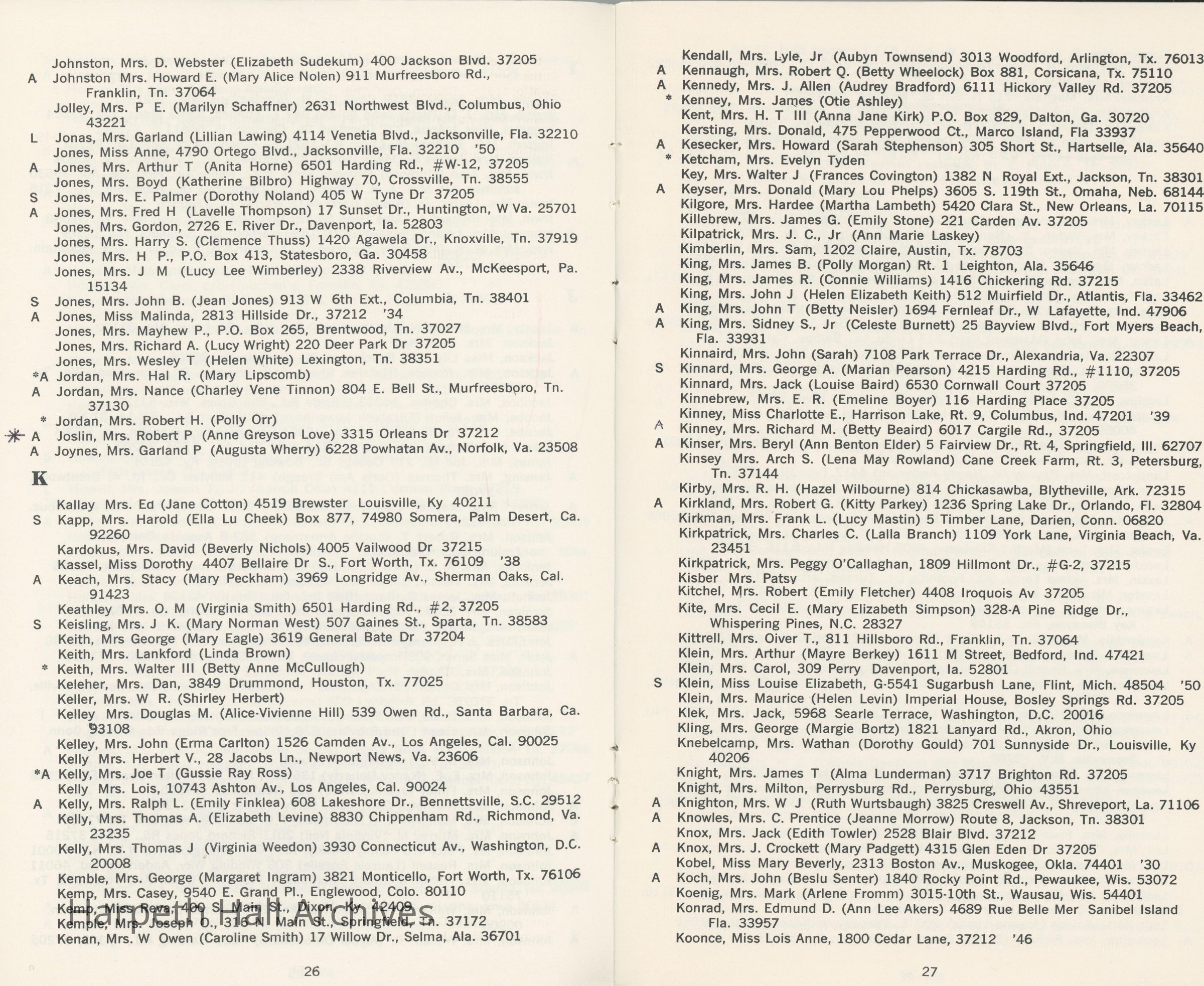 Directory of Ward-Belmont alumnae created in 1978 by Dorothy Barton Webster, including an undated sheet of updates and additions to the directoryCollection