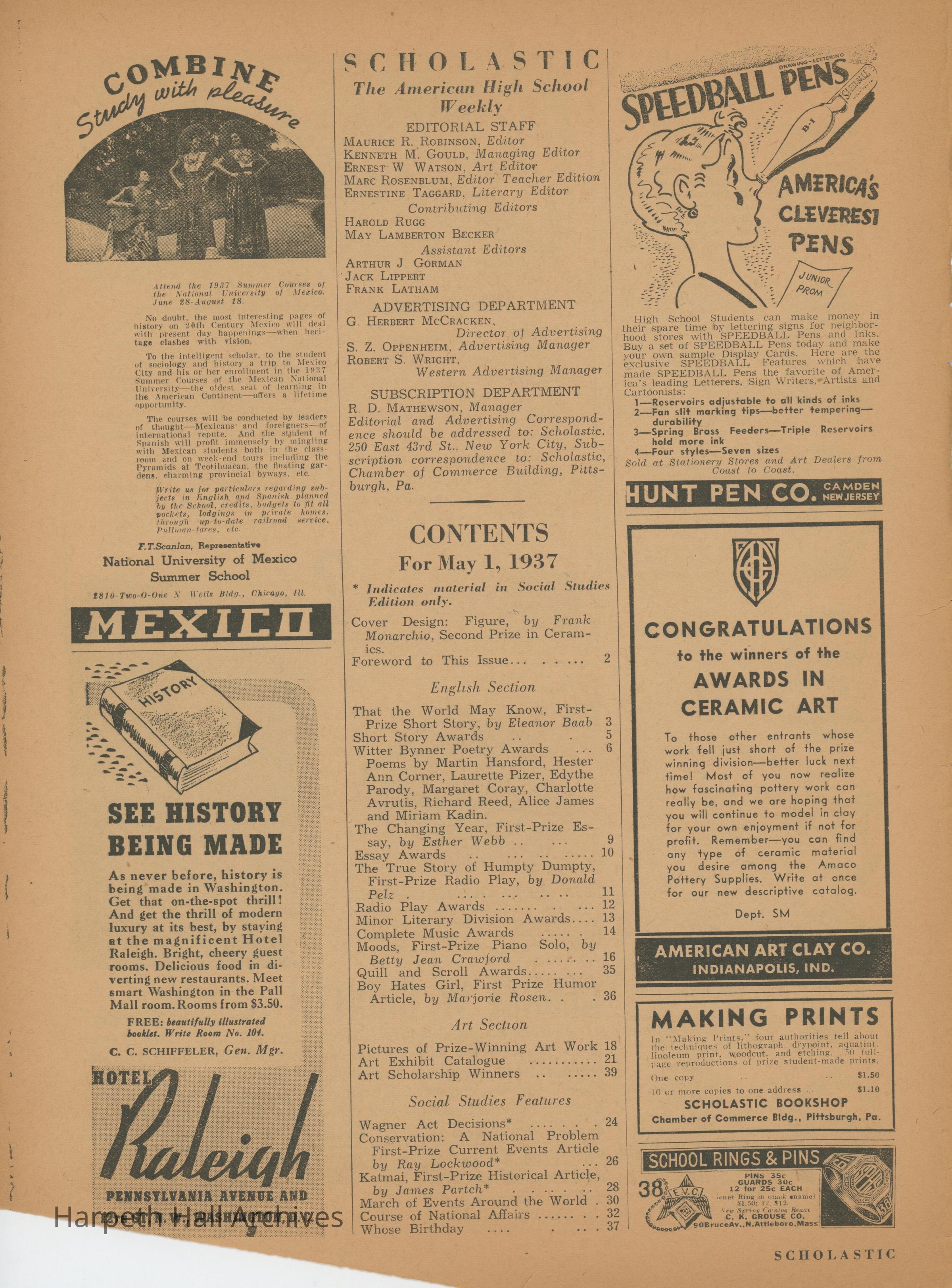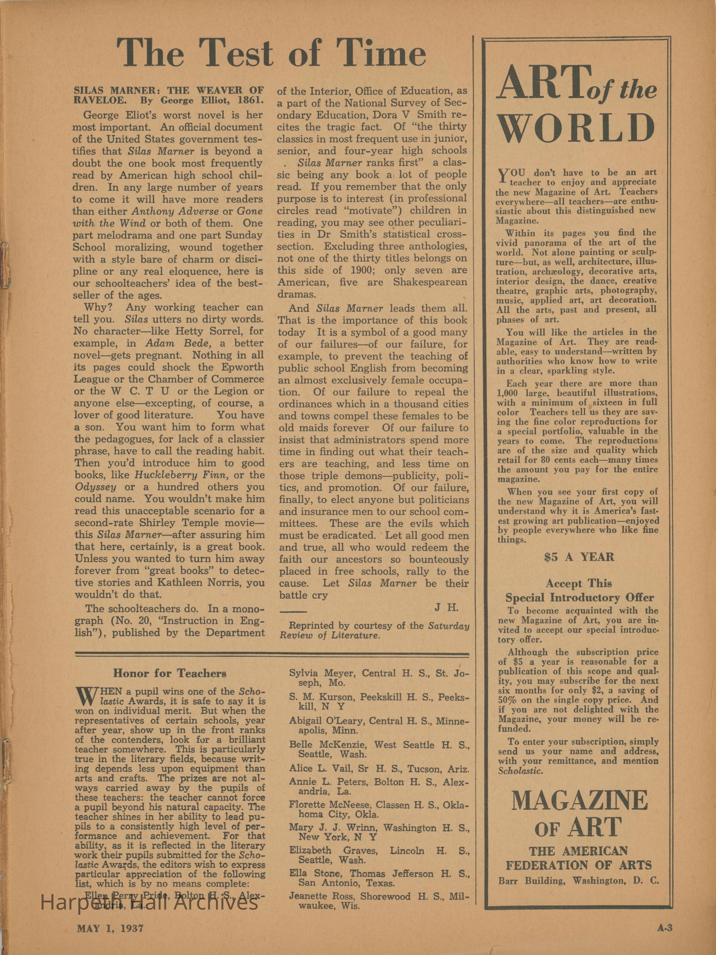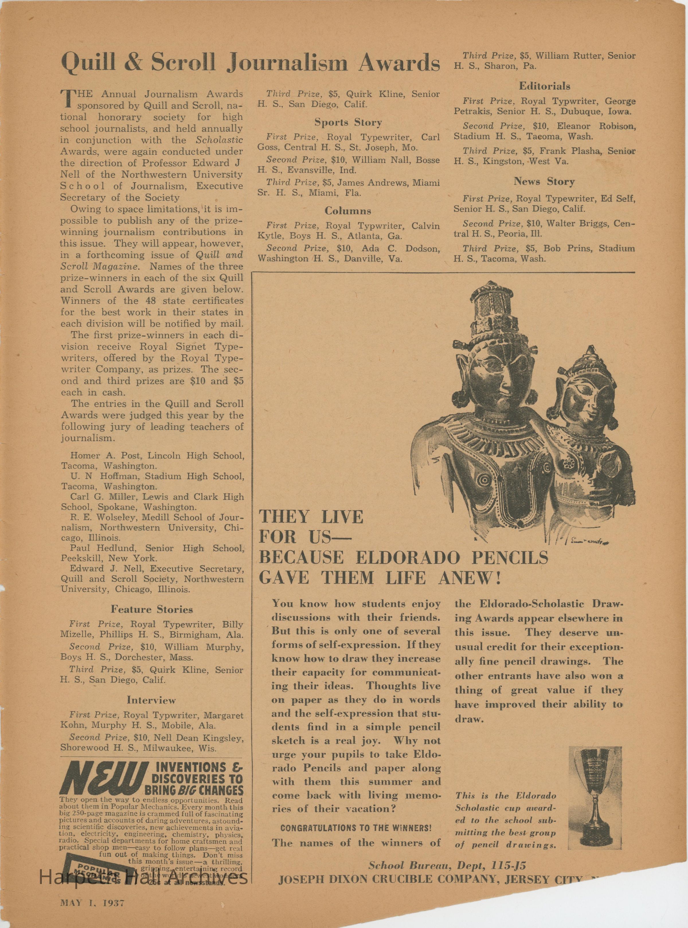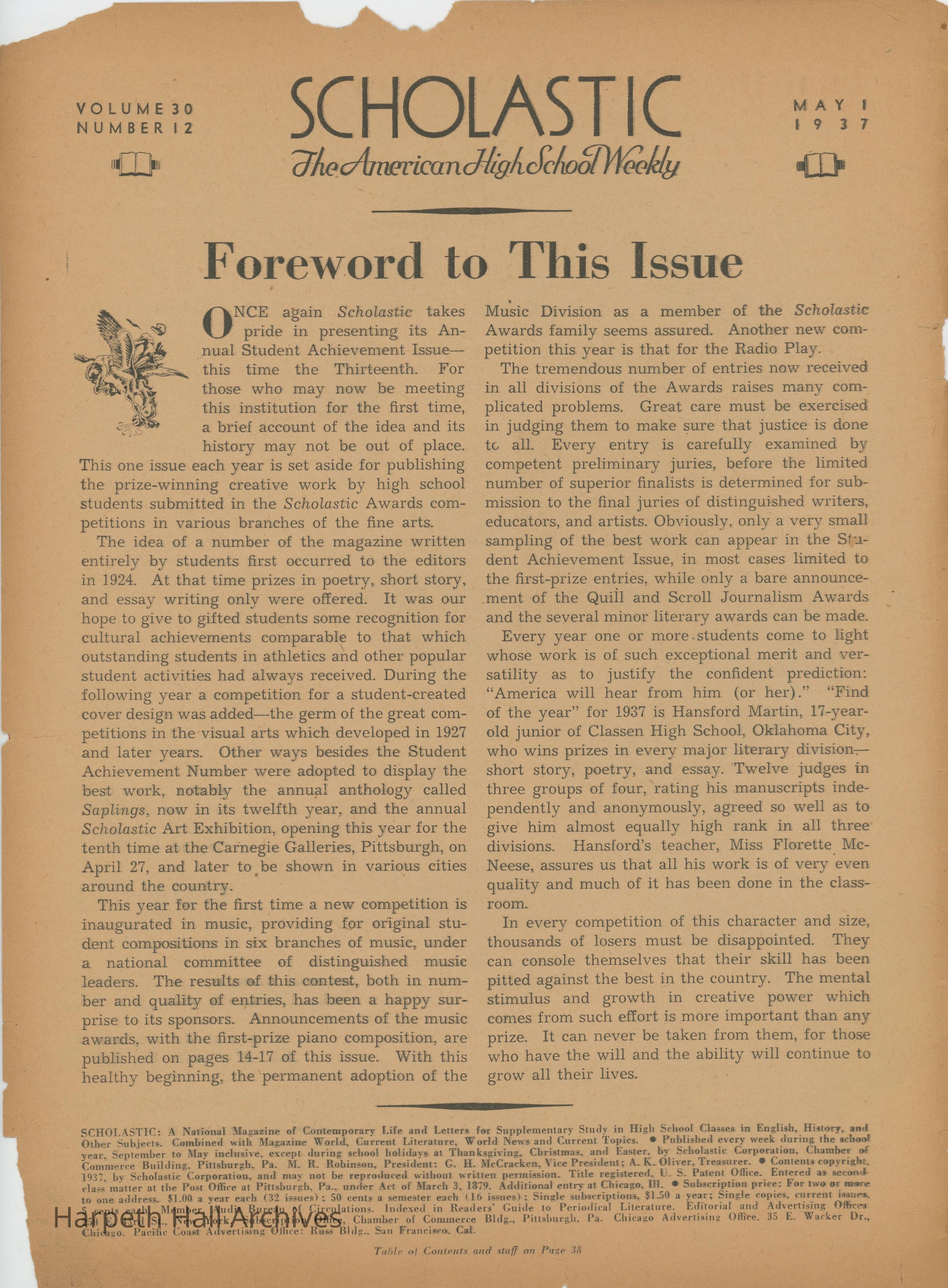 The Scholastic Journal published on May 1st, 1937.