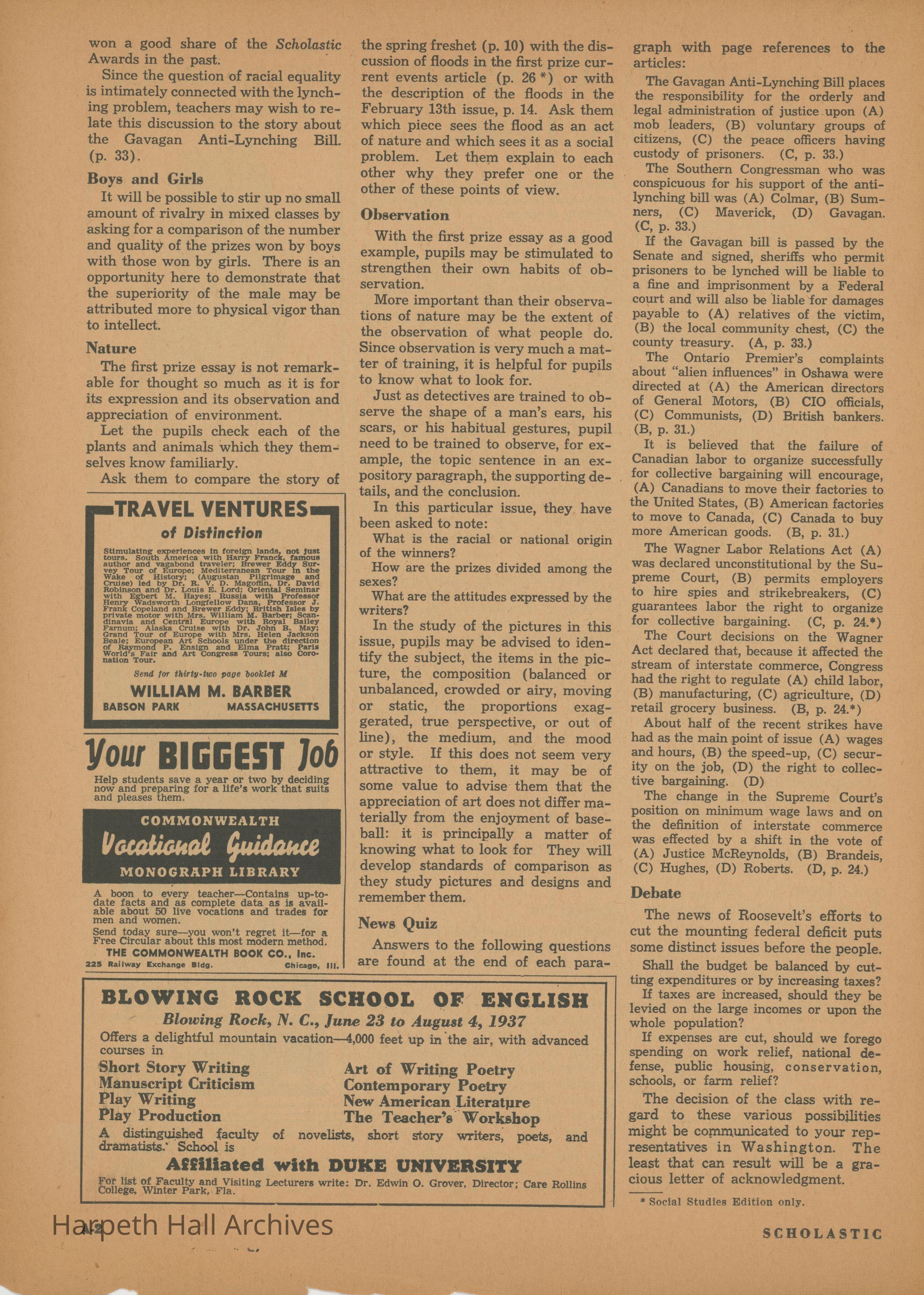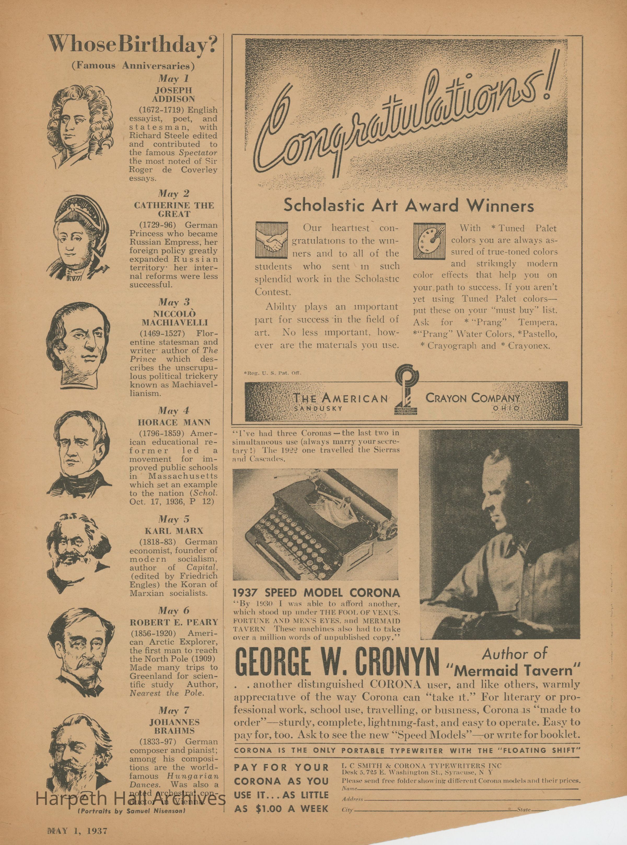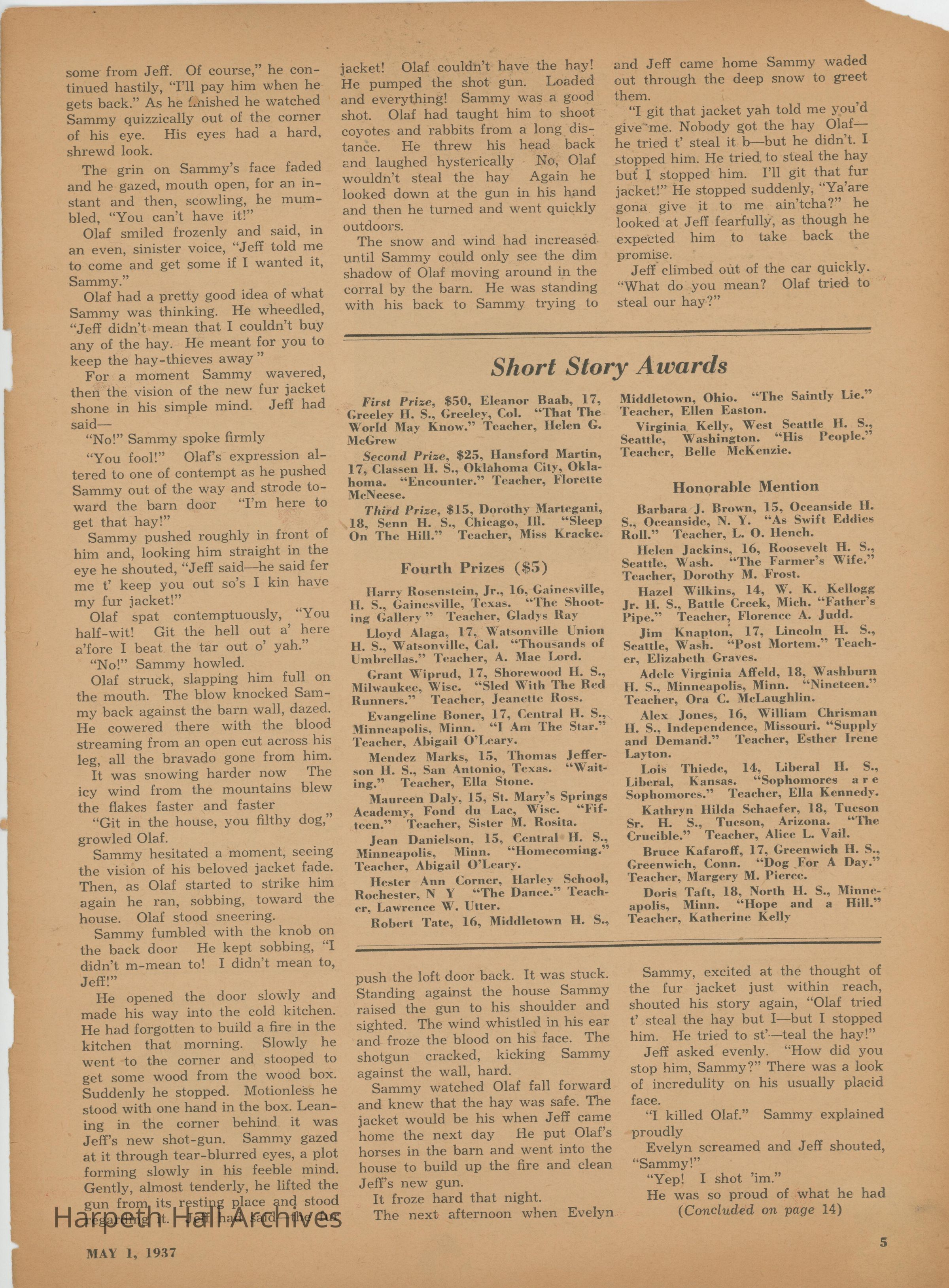 The Scholastic Journal published on May 1st, 1937.
