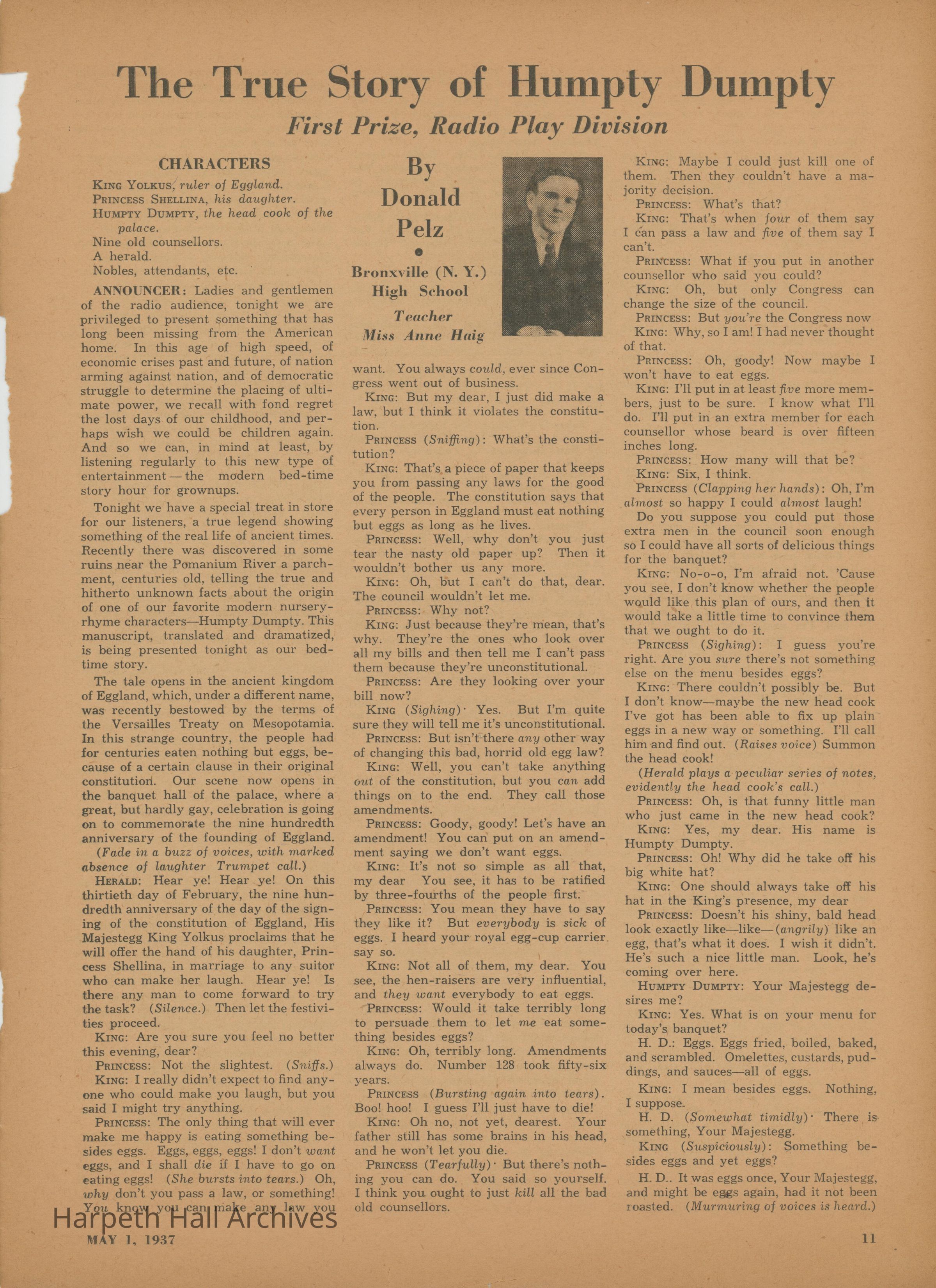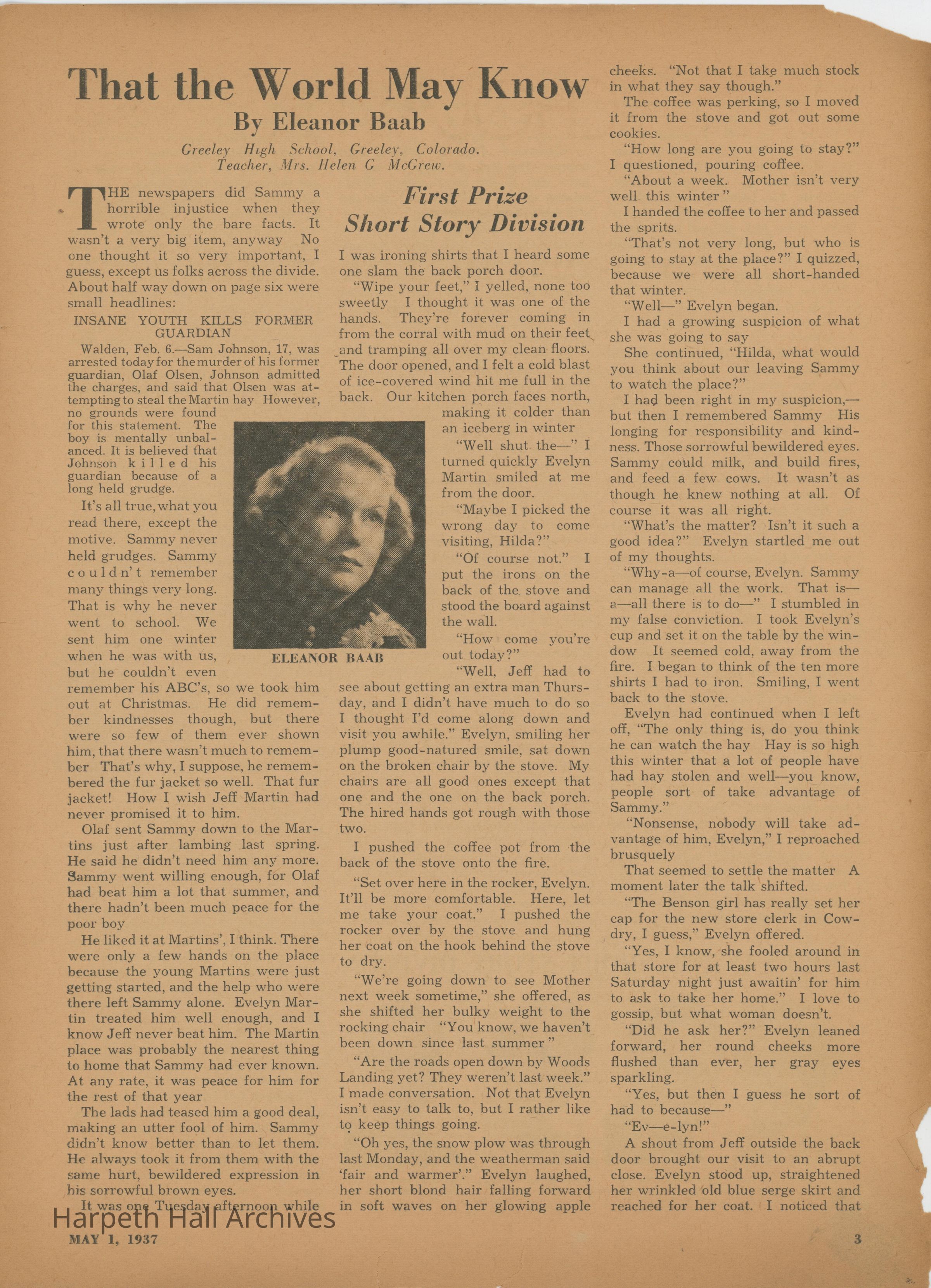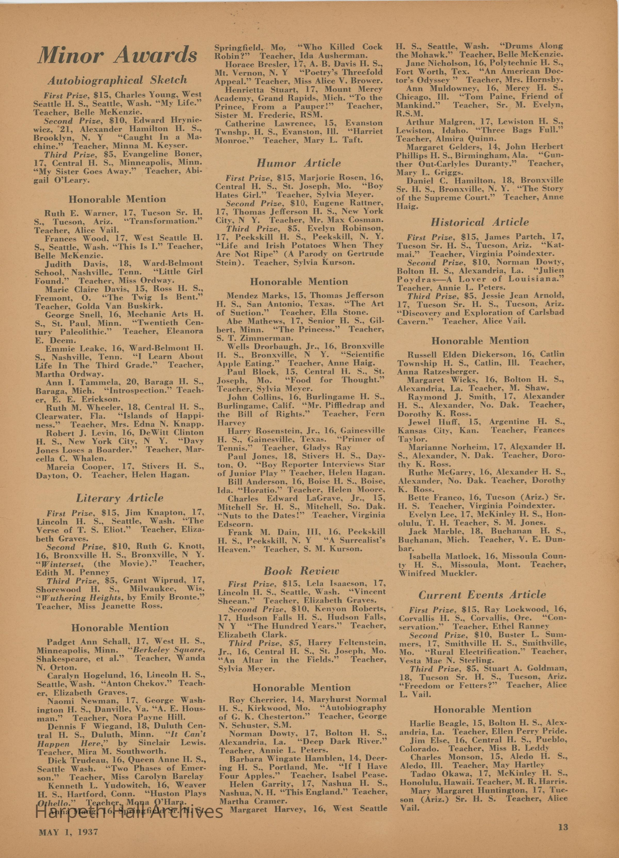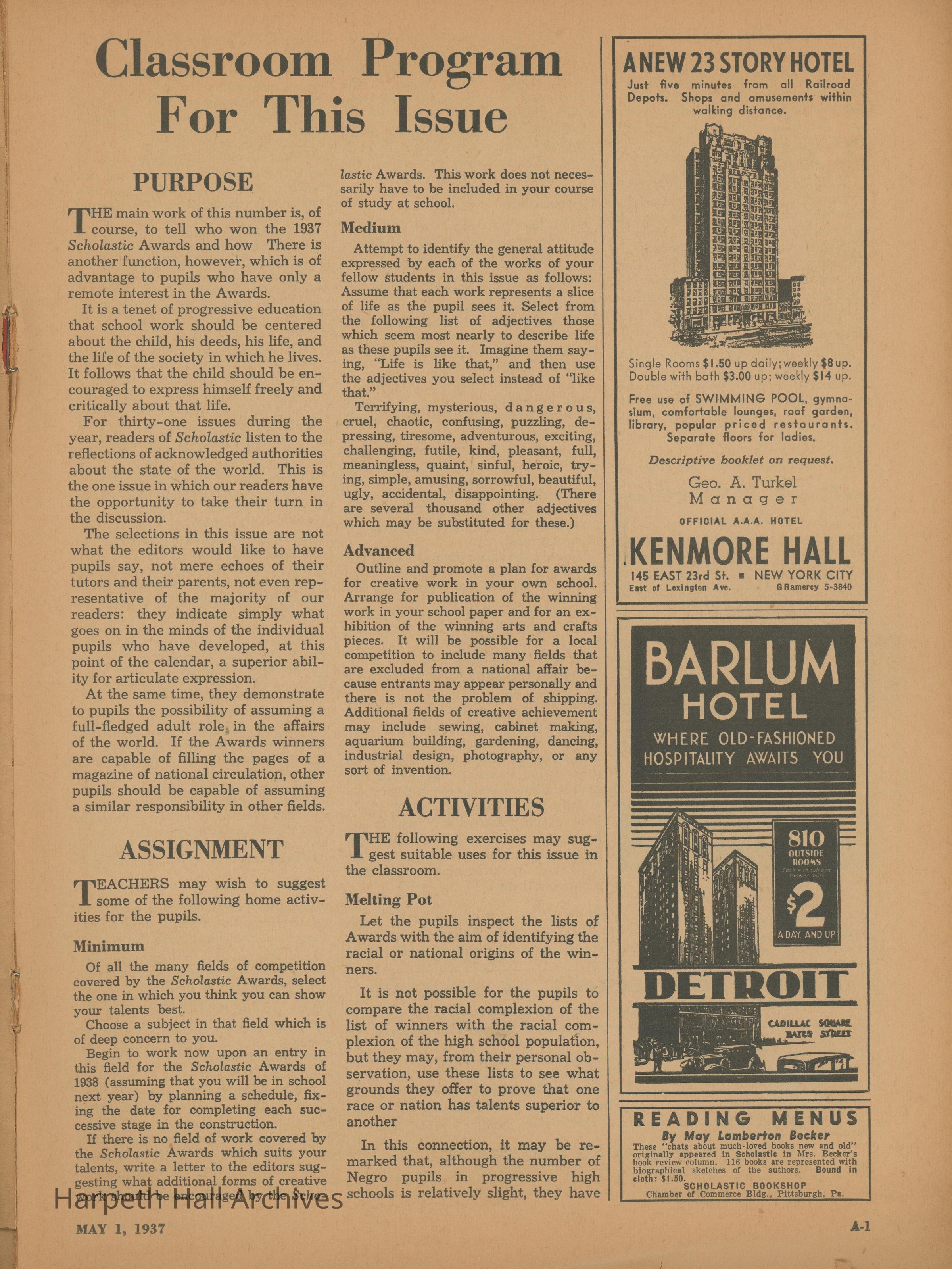 The Scholastic Journal published on May 1st, 1937.