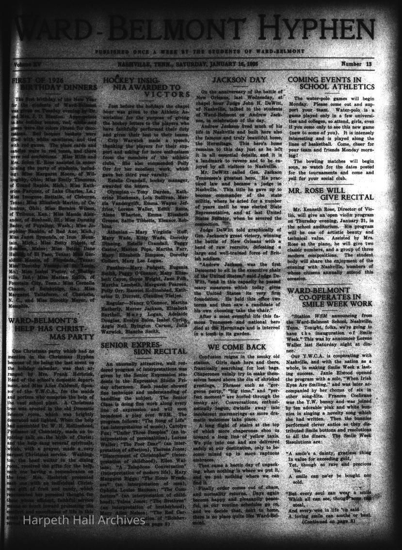 The link to see the online digitized copy of all of the Ward Belmont newspapers from 1926 is at the bottom of the page under "Web Links"!
