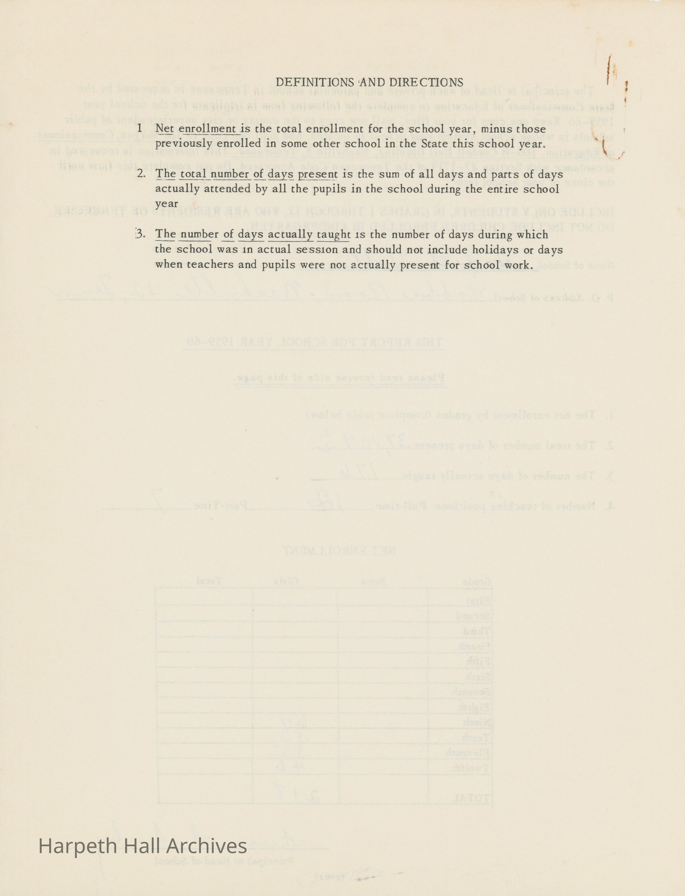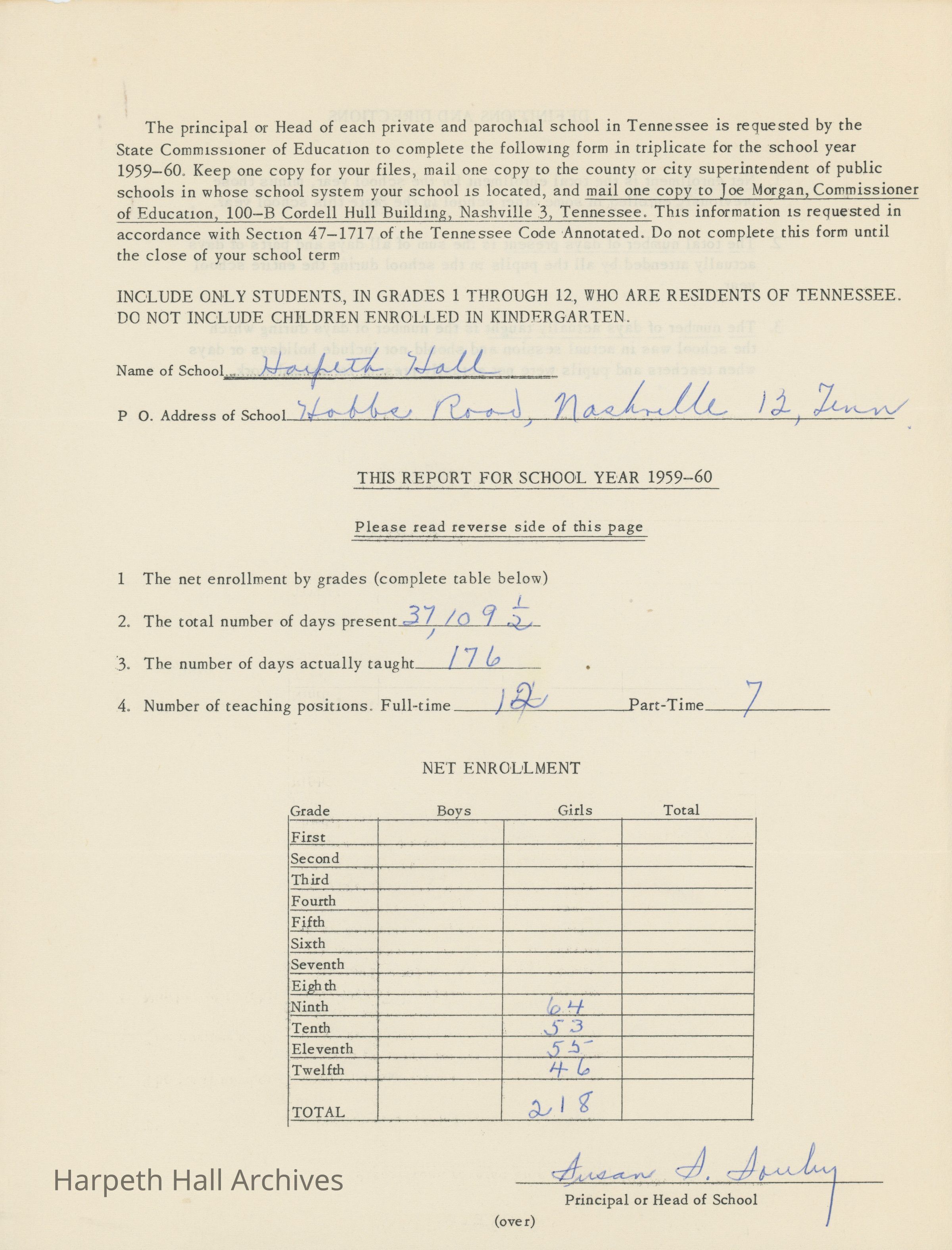 Report to TN Department of Education on Harpeth Hall's attendance, instructional days, and teaching positions.