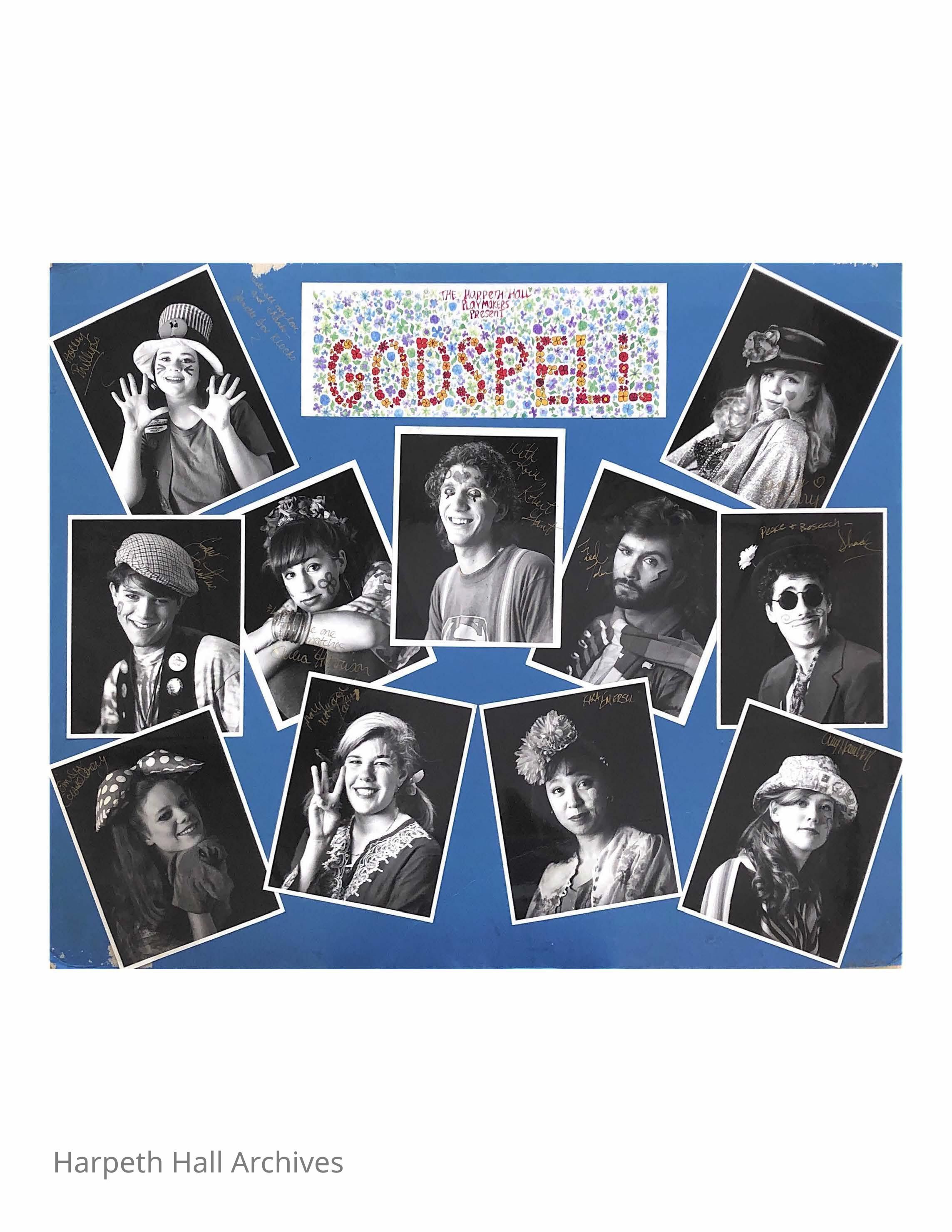 The cast board for the showing of Godspell put on by the Harpeth Hall Playmakers.