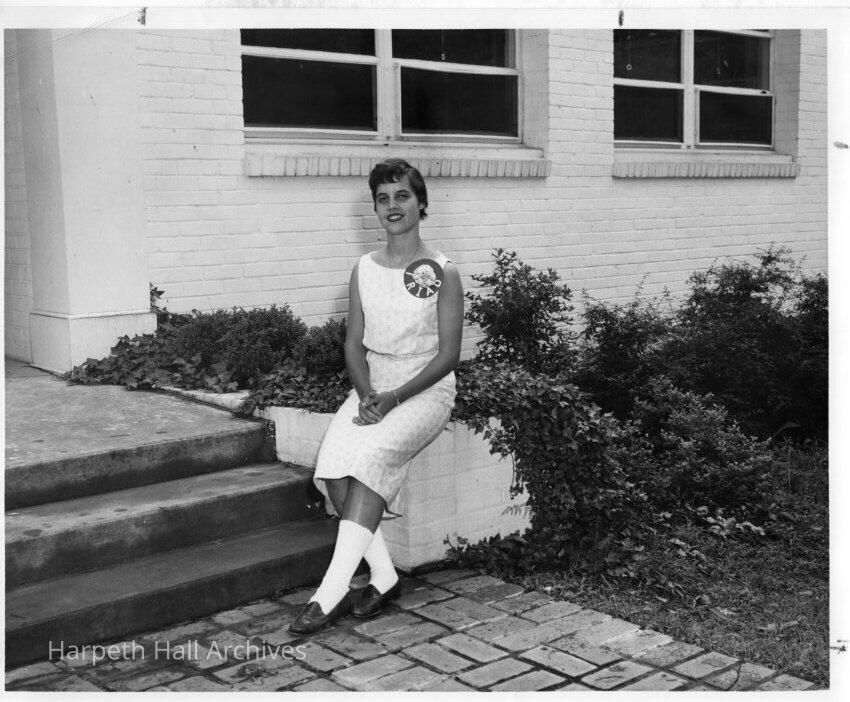 Student wearing Triad button outside the Upper School circa 1960s.